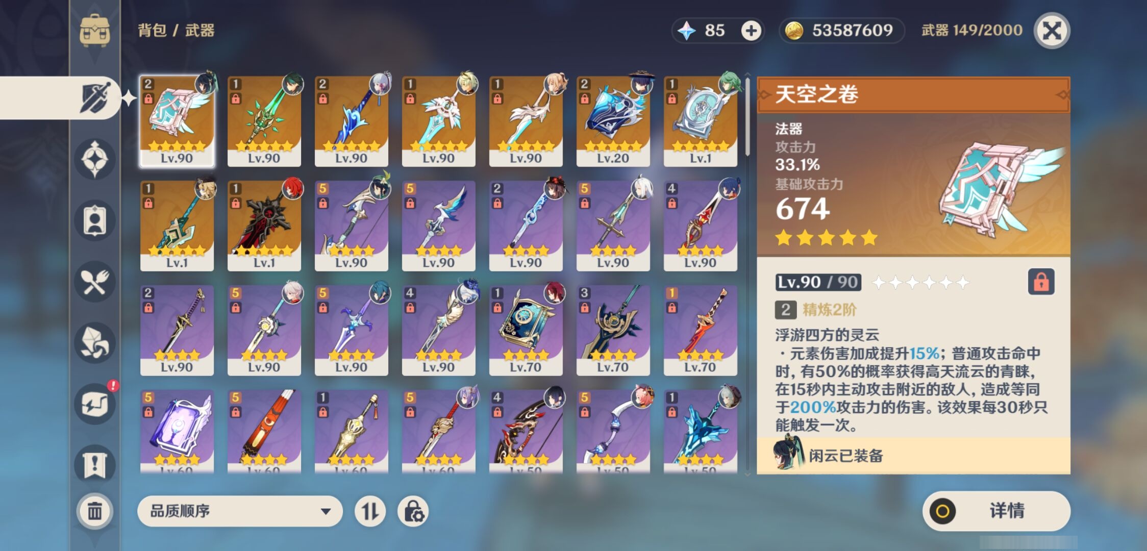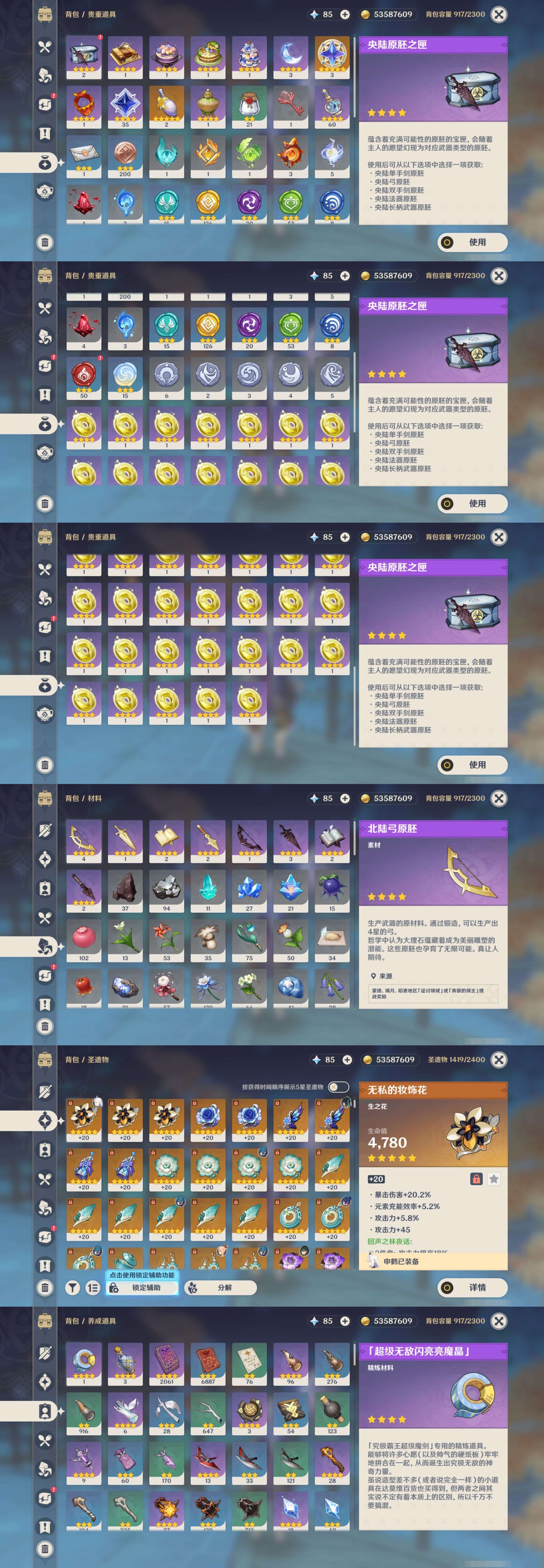 【9个五星武器】,精2天空之卷,精2波乱月白经津,精2万世流涌大典,精1山王长牙,精1和璞鸢,精1狼的末路,精1天空之刃,精1风鹰剑,精1四风原典,4套,