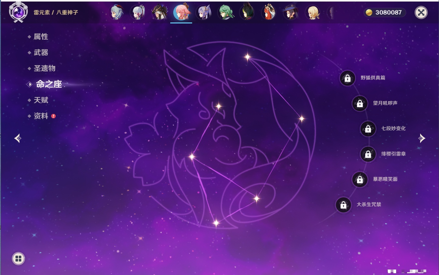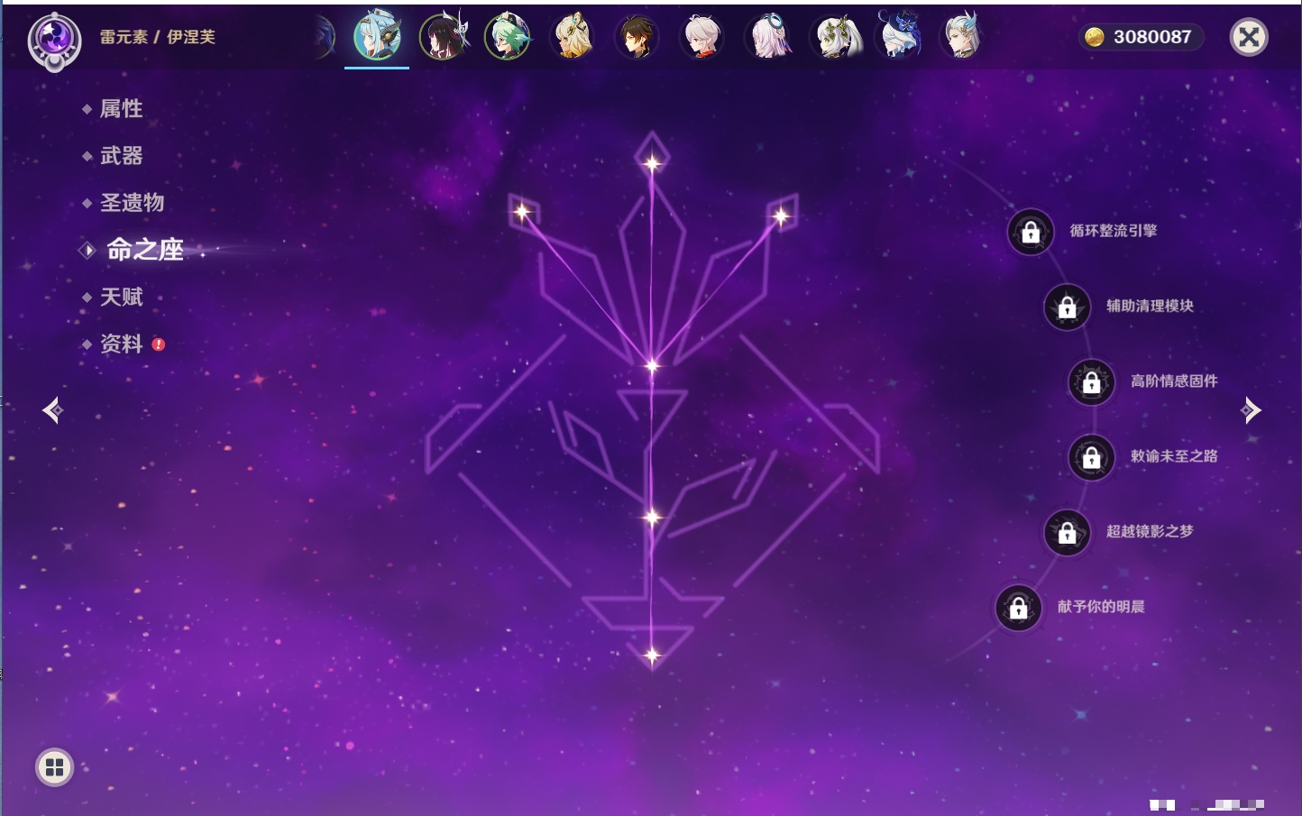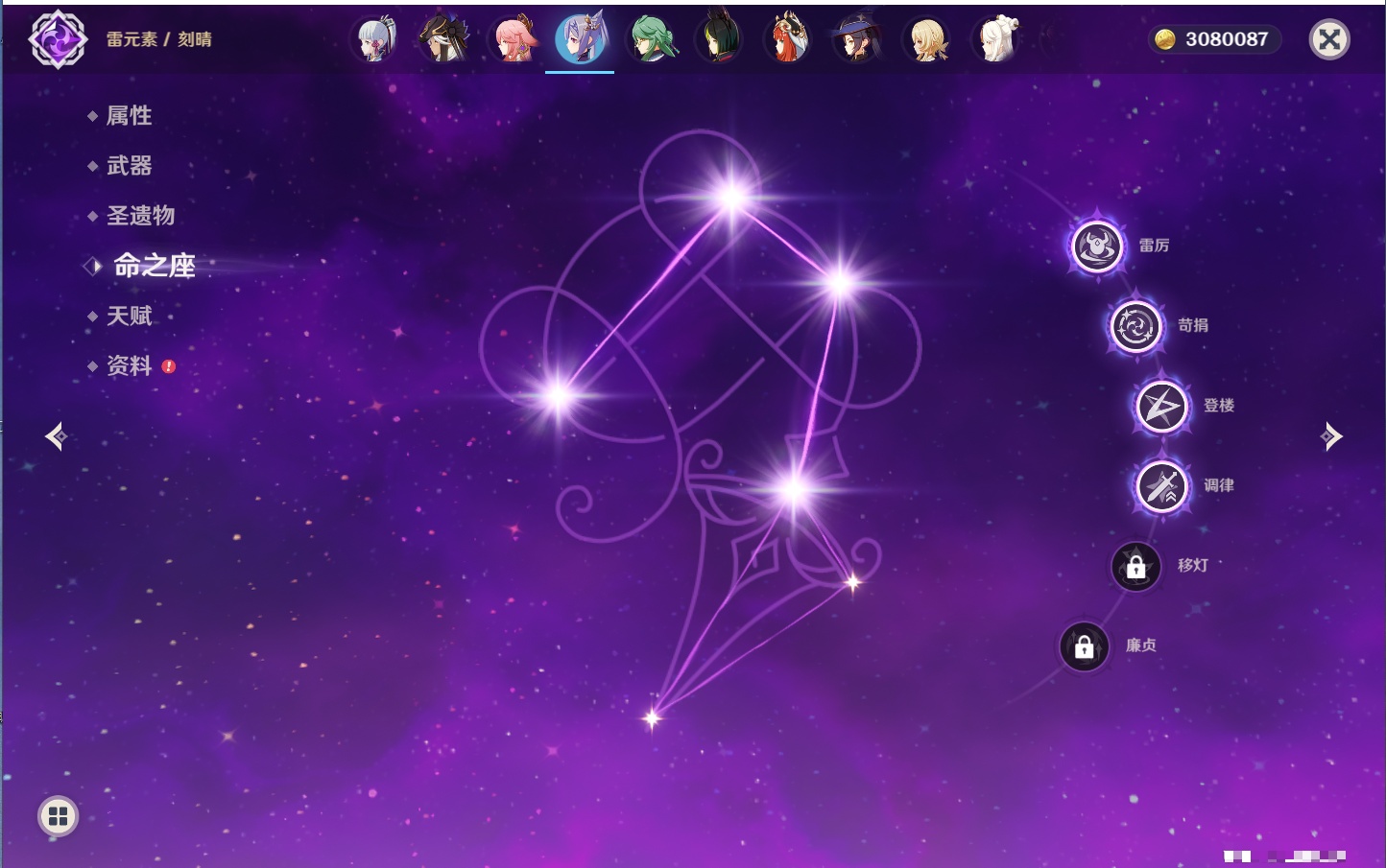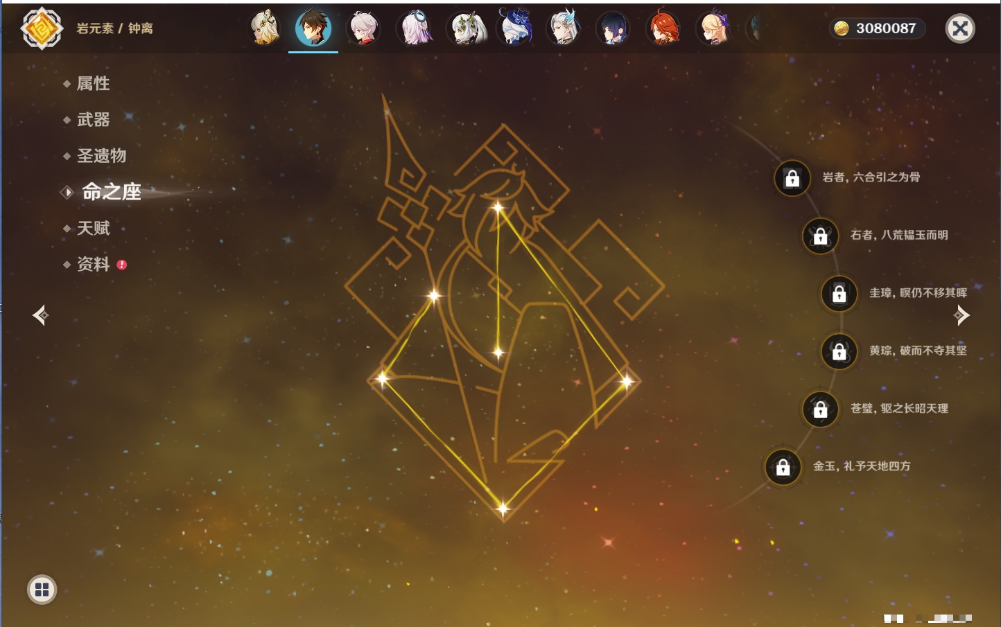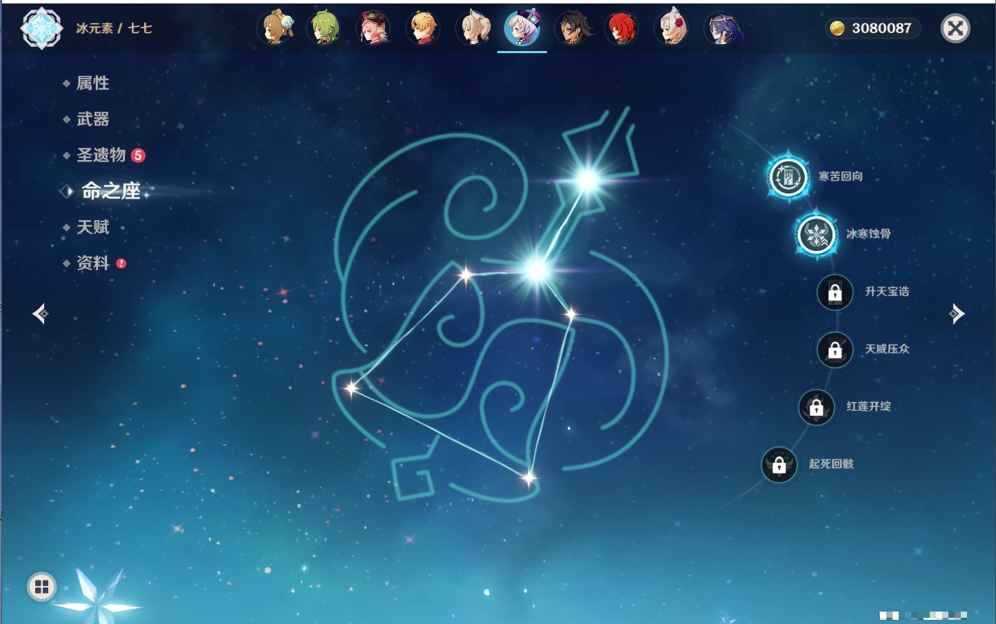 【26个五星角色】,满命玛薇卡,4命刻晴,3命琴,2命赛诺,2命神里绫华,2命七七,2命莫娜,2命迪卢克,2命哥伦比娅,1命那维莱特,1命提纳里,0命芙宁娜,0命白术,0命迪希雅,0命纳西妲,0命妮露,0命夜兰,0命八重神子,0命枫原万叶,0命钟离,0命甘雨,0命菲林斯,0命伊涅芙,0命希诺宁,0命茜特菈莉,0命娜维娅,