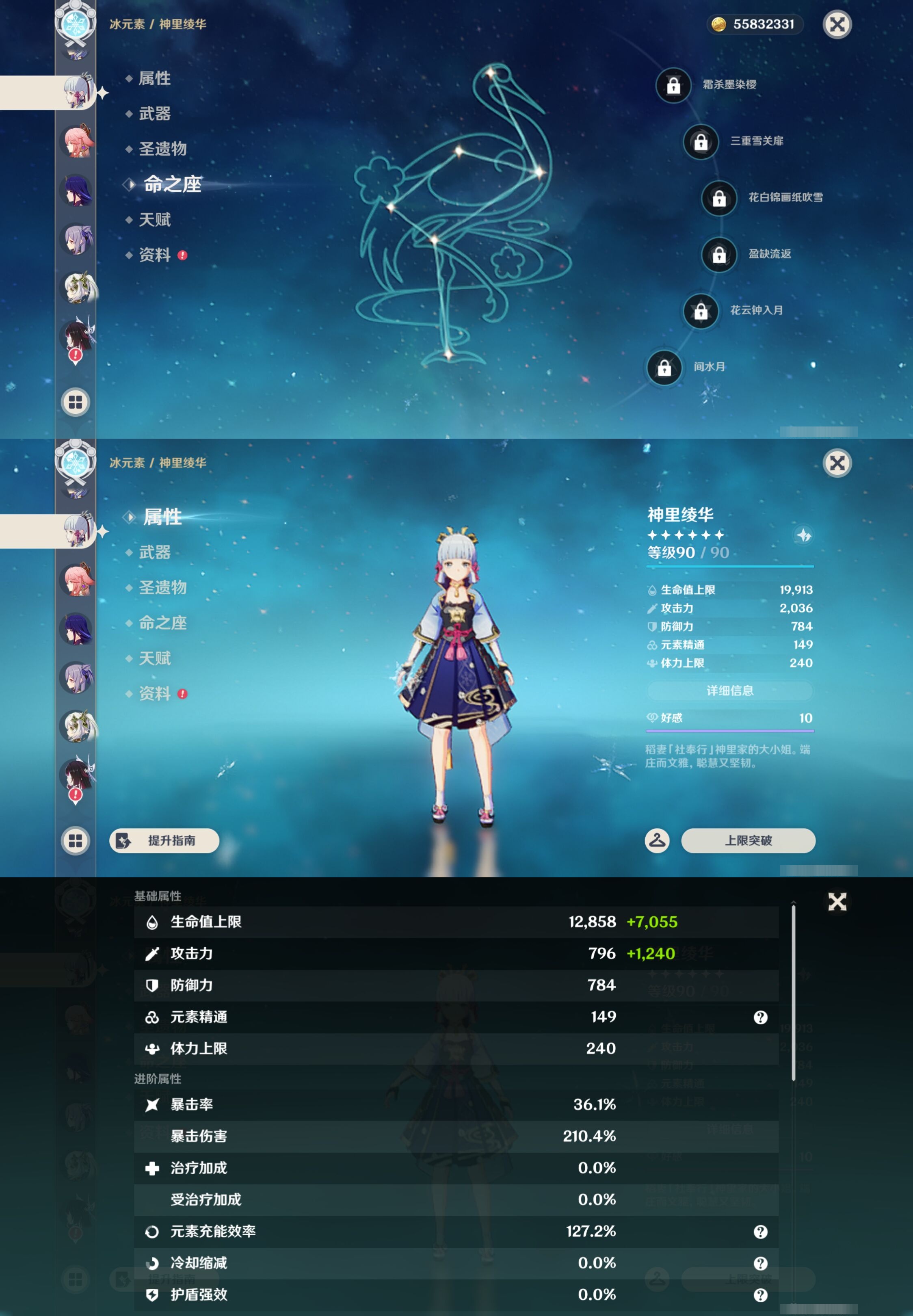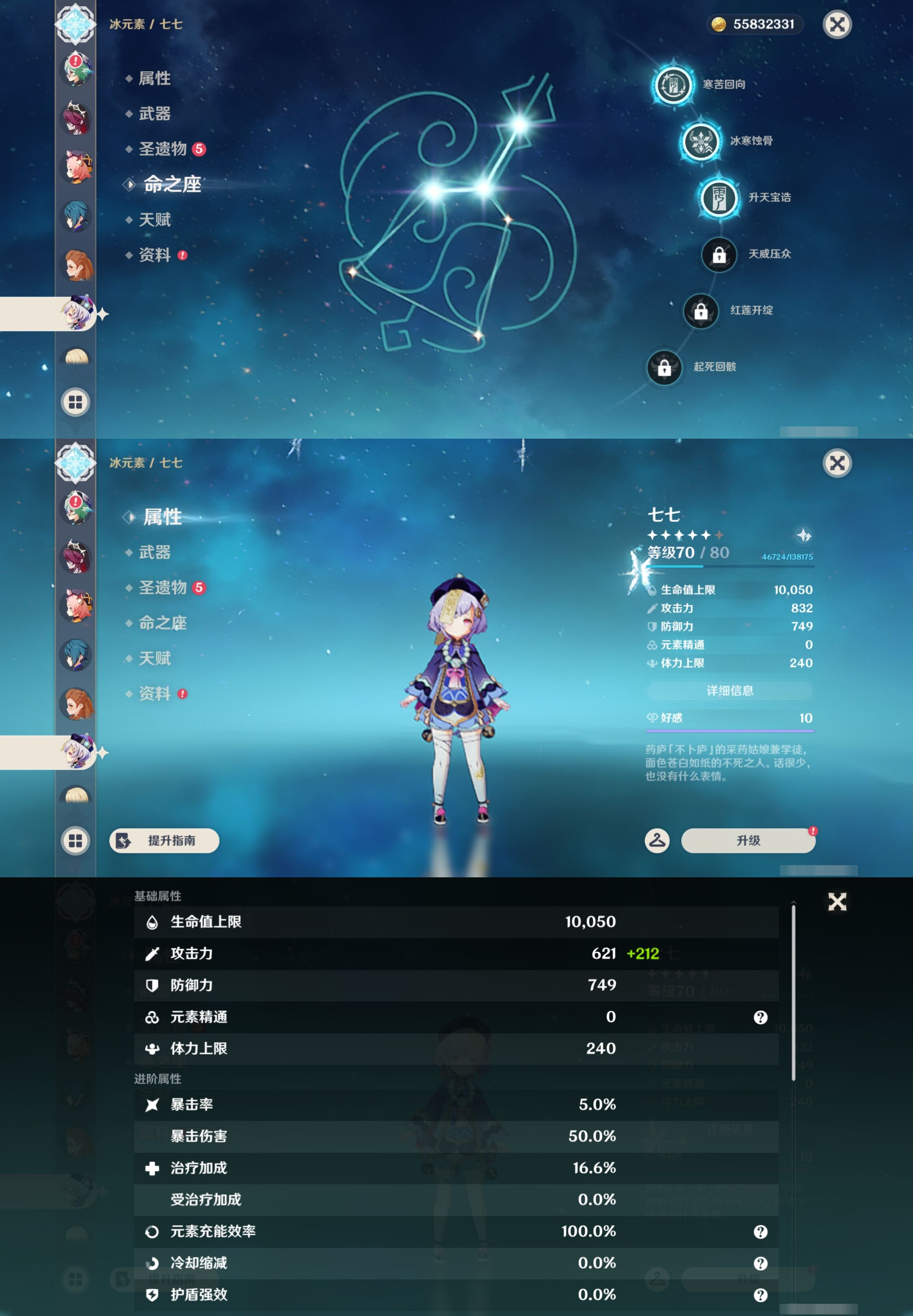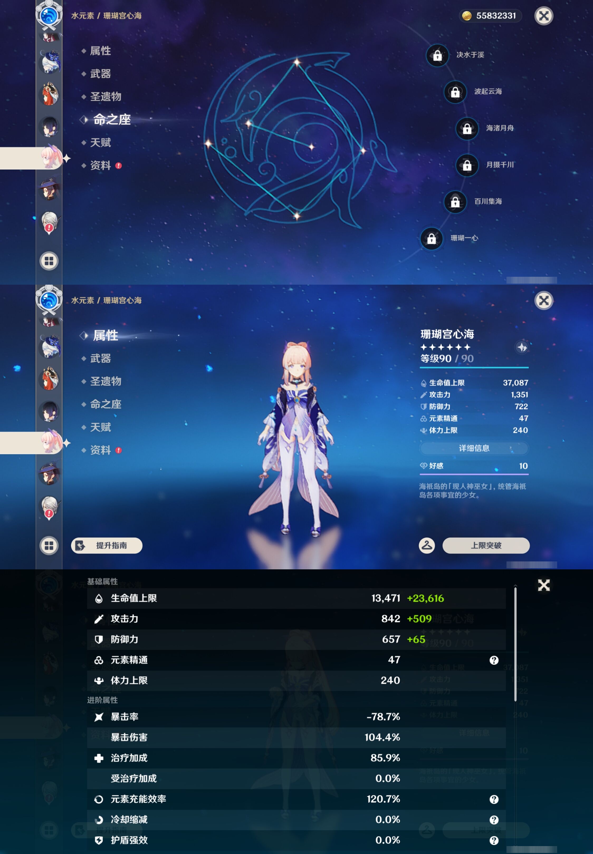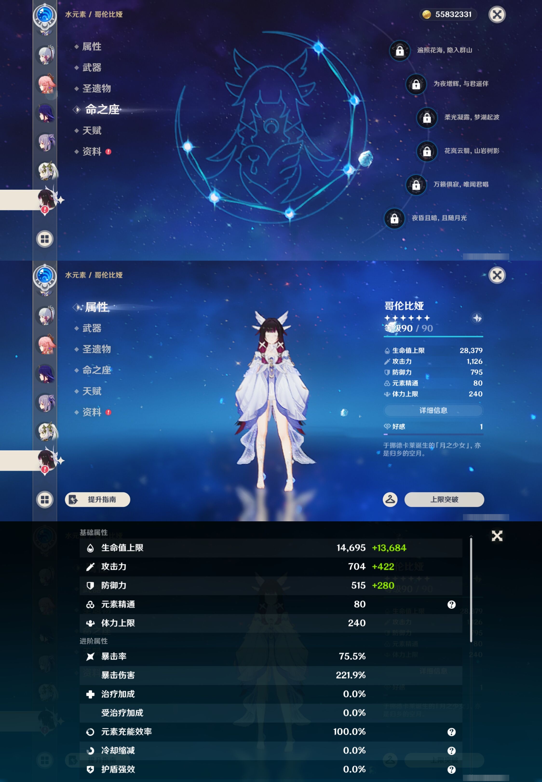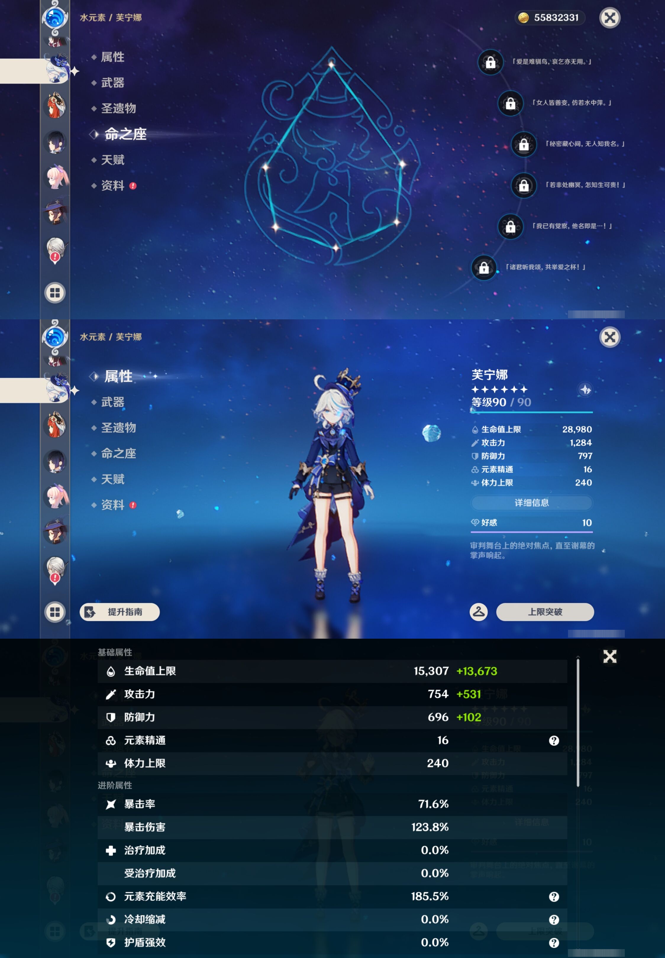 【32个五星角色】,4命莫娜,4命迪卢克,3命雷电将军,3命刻晴,3命七七,2命克洛琳德,2命申鹤,1命钟离,1命温迪,1命胡桃,1命琴,0命玛薇卡,0命希诺宁,0命娜维娅,0命恰斯卡,0命优菈,0命甘雨,0命神里绫华,0命八重神子,0命纳西妲,0命哥伦比娅,0命芙宁娜,0命妮露,0命夜兰,0命珊瑚宫心海,0命阿蕾奇诺,0命宵宫,0命枫原万叶,0命提纳里,0命可莉,0命埃洛伊,0命迪希雅,