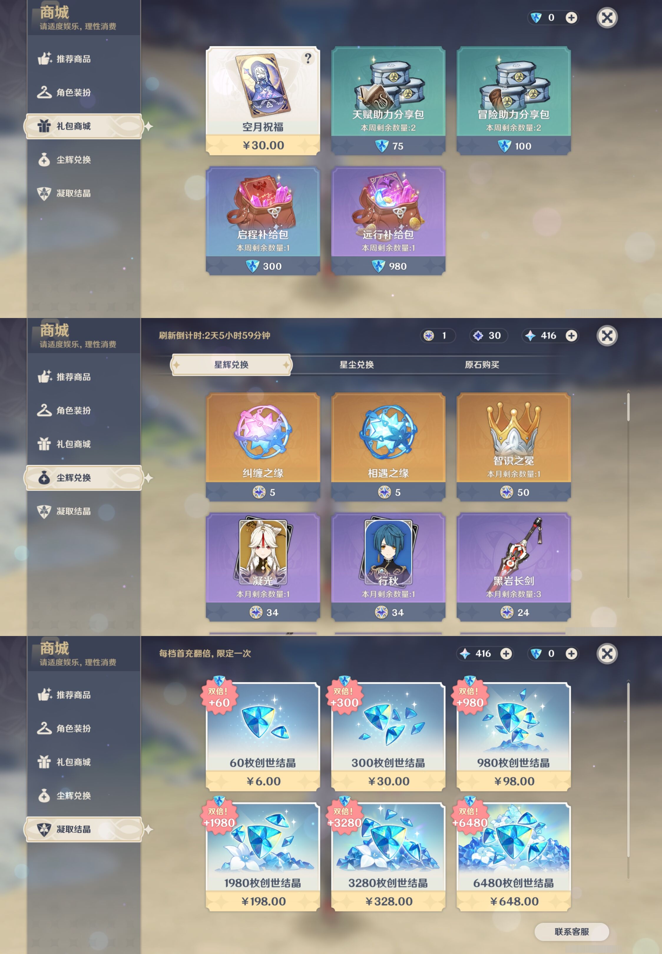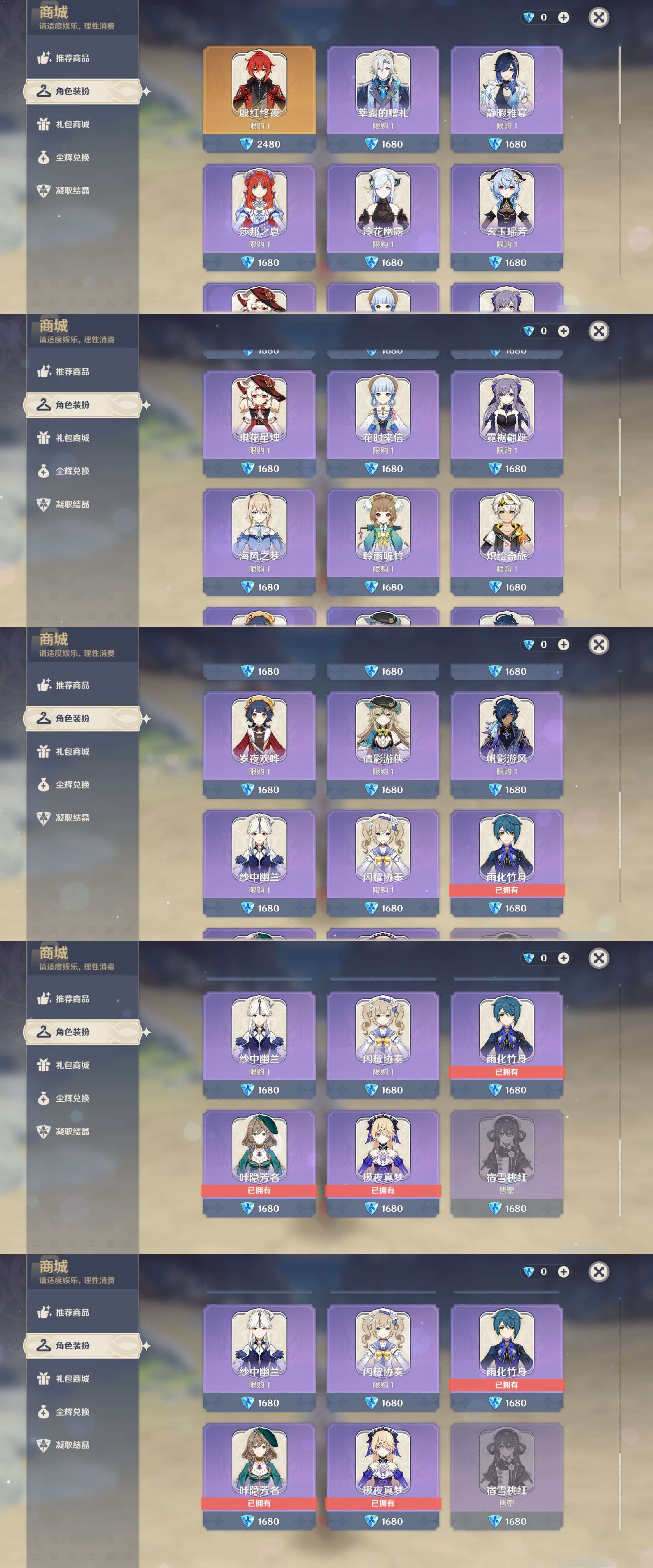 PX_2536816-,未绑定邮箱,,冒险等级56级,女主,31黄,18个五星角色,7个五星武器,纠缠之源0--原石416--圣遗物2043--【时装】,极夜真梦,宿雪桃红,雨化竹身,叶隐芳名,