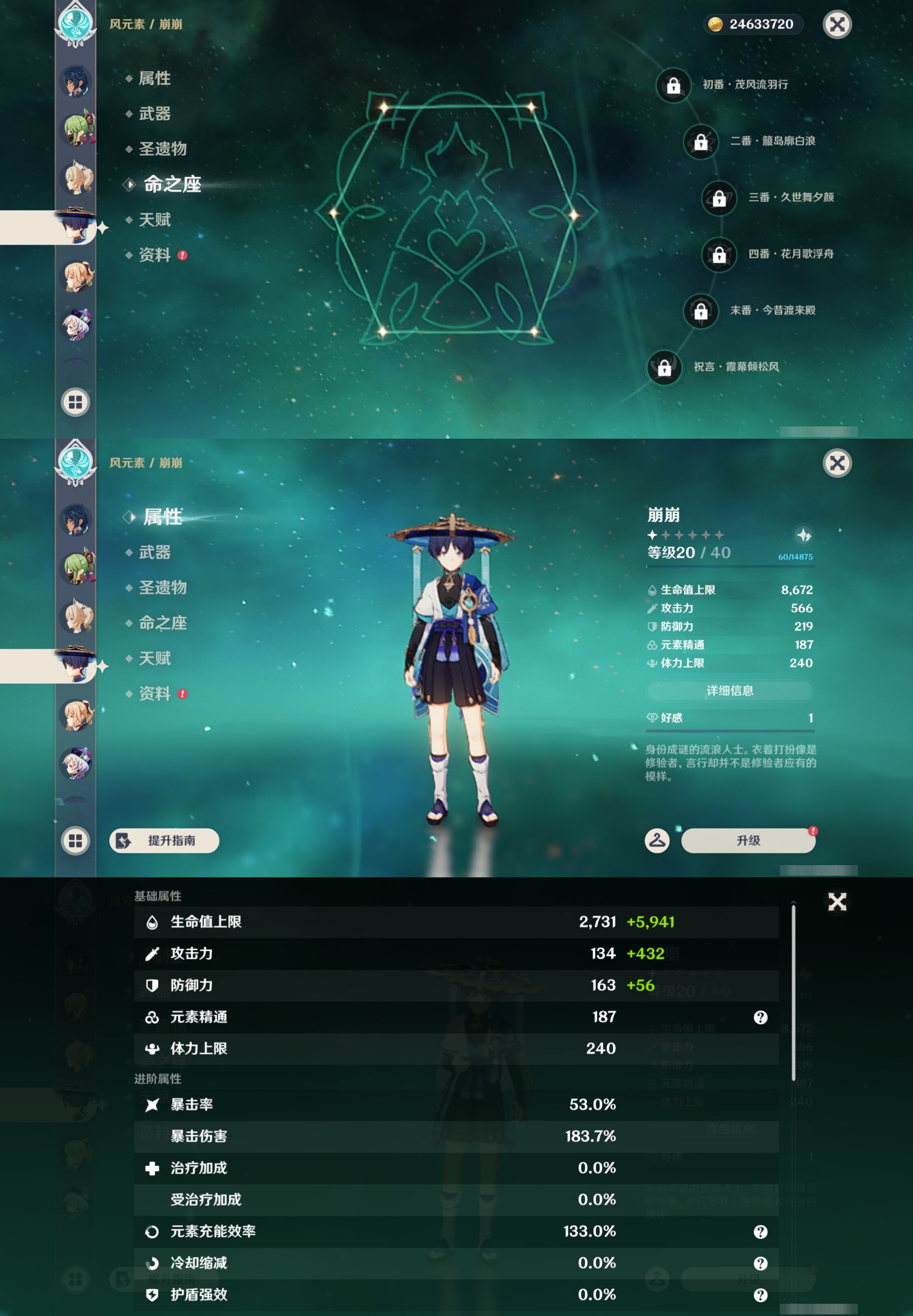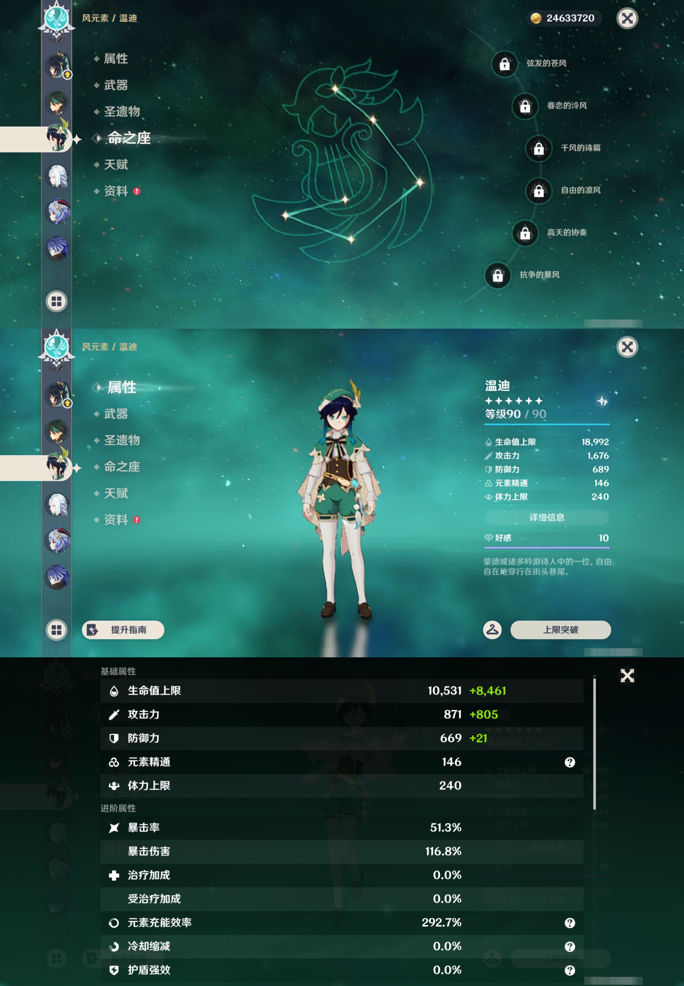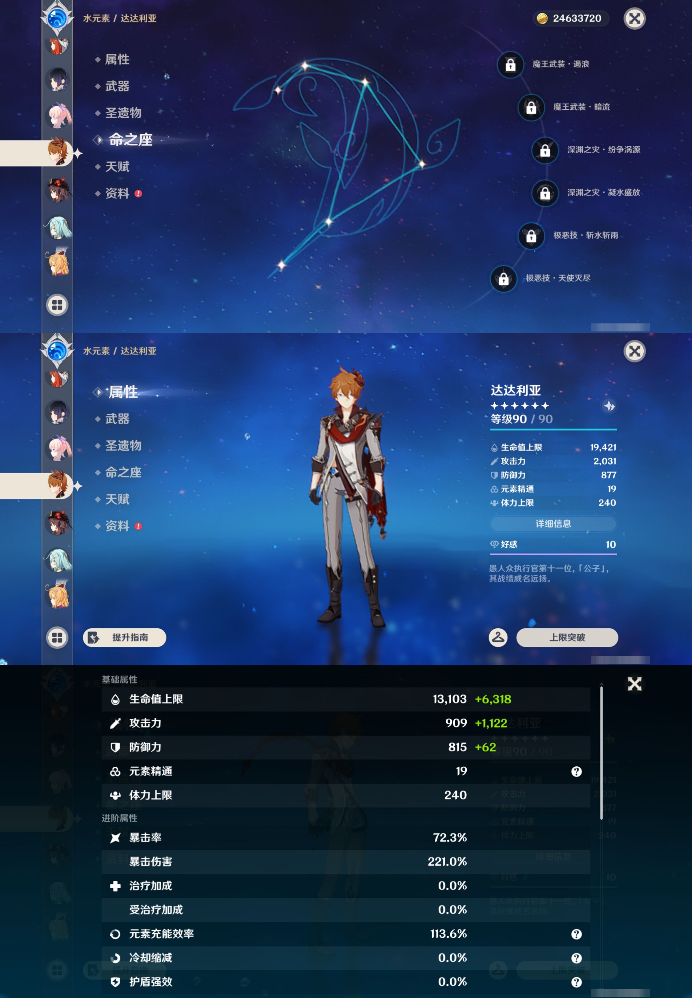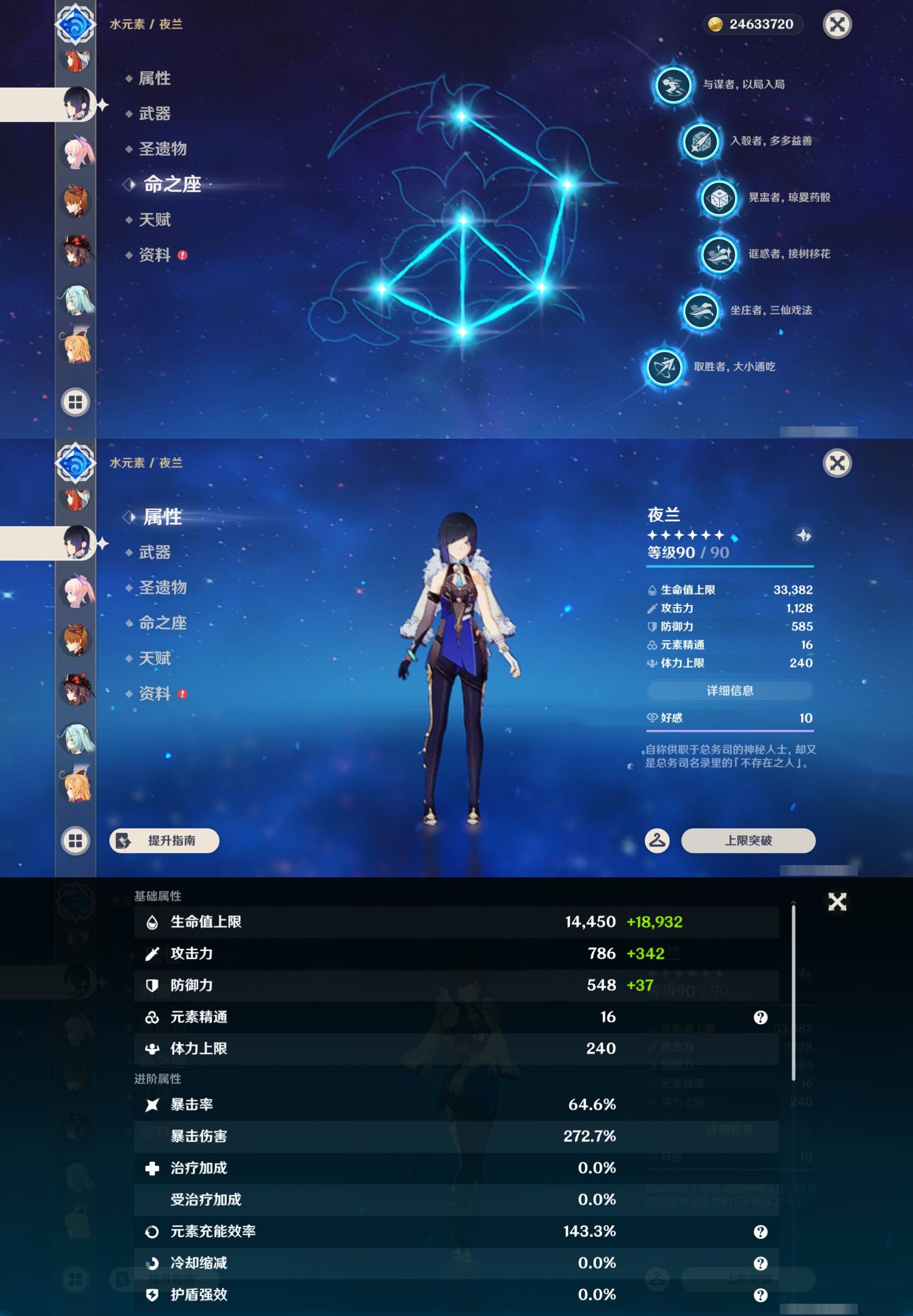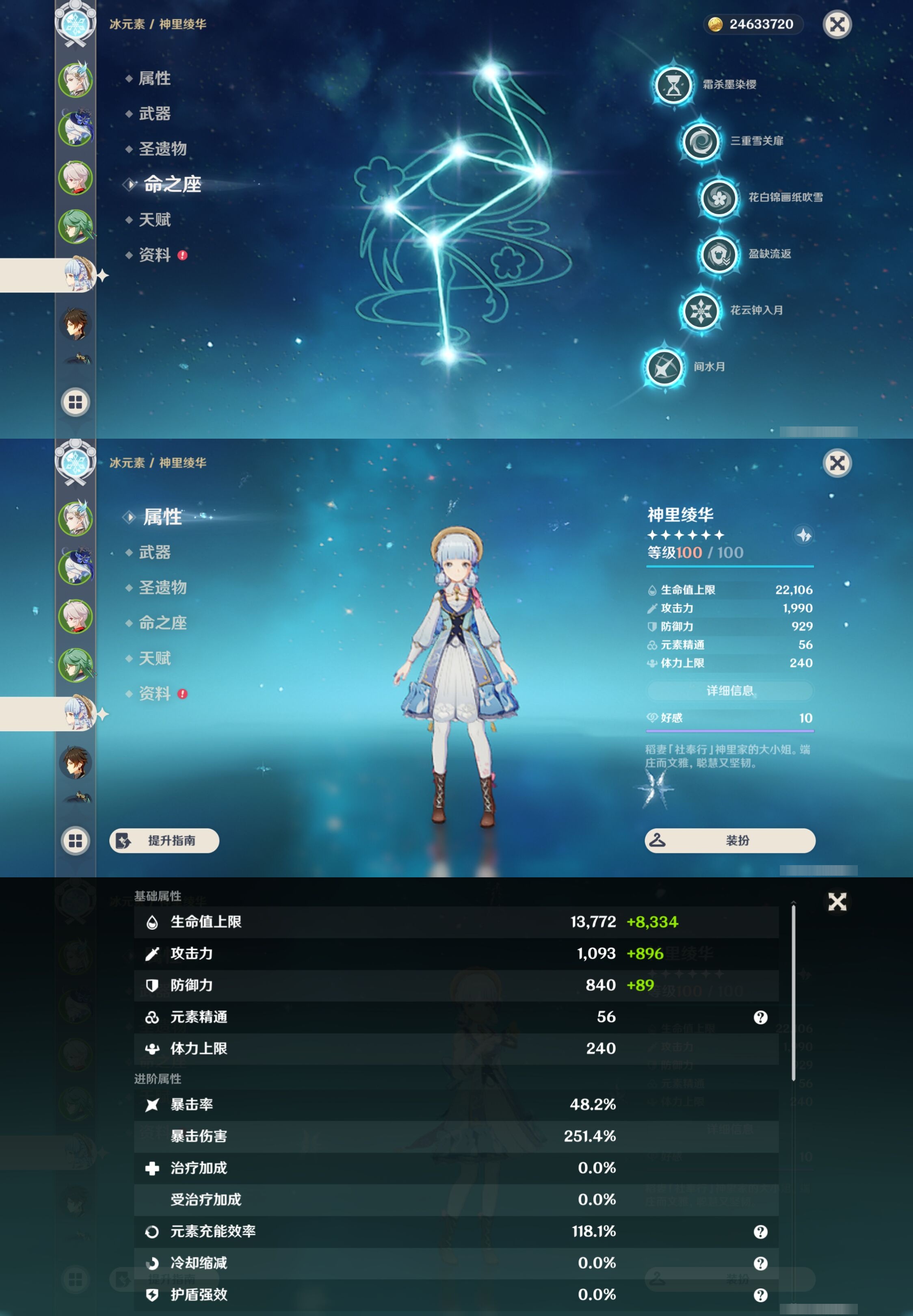 【30个五星角色】,满命那维莱特,满命神里绫华,满命闲云,满命八重神子,满命刻晴,满命提纳里,满命夜兰,满命莫娜,5命迪卢克,3命迪希雅,2命芙宁娜,2命枫原万叶,2命雷电将军,2命纳西妲,1命申鹤,1命胡桃,1命七七,0命白术,0命钟离,0命魈,0命温迪,0命甘雨,0命菲林斯,0命妮露,0命珊瑚宫心海,0命达达利亚,0命爱可菲,0命流浪者,0命琴,0命梦见月瑞希,