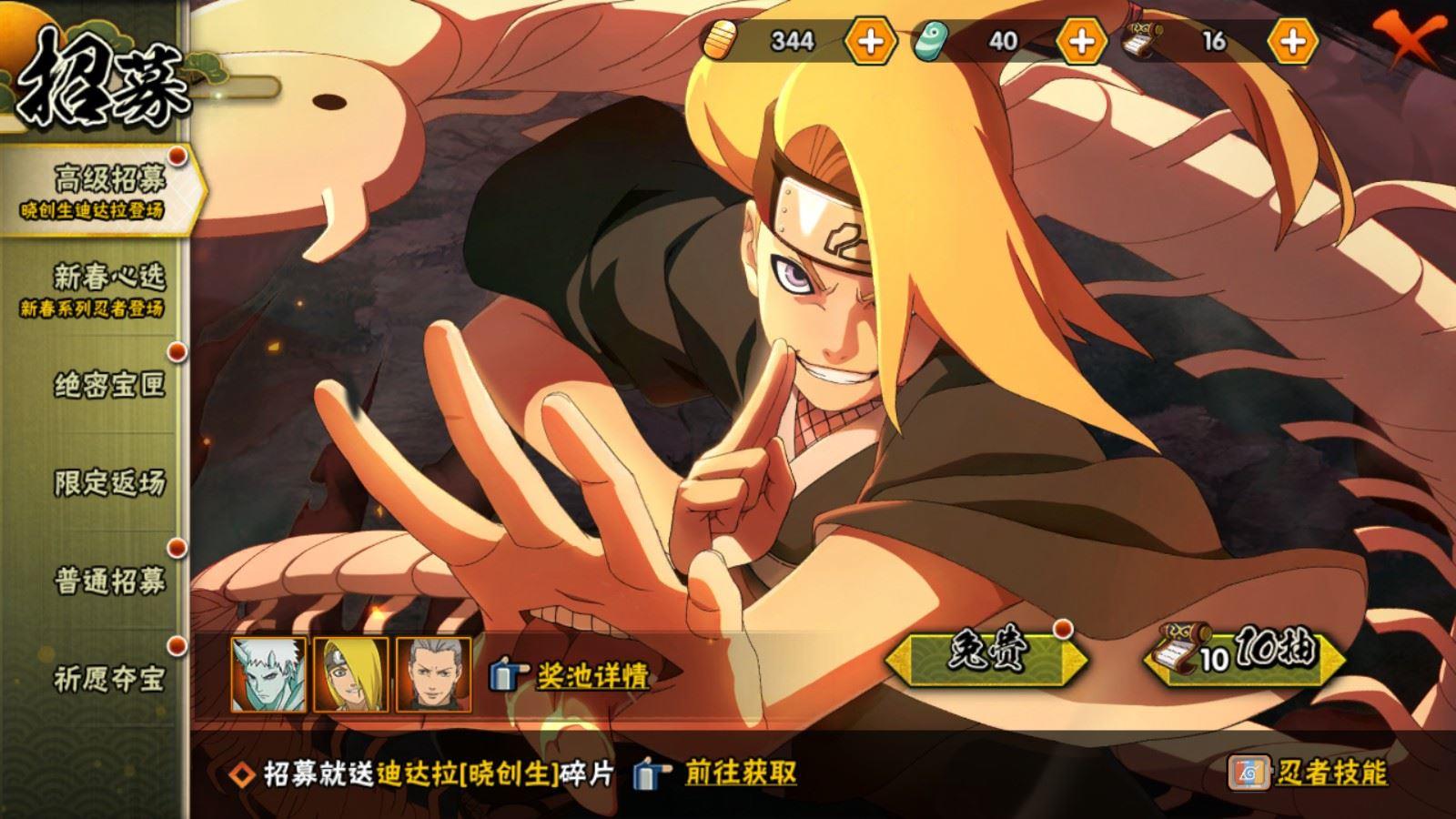 【S忍者】,宇智波佐助「漩涡鸣人」,宇智波斑「秽土转生·解」,千手柱间「木叶创立」,迈特凯「死门」,自来也「舞之豪杰」,旗木卡卡西「须佐能乎」,宇智波鼬「须佐能乎」,佩恩「天道」,波风水门,大蛇丸,