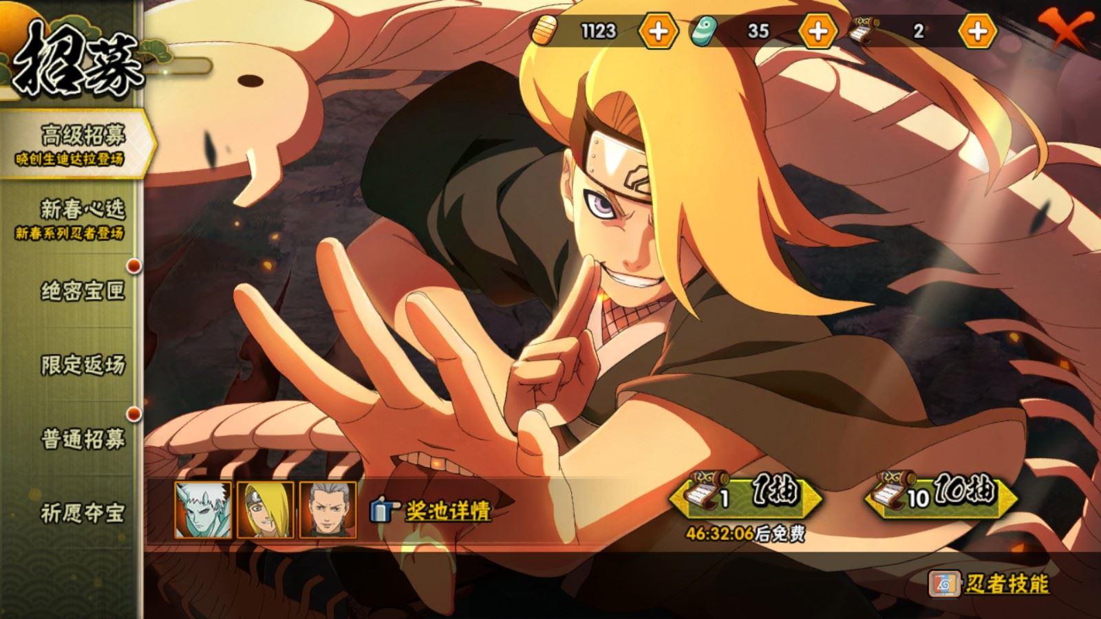 【A忍者】,佩恩·六道「漂泊浪客」,小南「神驹佑将」,巳月「仙人模式」,迈特凯「青春爆炸」,长十郎「六代目水影」,不缘,日向宁次「忍界大战」,漩涡博人「桃式显现」,宇智波鼬「夏日限定」,日向雏田「最终章」,旗木卡卡西「幻之真容」,李洛克「忍界大战」,蝎「绯流琥」,宇智波泉奈,长门「青年」,波风水门「青年」,黑土「四代目土影」,宇智波佐助「须佐能乎」,迪达拉「秽土转生」,漩涡鸣人「九尾查克拉」,千代「近松十人卫」,秋道丁次「忍界大战」,照美冥「五代目水影」,宇智波佐助「万花筒写轮眼」,旗木卡卡西「万花筒写轮眼」,飞段「死司凭血」,飞段,我爱罗「疾风传」,蝎,干柿鬼鲛,宇智波鼬,猿飞阿斯玛,迈特凯,
