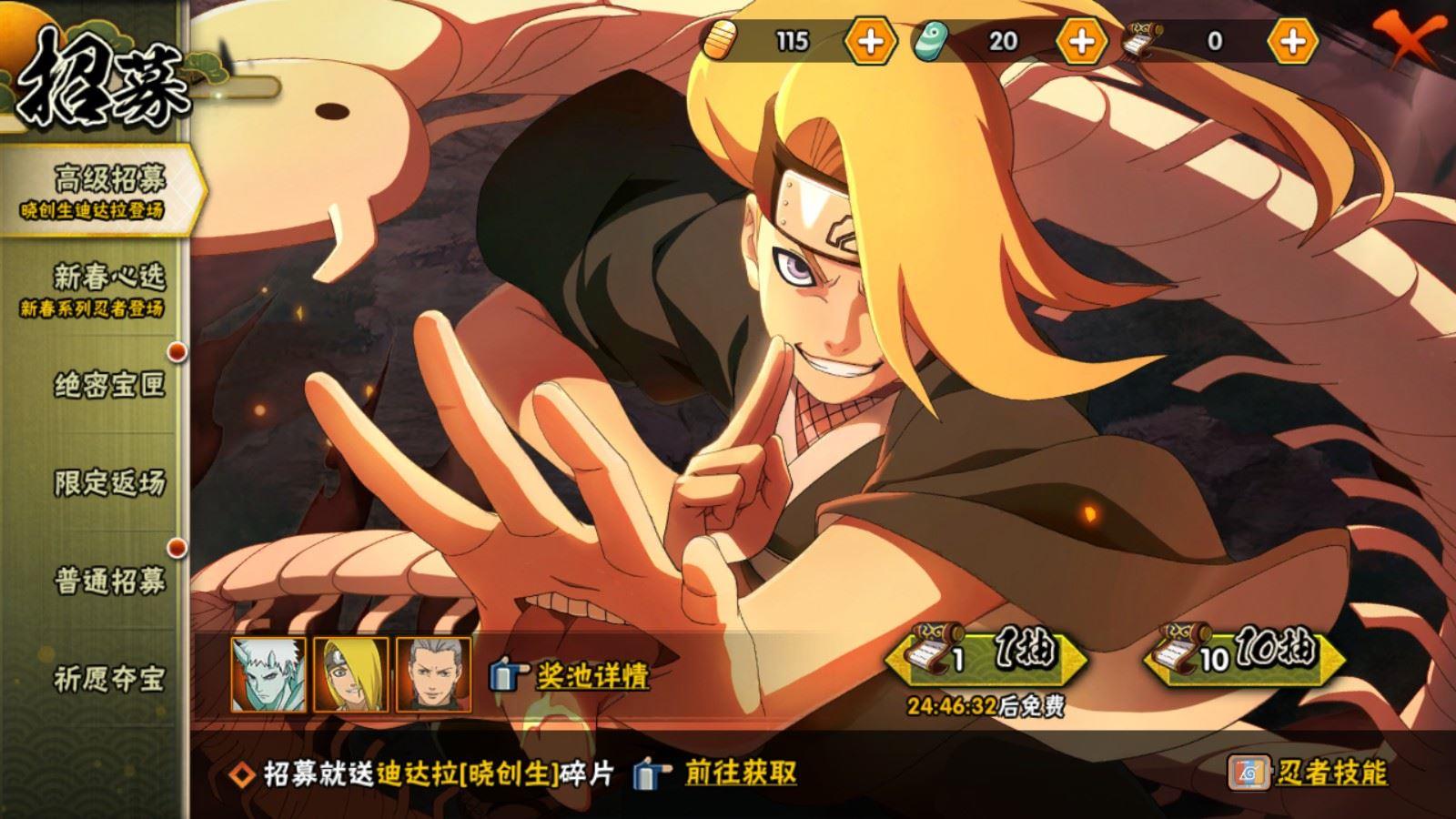【A忍者】,迈特凯「青春爆炸」,长十郎「六代目水影」,日向宁次「忍界大战」,漩涡博人「桃式显现」,宇智波鼬「夏日限定」,宇智波泉奈,桃地再不斩「秽土转生」,长门「青年」,艾「青年」,神秘面具男「忍者之路」,波风水门「青年」,黑土「四代目土影」,宇智波佐助「须佐能乎」,迪达拉「秽土转生」,千代「近松十人卫」,秋道丁次「忍界大战」,飞段「死司凭血」,飞段,我爱罗「疾风传」,蝎,干柿鬼鲛,宇智波鼬,猿飞阿斯玛,迈特凯,桃地再不斩,