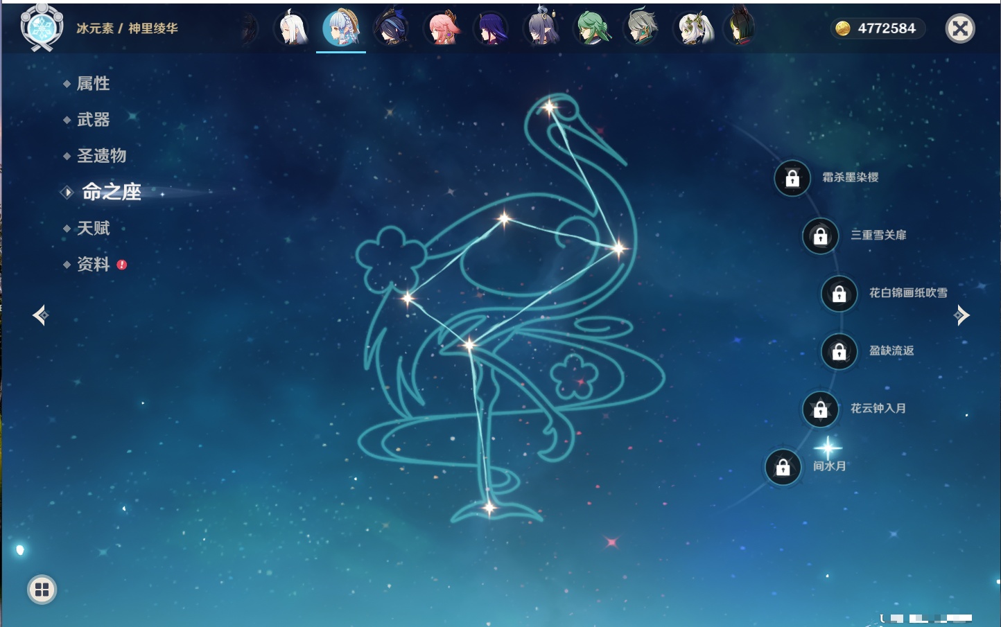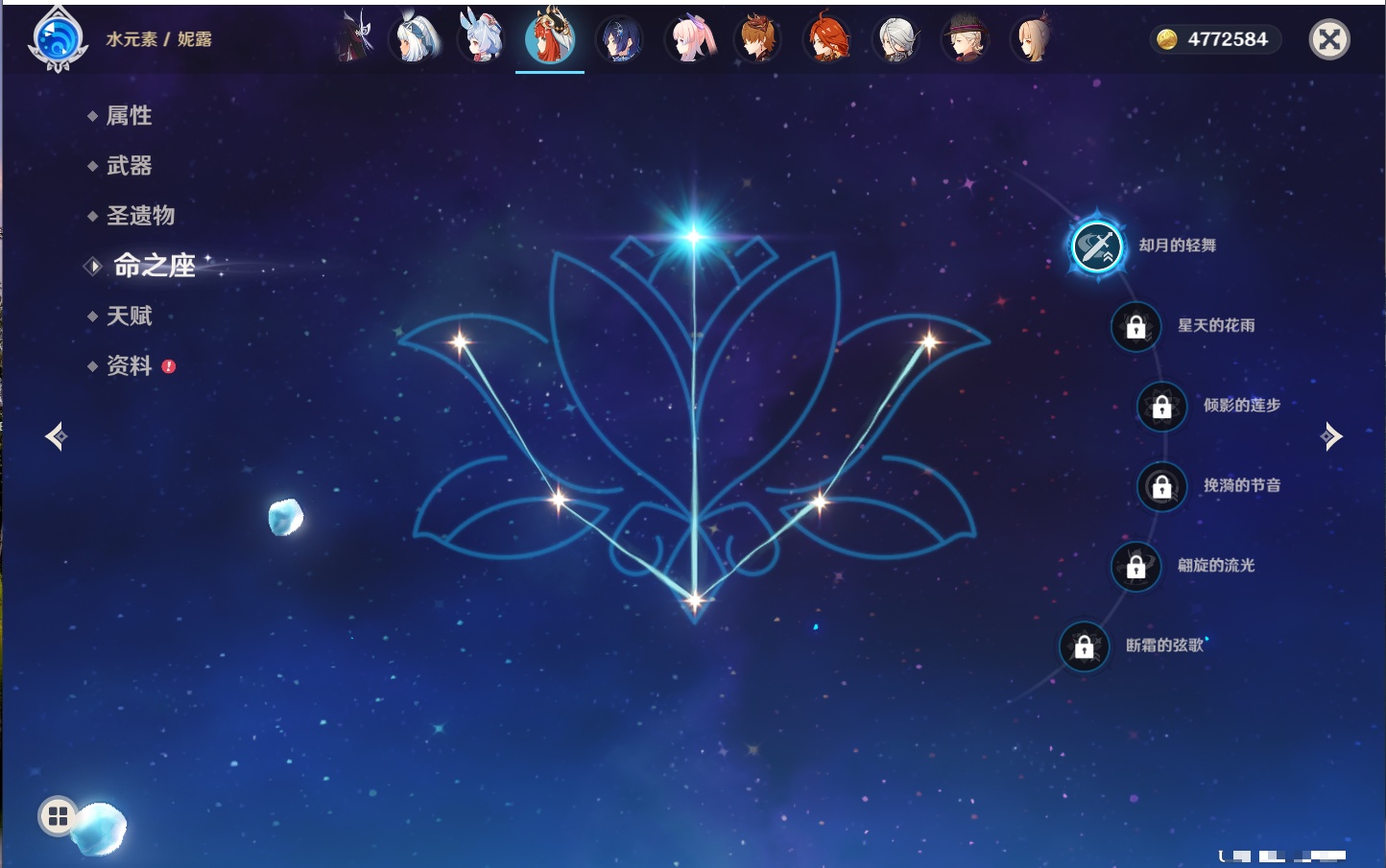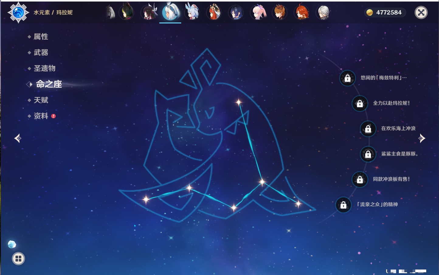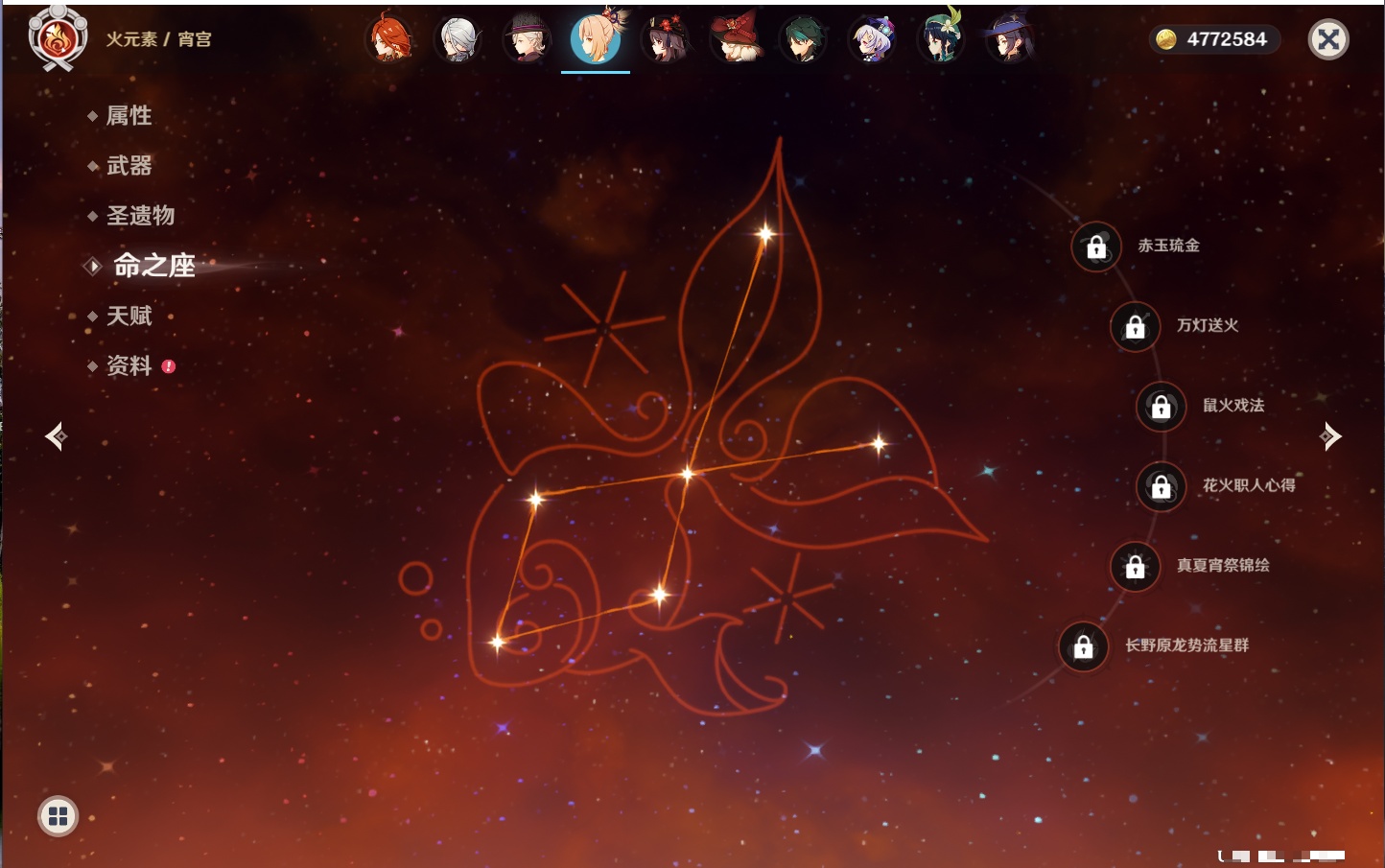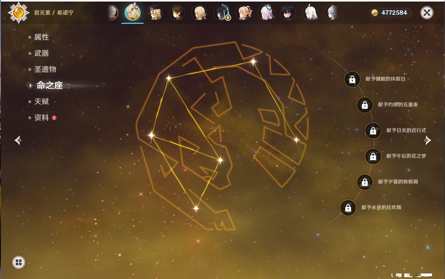【42个五星角色】,满命那维莱特,满命迪卢克,5命提纳里,4命七七,3命莫娜,2命迪希雅,2命雷电将军,2命刻晴,1命妮露,1命夜兰,1命胡桃,1命琴,0命希格雯,0命克洛琳德,0命阿蕾奇诺,0命闲云,0命芙宁娜,0命莱欧斯利,0命林尼,0命白术,0命艾尔海森,0命流浪者,0命纳西妲,0命八重神子,0命申鹤,0命优菈,0命枫原万叶,0命神里绫华,0命钟离,0命魈,0命宵宫,0命温迪,0命可莉,0命达达利亚,0命珊瑚宫心海,0命希诺宁,0命娜维娅,0命茜特菈莉,0命菈乌玛,0命哥伦比娅,0命玛拉妮,0命玛薇卡,