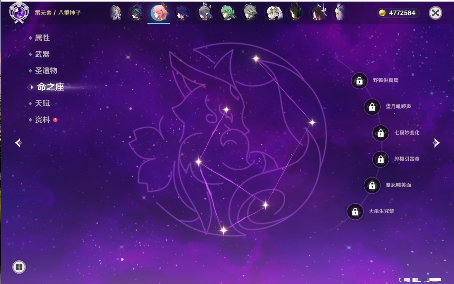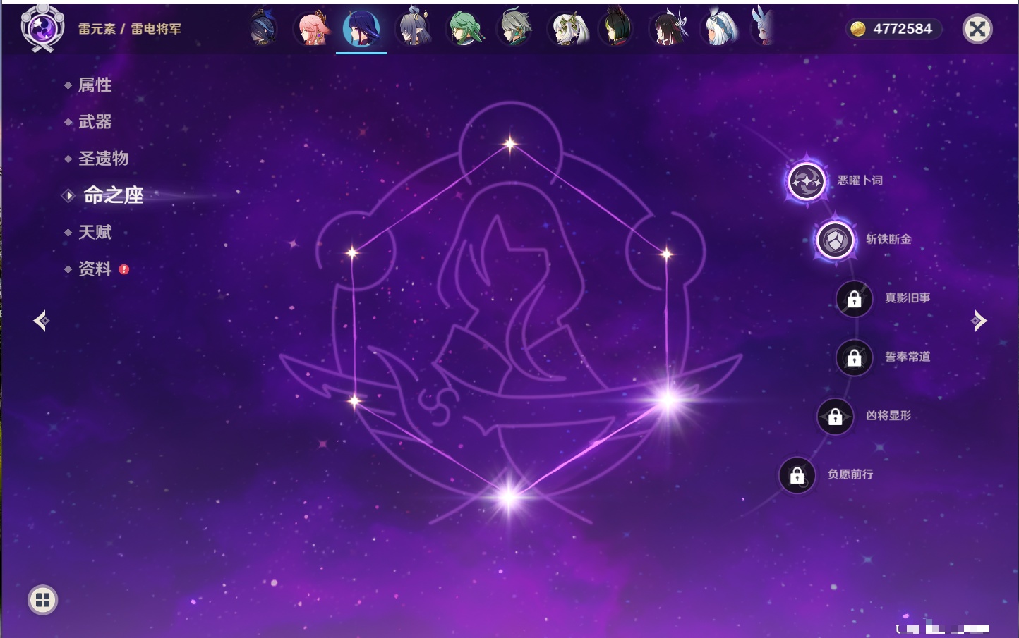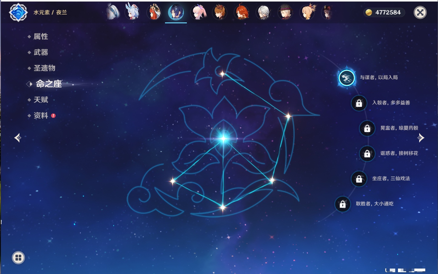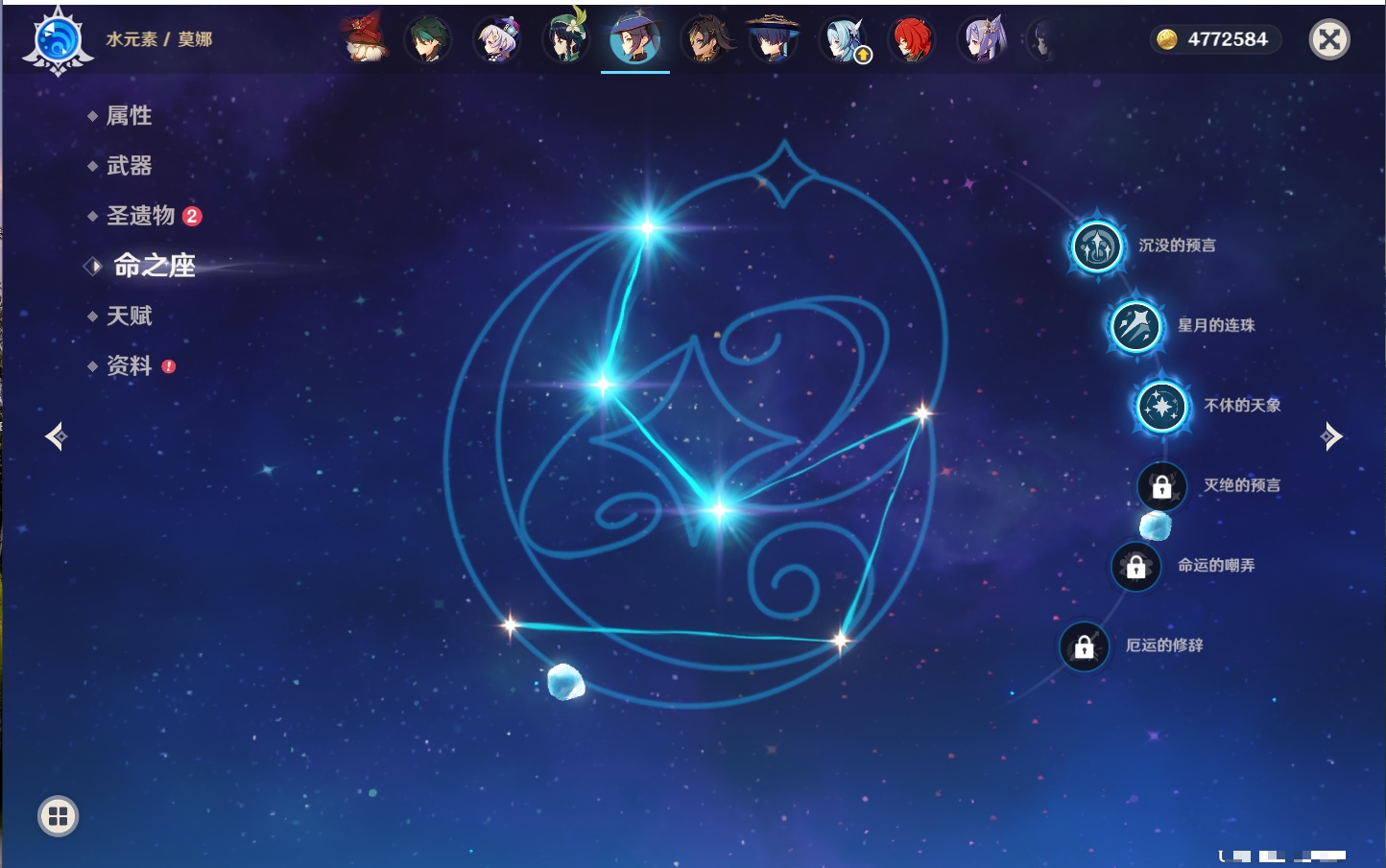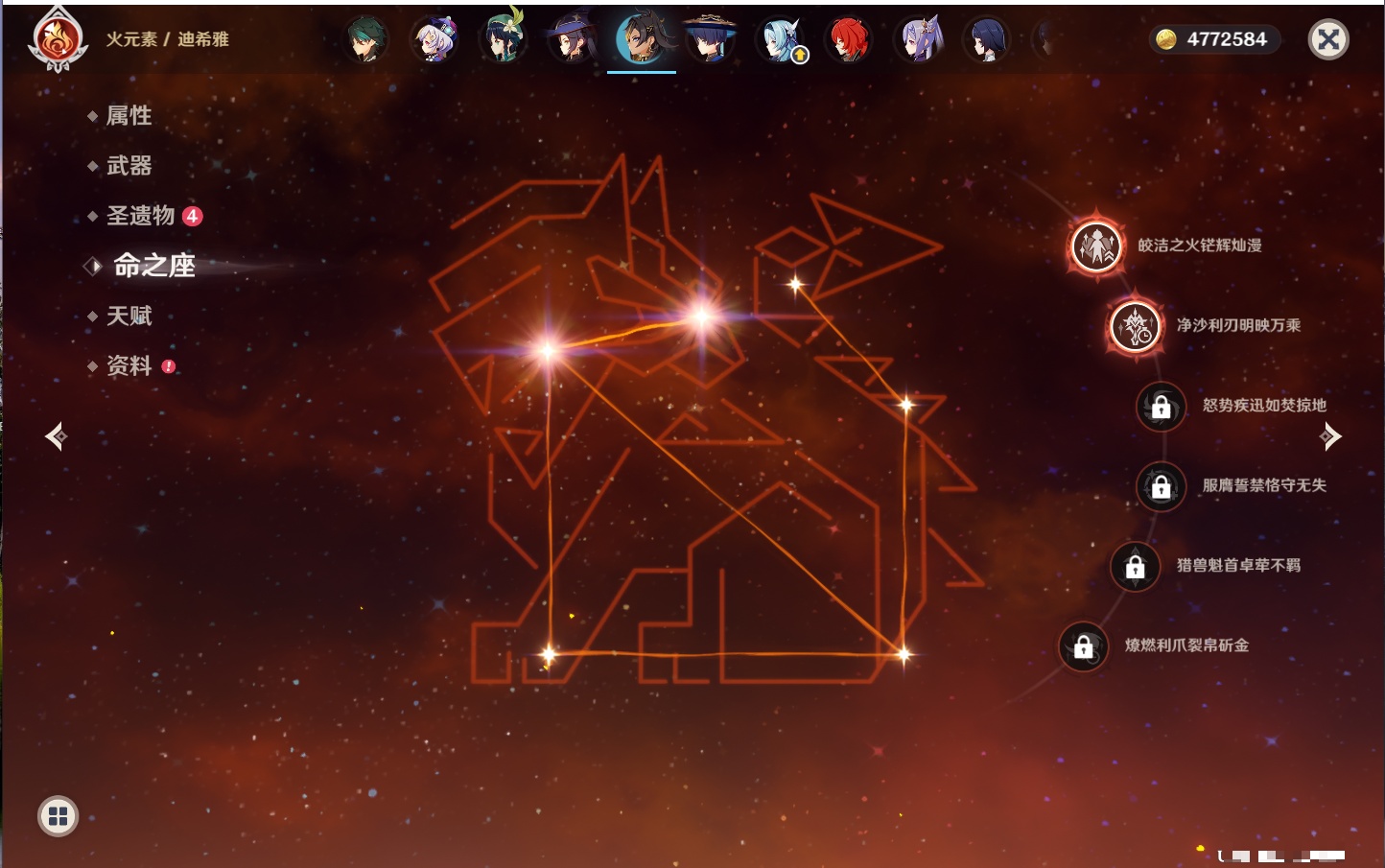 【42个五星角色】,满命那维莱特,满命迪卢克,5命提纳里,4命七七,3命莫娜,2命迪希雅,2命雷电将军,2命刻晴,1命妮露,1命夜兰,1命胡桃,1命琴,0命希格雯,0命克洛琳德,0命阿蕾奇诺,0命闲云,0命芙宁娜,0命莱欧斯利,0命林尼,0命白术,0命艾尔海森,0命流浪者,0命纳西妲,0命八重神子,0命申鹤,0命优菈,0命枫原万叶,0命神里绫华,0命钟离,0命魈,0命宵宫,0命温迪,0命可莉,0命达达利亚,0命珊瑚宫心海,0命希诺宁,0命娜维娅,0命茜特菈莉,0命菈乌玛,0命哥伦比娅,0命玛拉妮,0命玛薇卡,
