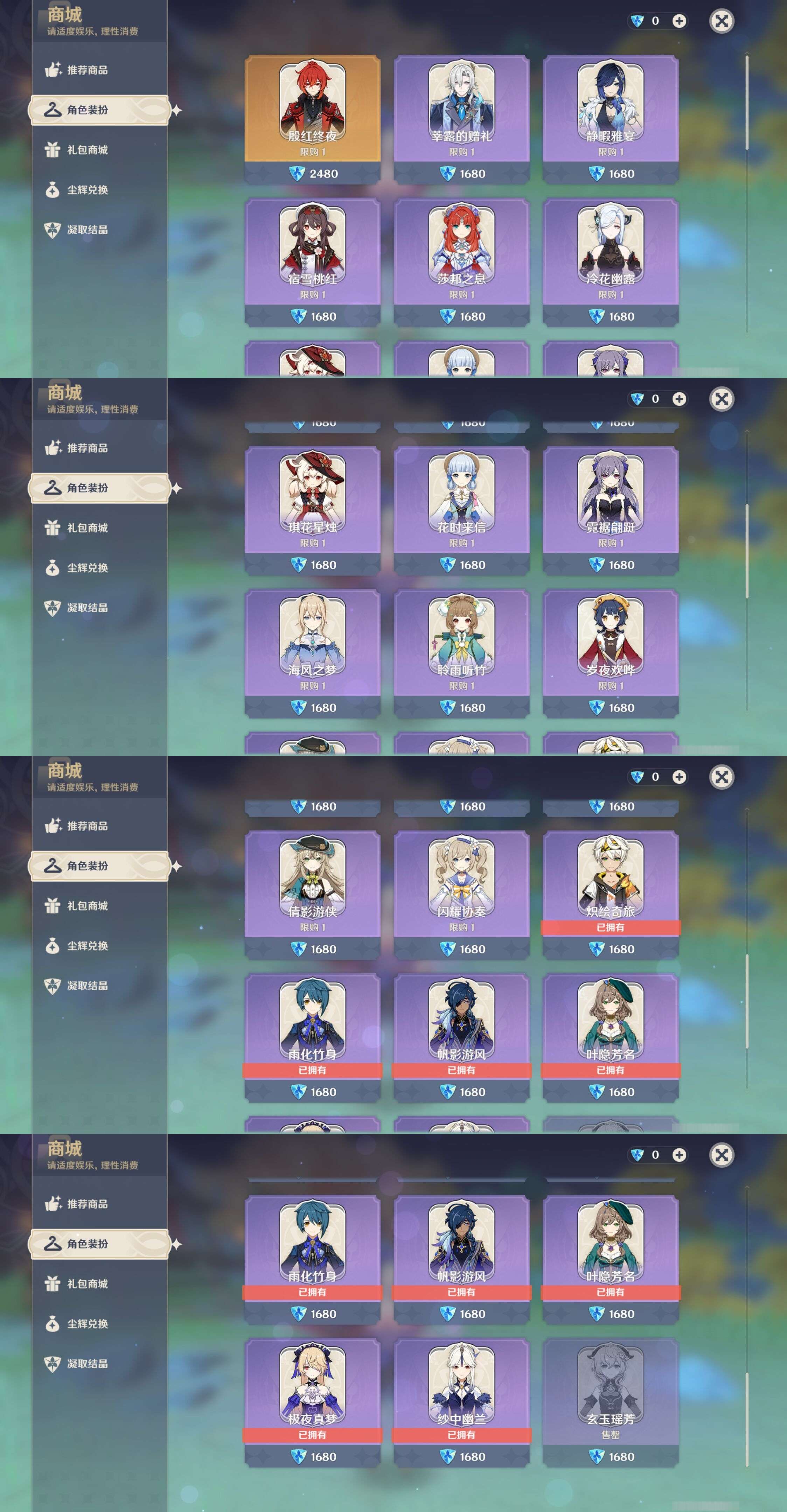 PX_2511268-,邮箱不出售,,冒险等级60级,男主,86黄,28个五星角色,26个五星武器,纠缠之源0--原石112--圣遗物408--【时装】,极夜真梦,雨化竹身,玄玉瑶芳,帆影游风,纱中幽兰,叶隐芳名,炽绘奇旅,