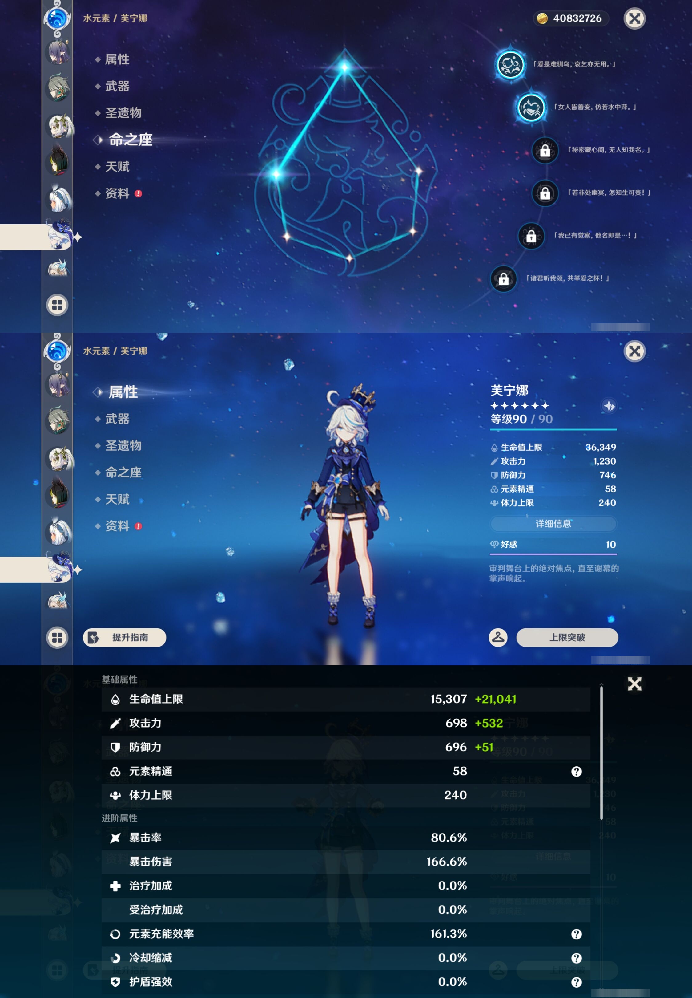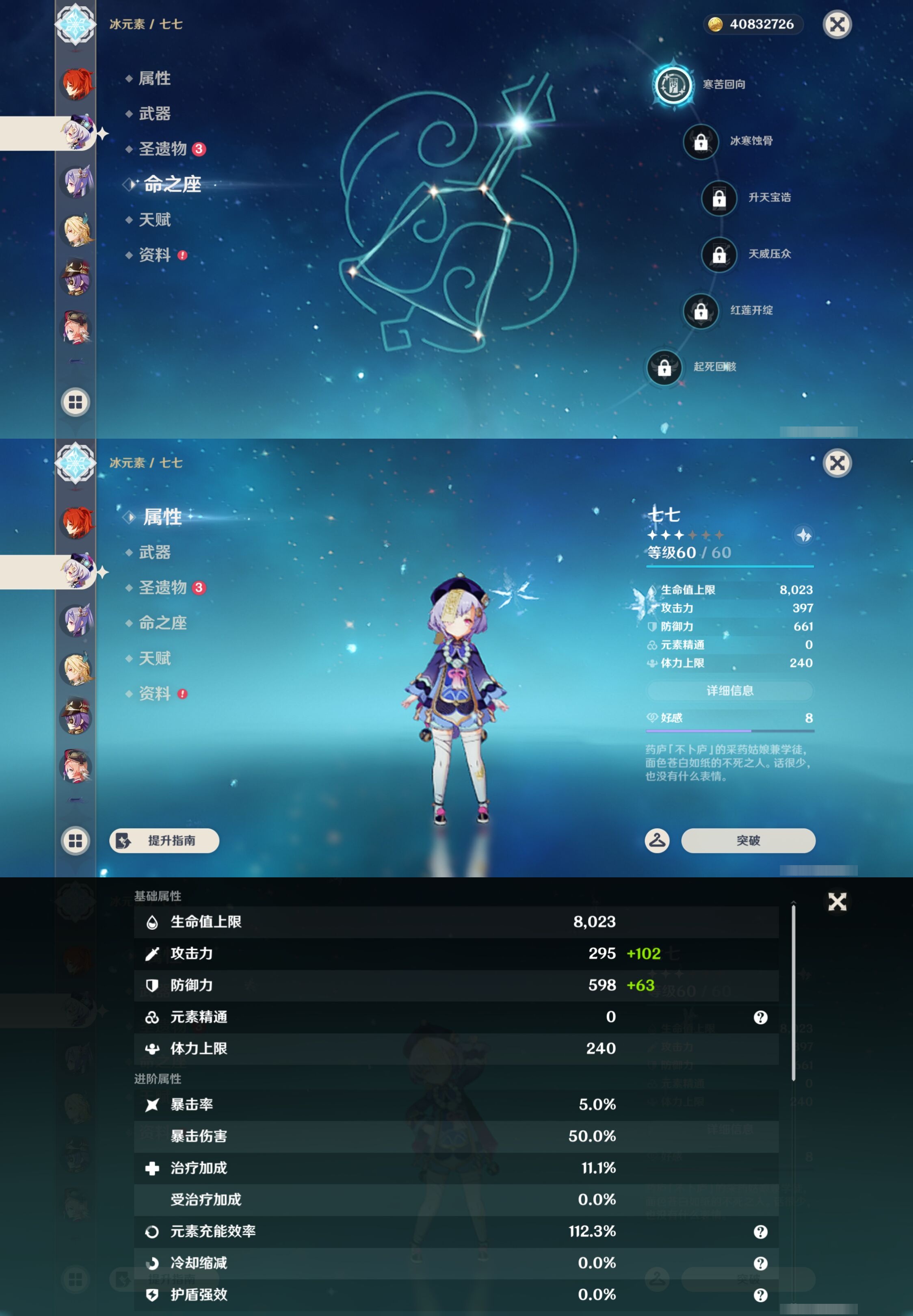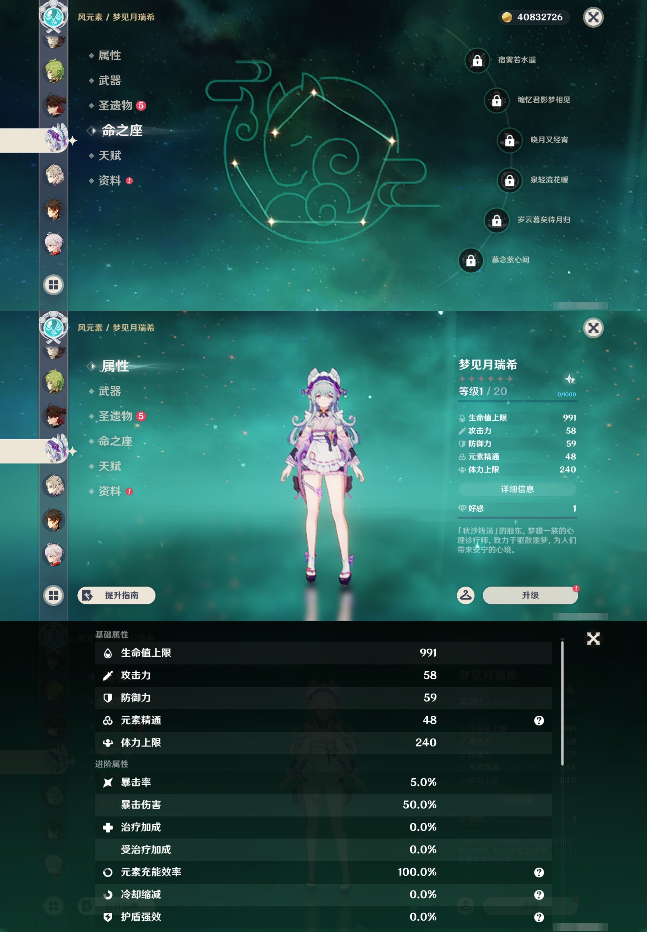 PX_2512963-,邮箱不出售,不送TAP,冒险等级60级,女主,66黄,33个五星角色,12个五星武器,纠缠之源0--原石2353--圣遗物1860--【时装】,叶隐芳名,冷花幽露,殷红终夜,极夜真梦,雨化竹身,纱中幽兰,