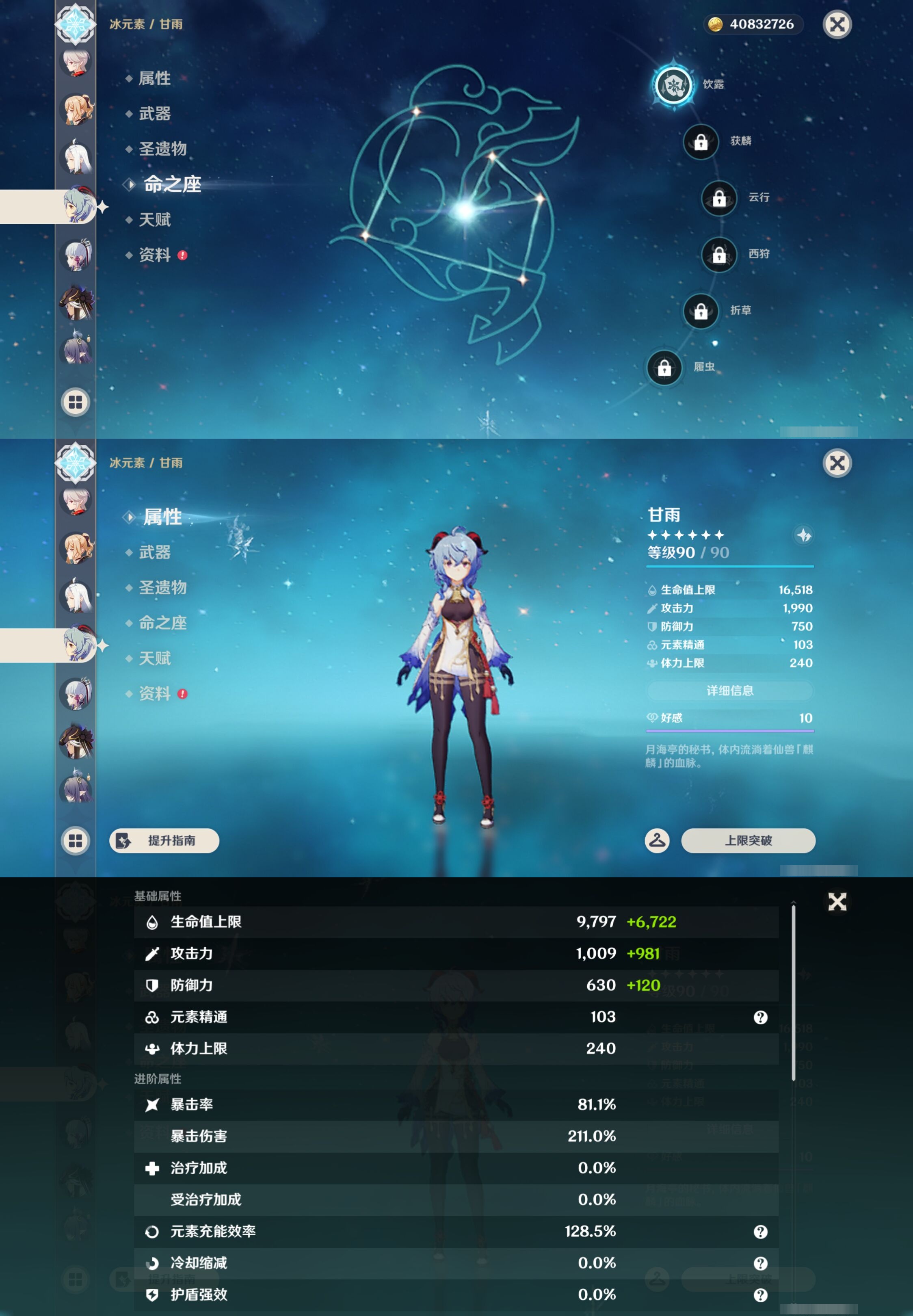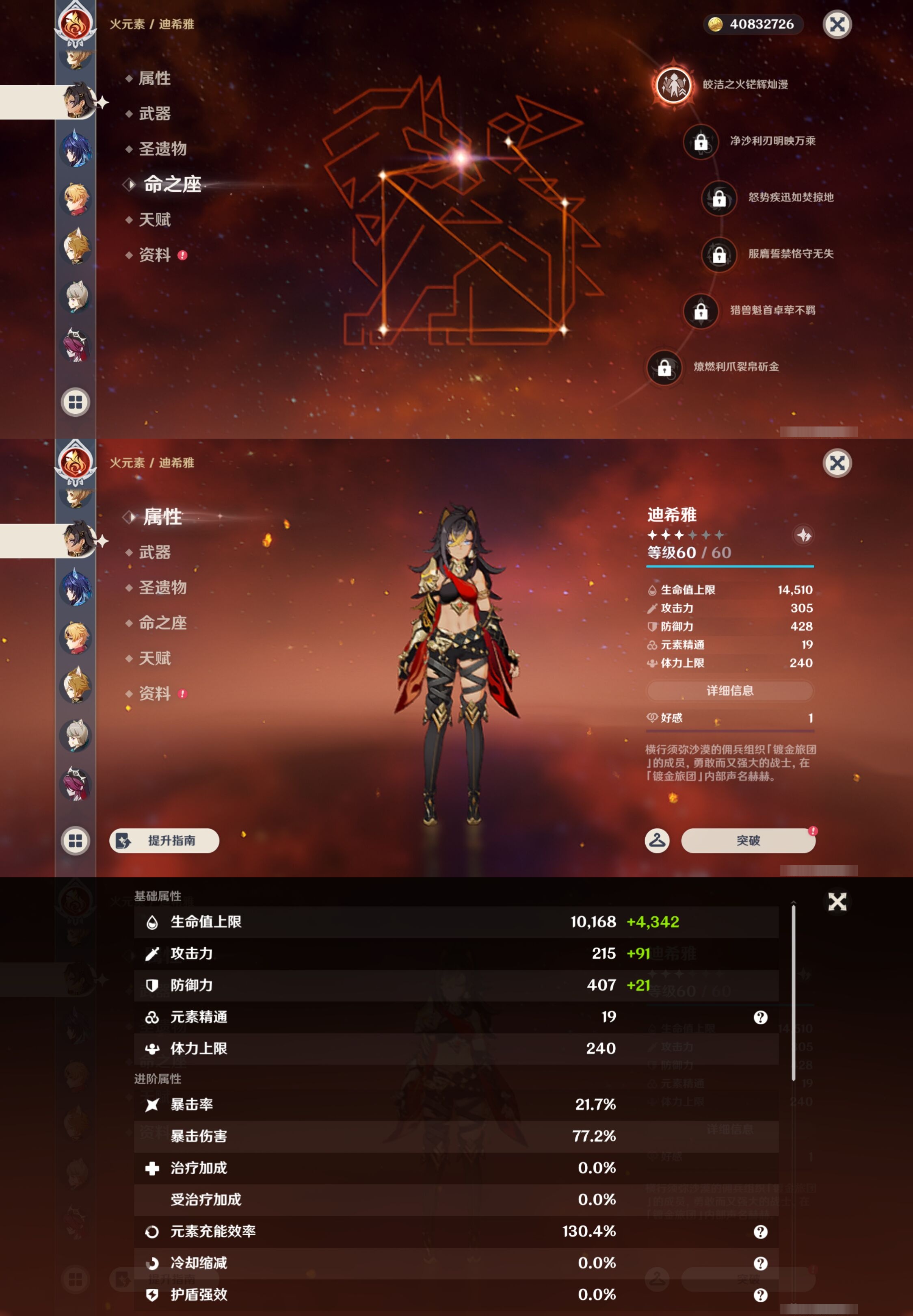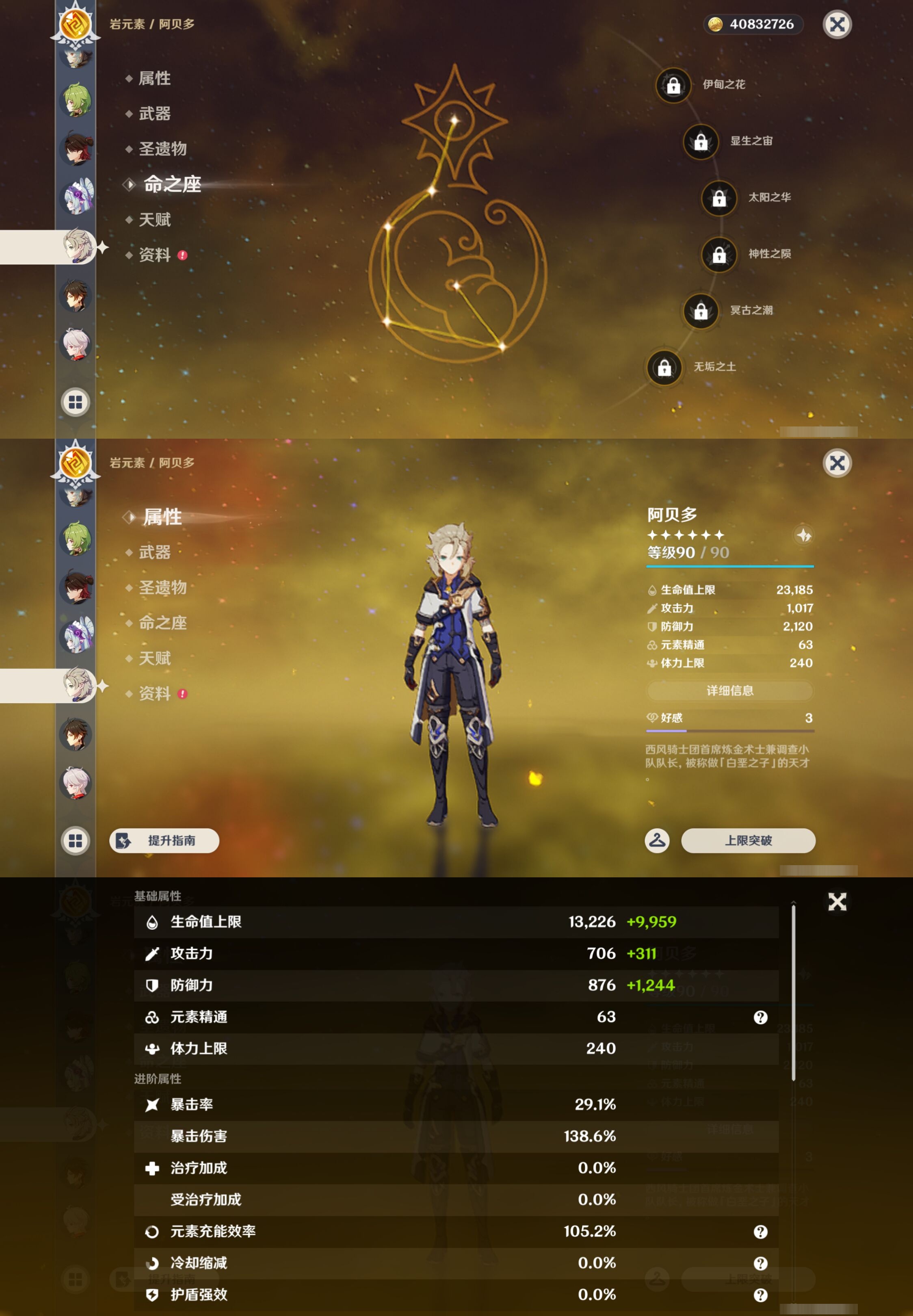 【33个五星角色】,满命迪卢克,2命芙宁娜,2命神里绫人,2命莫娜,1命雷电将军,1命七七,1命刻晴,1命琴,1命甘雨,1命菈乌玛,1命那维莱特,1命达达利亚,1命迪希雅,0命希诺宁,0命恰斯卡,0命菲林斯,0命梦见月瑞希,0命阿贝多,0命钟离,0命枫原万叶,0命申鹤,0命神里绫华,0命赛诺,0命艾尔海森,0命纳西妲,0命提纳里,0命玛拉妮,0命夜兰,0命珊瑚宫心海,0命胡桃,0命可莉,0命温迪,0命埃洛伊,