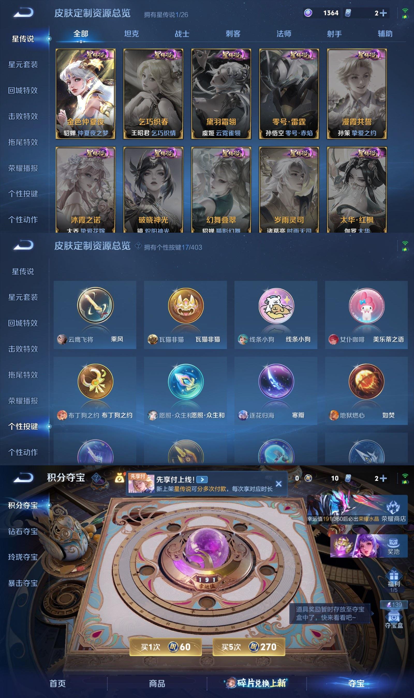 【传说】,逐花归海,神骥鸣幻洲,愿照众生和,绛天战甲,音你闪耀,云鹰飞将,久胜战神,一念神魔,时之恋人男,仲夏夜之梦,地狱之眼,末日机甲策,