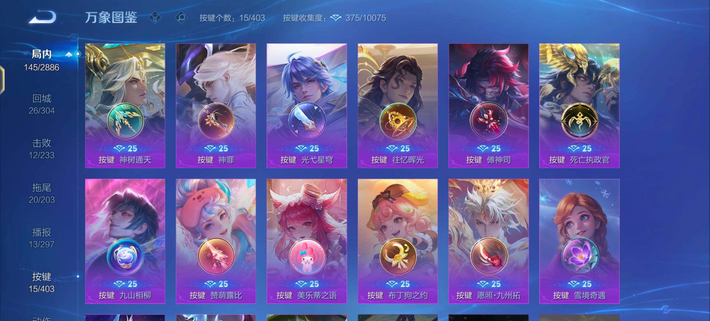 【战令限定】:蒙犽狂想玩偶喵,元歌云间偶戏,米莱狄胡桃异想国,艾琳流音漫舞,亚连破空之剑,孙悟空神迹守卫,百里守约百相守梦,老夫子百相守梦,孙膑茶境仙,马超访茗客,刘禅鸭鸭历险记,沈梦溪鸭鸭历险记,周瑜百相守梦,孙策百相守梦,兰陵王傩神司,莱西奥光弋星穹,明世隐往忆晖光,周瑜线条小狗