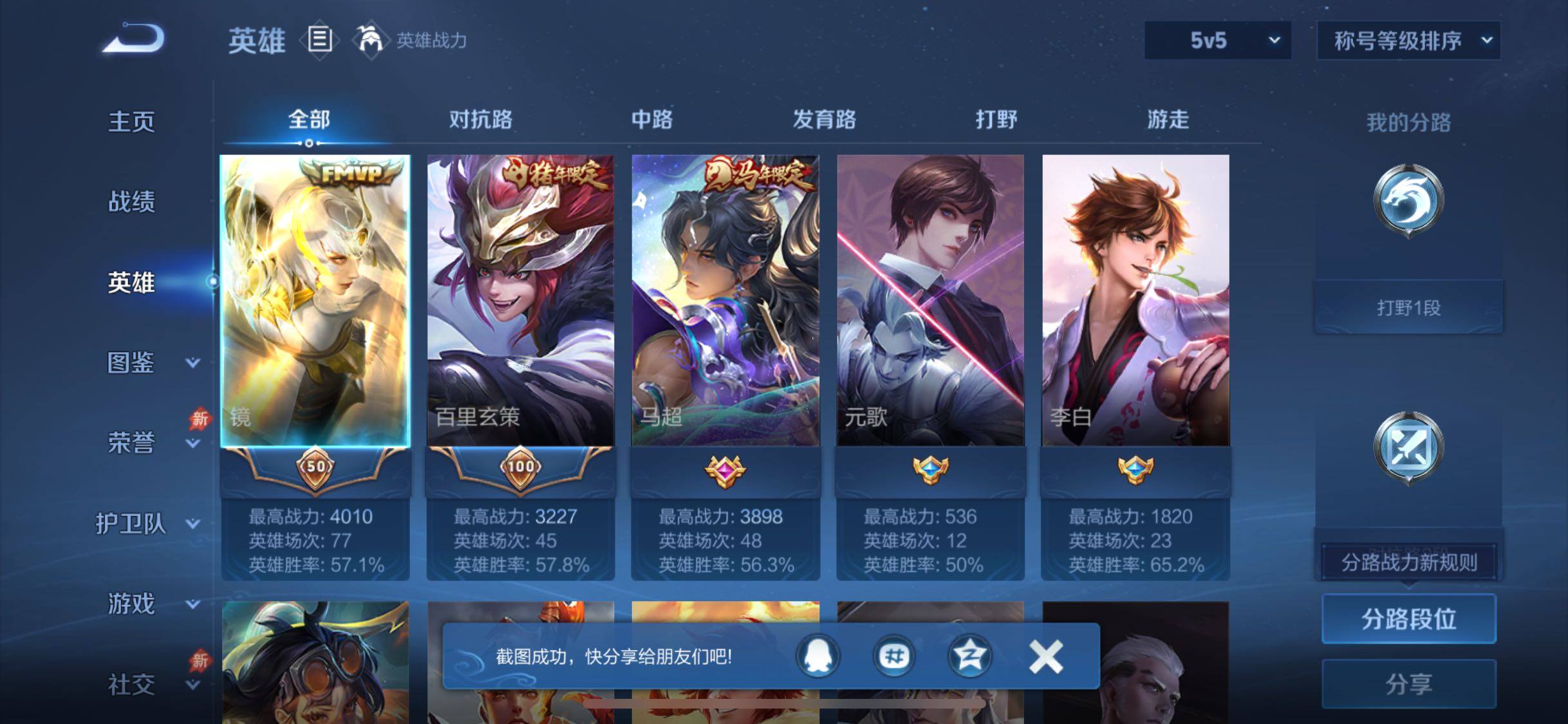 【传说皮肤】:马超神骥逐星野,镜炽阳神光,百里玄策白虎志