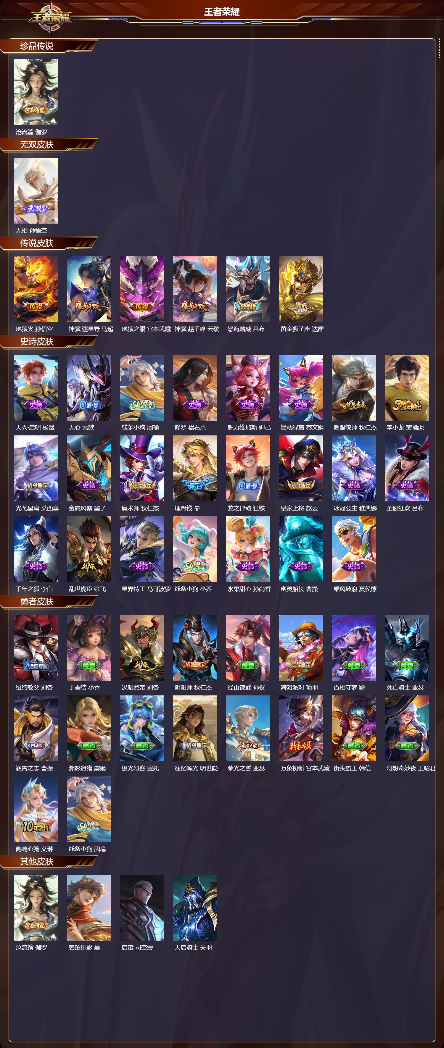 PX_2545883-Q/至圣王者/51皮肤/61英雄/0典藏/0珍品无双/1无双/1珍品传说/6传说/23史诗/6稀有英雄