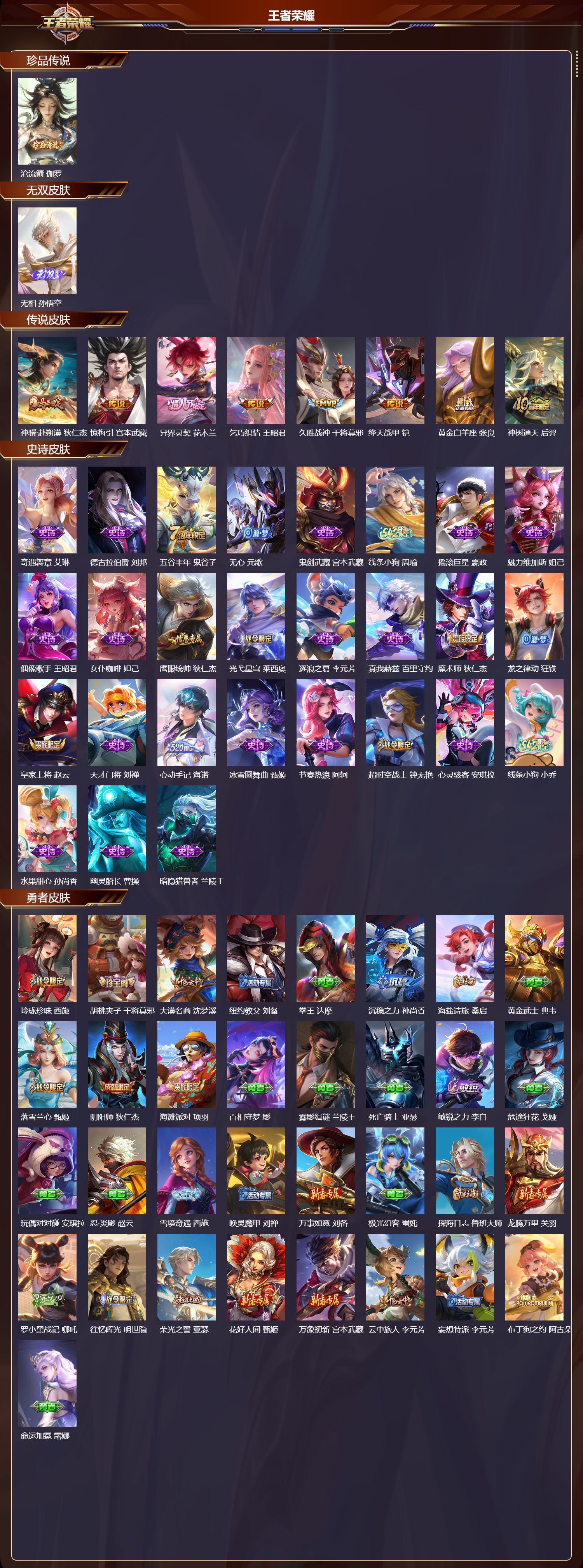 PX_2545957-Q/至圣王者/88皮肤/101英雄/0典藏/0珍品无双/1无双/1珍品传说/8传说/27史诗/7稀有英雄