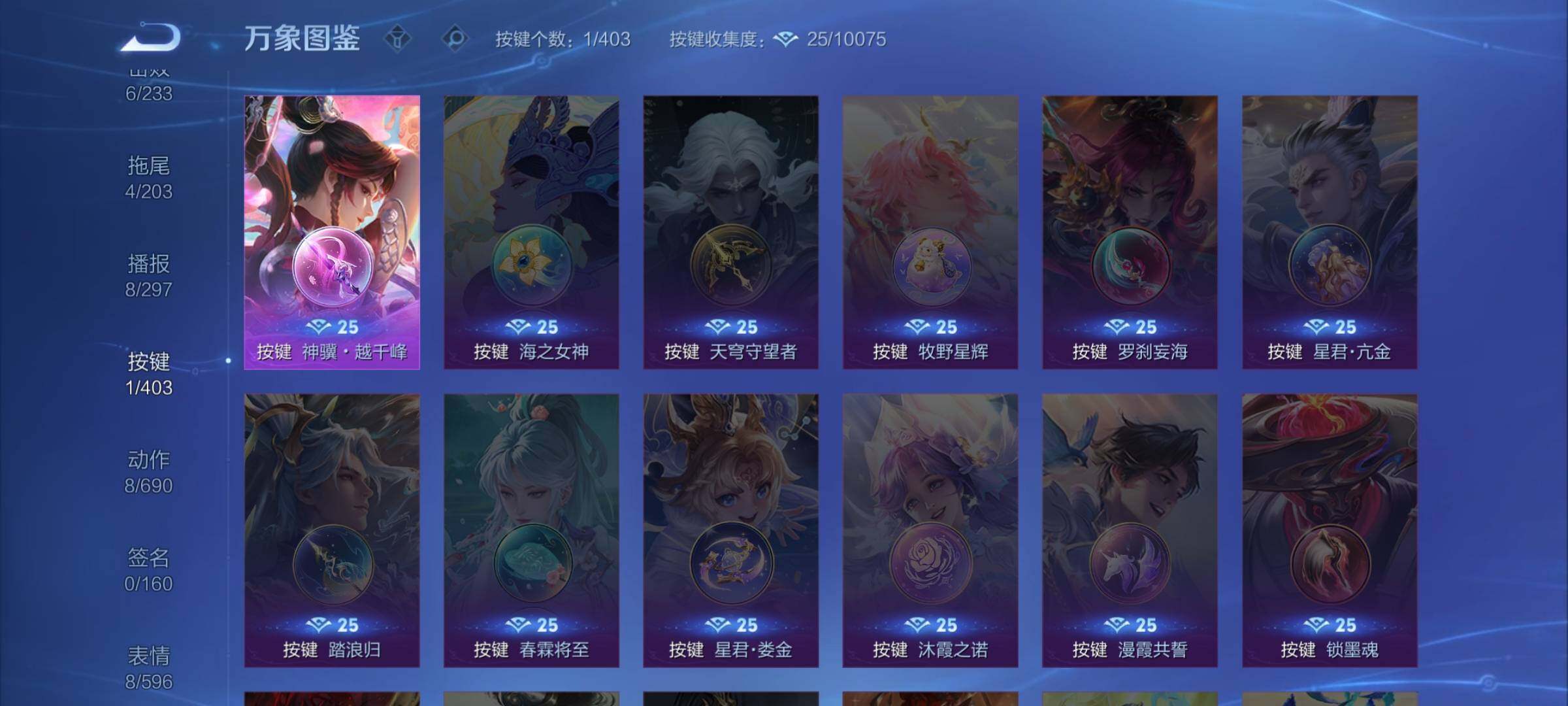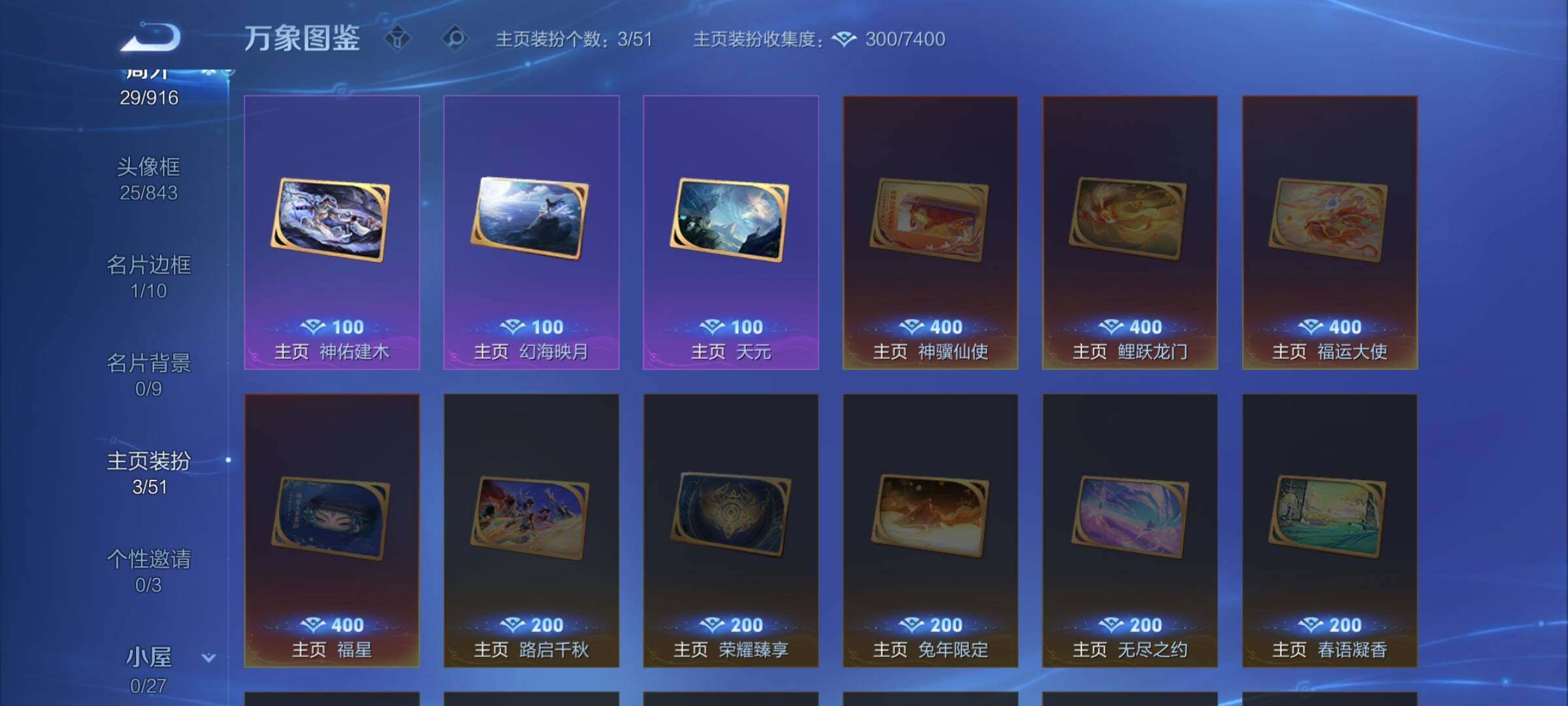 【其他皮肤】:影百相守梦,吕布舞狮寰,鲁班七号班班快跑,虞姬溯影追猎,孙权径山谋武,亚瑟荣光之誓,戈娅玫蓝誓约,太乙真人谧流熔炉,张良古海寻踪,鲁班大师探海日志,桑启海盐诗旅,戈娅危途狂花,李元芳云中旅人,沈梦溪大漠名商,兰陵王金庭之子,达摩沙漠行僧,小乔丁香结,诸葛亮掌控之力,狄仁杰阴阳师,后羿阿尔法小队,花木兰兔女郎,典韦黄金武士,孙膑天使之翼,安琪拉玩偶对对碰,宫本武藏未来纪元,赵云忍炎影,韩信街头霸王,韩信教廷特使,项羽海滩派对,云缨赤焰之缨,司空震启蛰,盘古创世神祝,伽罗花见巫女,百里玄策威尼斯狂欢,马可波罗激情绿茵,李元芳特种部队,后羿精灵王,孙悟空西部大镖客,曹操超能战警,貂蝉异域舞娘,鲁班七号福禄兄弟