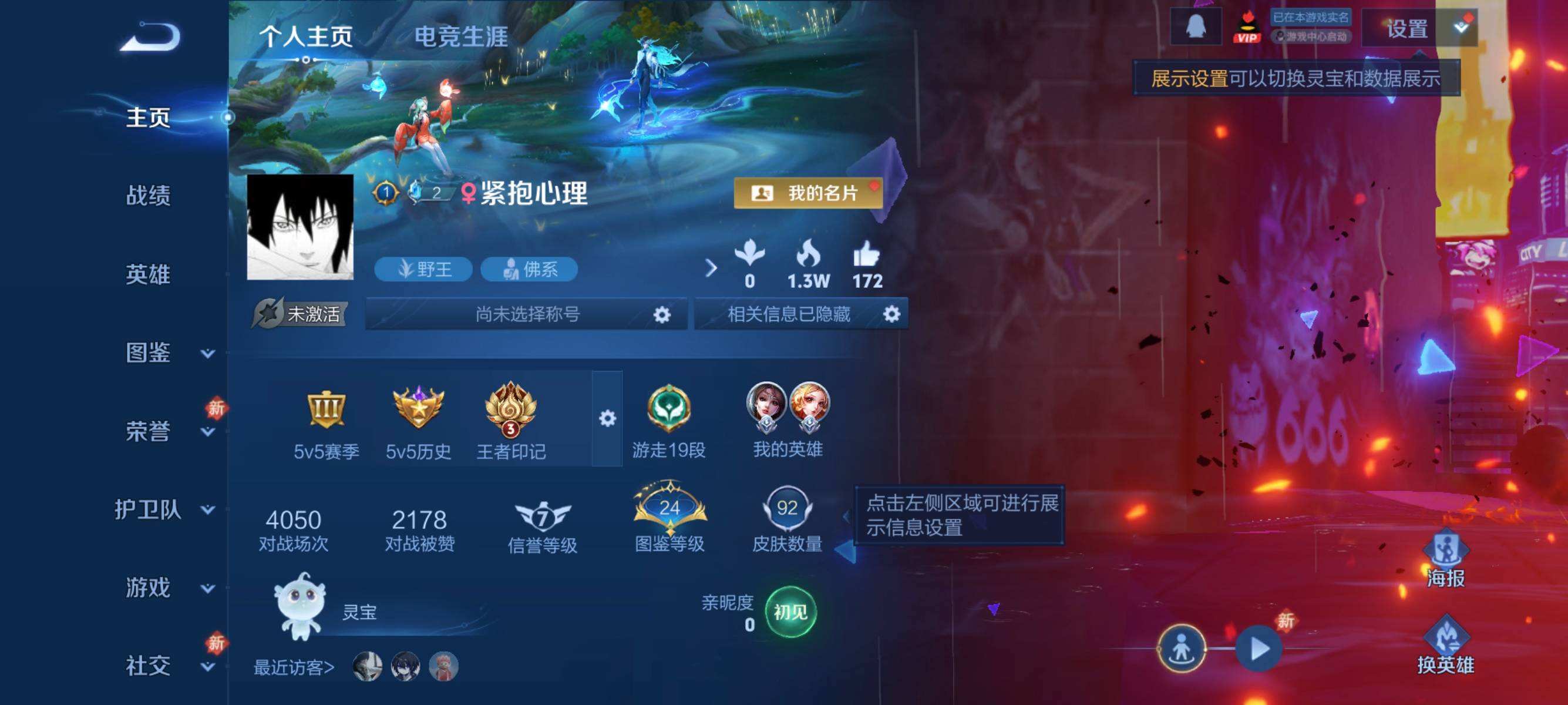 W10022【安卓区V8】可二次实名,英雄104,皮肤161,典藏:李白鸣剑.曳