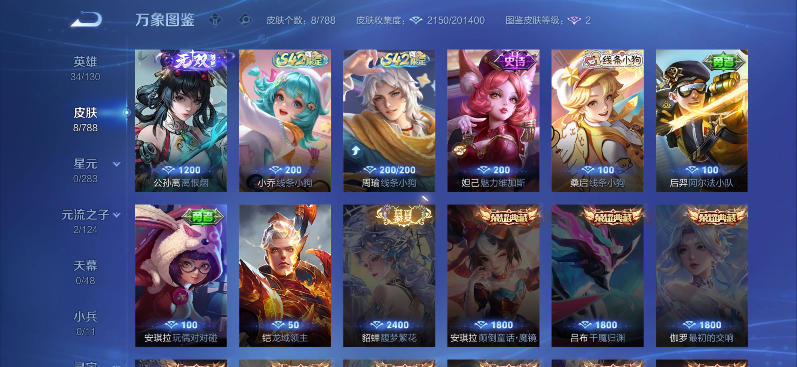 【史诗皮肤】:周瑜线条小狗,小乔线条小狗,妲己魅力维加斯