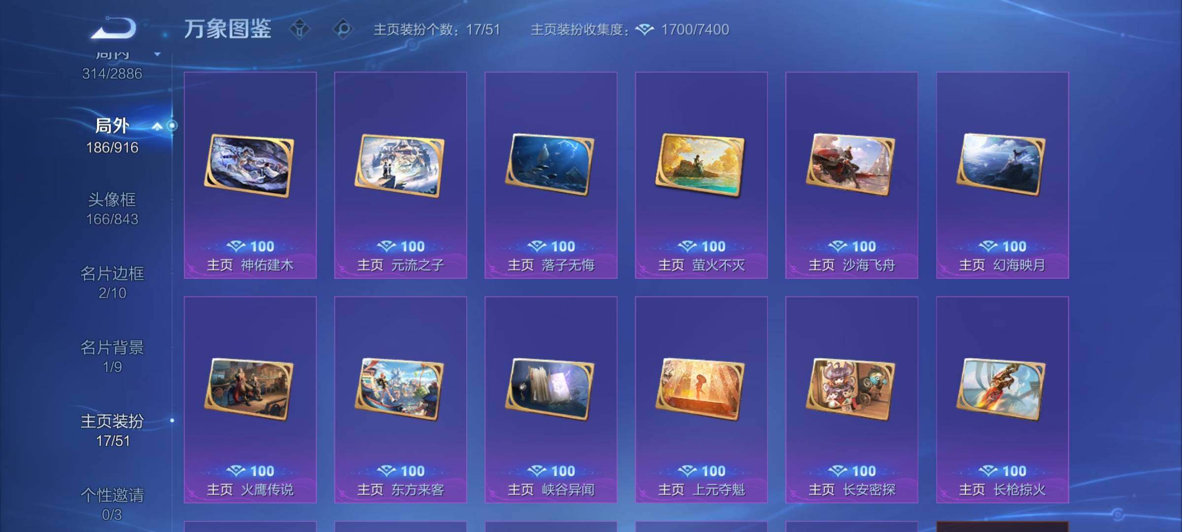 【赛季限定】:弈星混沌棋,明世隐疑决卦,老夫子醍醐杖,鬼谷子原初探秘者,狄仁杰万华元夜,程咬金演武夺筹,钟馗驱傩正仪,苏烈千军破阵,达摩沙漠行僧,兰陵王金庭之子,沈梦溪大漠名商,李元芳云中旅人,桑启海盐诗旅,裴擒虎擒涛扼浪,鲁班大师探海日志,张良古海寻踪,鬼谷子天穹祈灯,刘邦剑破天穹,姜子牙天穹之誓,东皇太一噬灭天穹,太乙真人谧流熔炉,钟馗虚灵犬护,甄姬逆浪荇歌,亚瑟荣光之誓,百里玄策原初追逐者,雅典娜黎明之约,梦奇顽趣,蒙恬荣光圣徽,牛魔星界战将,项羽九幽镇关