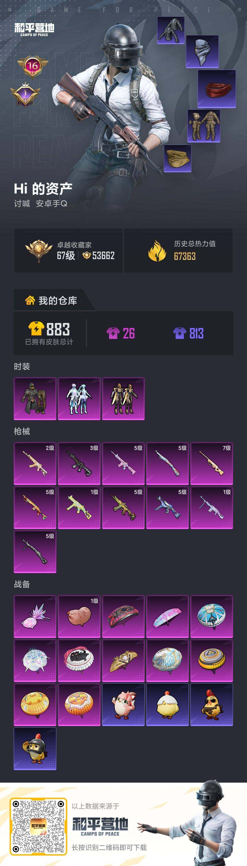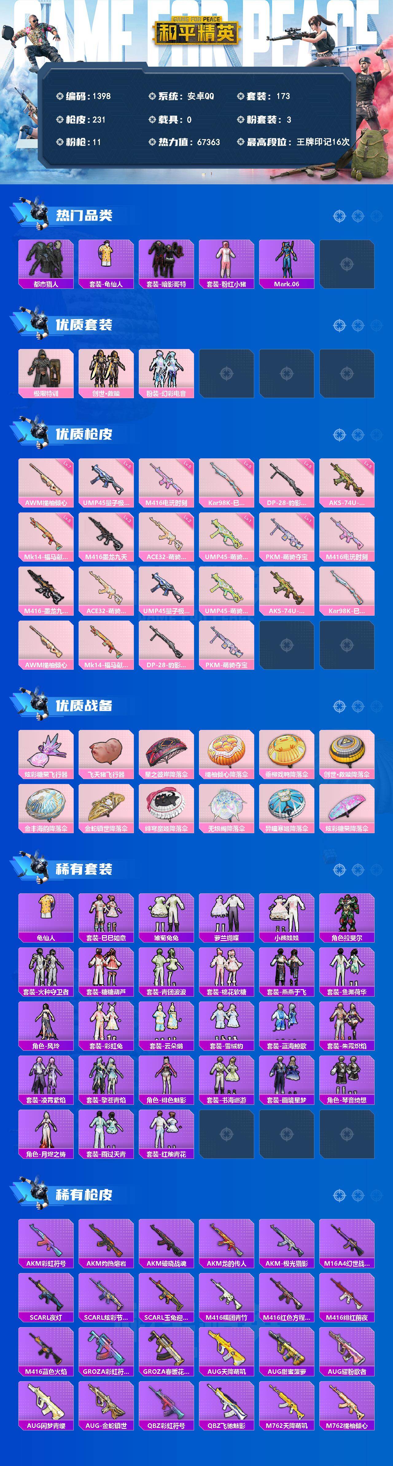 PX_2554602-【Mark.06,11粉枪,枪皮号!!】安卓,手Q-3粉装-11特效枪-0载具-2粉色飞行器-67363热力值-16王牌印记-173套装-231枪皮