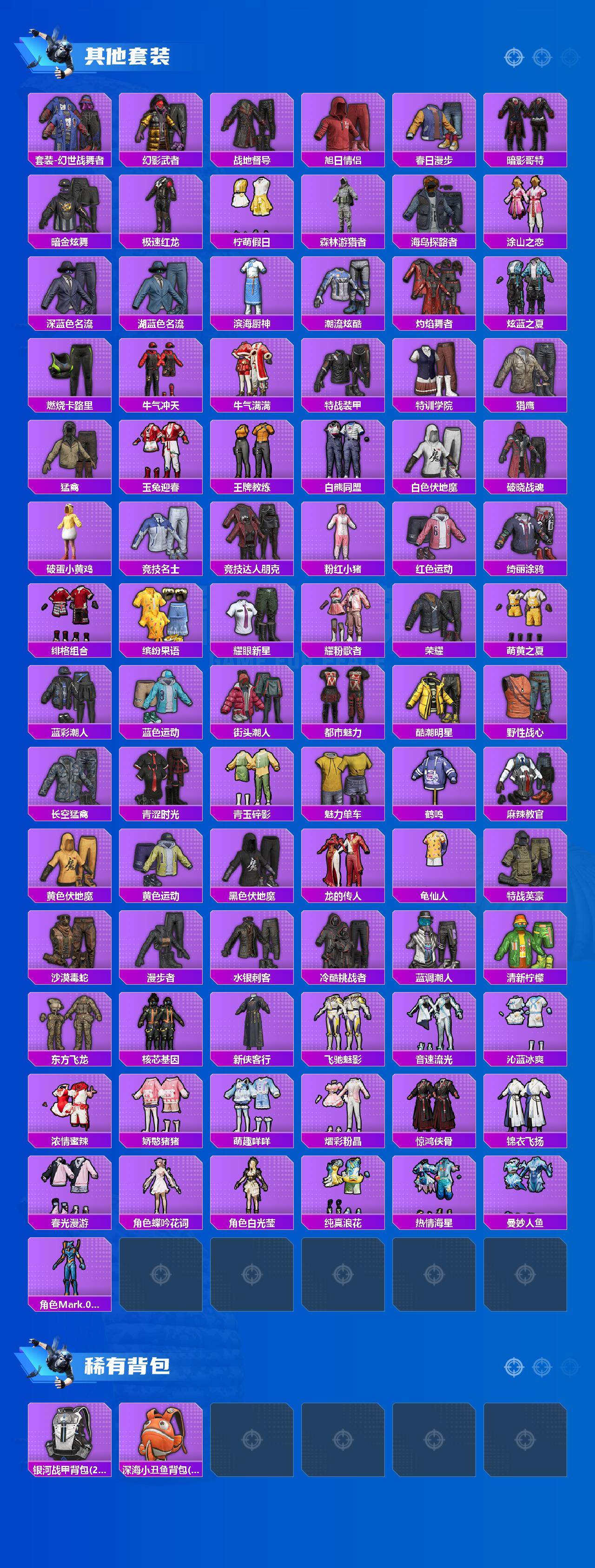 【稀有背包】:银河战甲背包(2级),深海小丑鱼背包(3级)