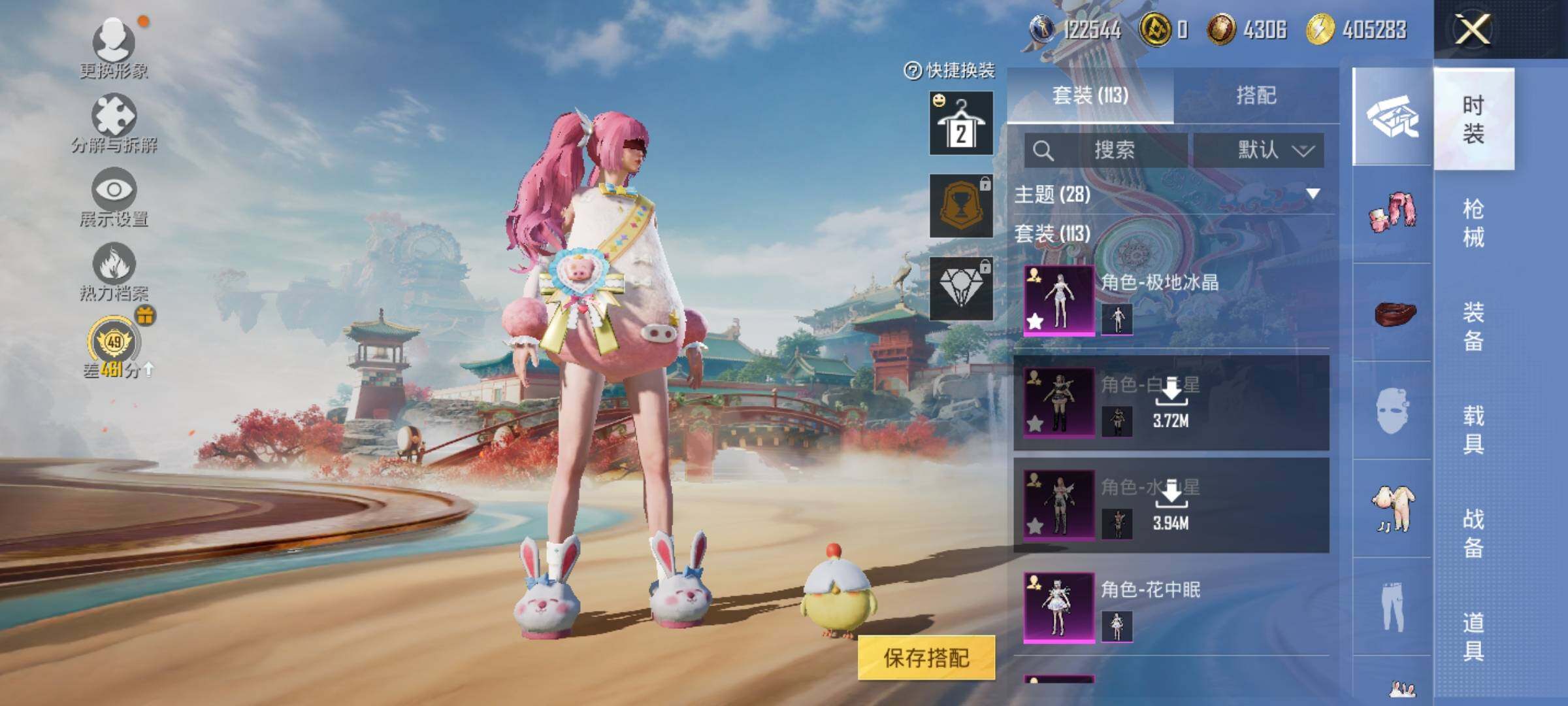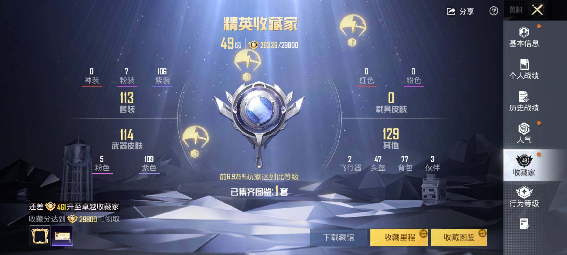 【粉色枪皮等级】:蜜獾-荧海星豚(七级),ACE32-萌骑漫游(四级),Kar98K-巳巳如意(五级),Mk14-福马献瑞(一级),DP-28-豹影疾电(五级)