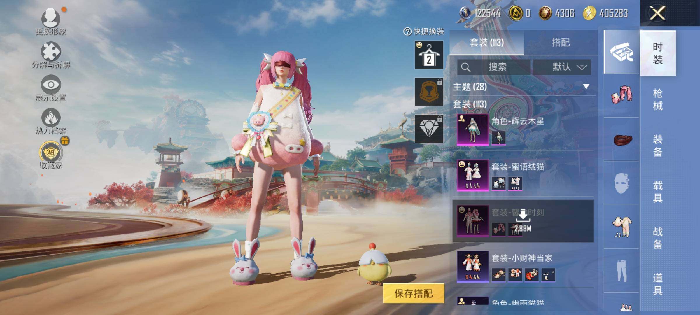 【粉色套装】:粉装-馨动时刻,角色-白兰星,角色-水仙星,粉装-蜜语绒猫,角色-辉云木星,角色-花中眠,角色-极地冰晶