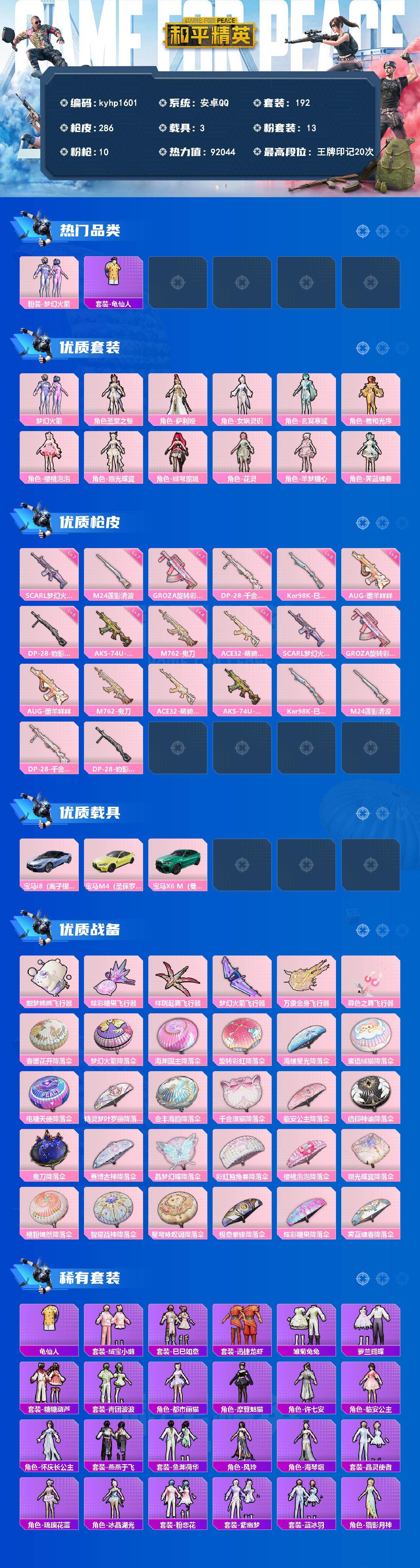 PX_2554737--13粉装-10特效枪-3载具-6粉色飞行器-92044热力值-20王牌印记-192套装-286枪皮