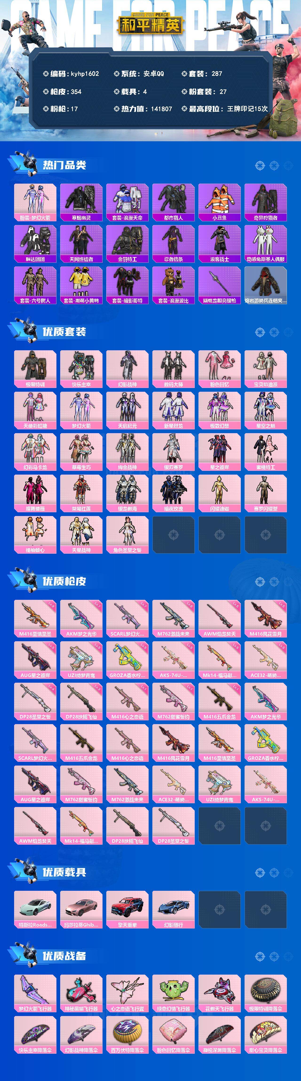 PX_2554744--27粉装-17特效枪-4载具-5粉色飞行器-141807热力值-15王牌印记-287套装-354枪皮