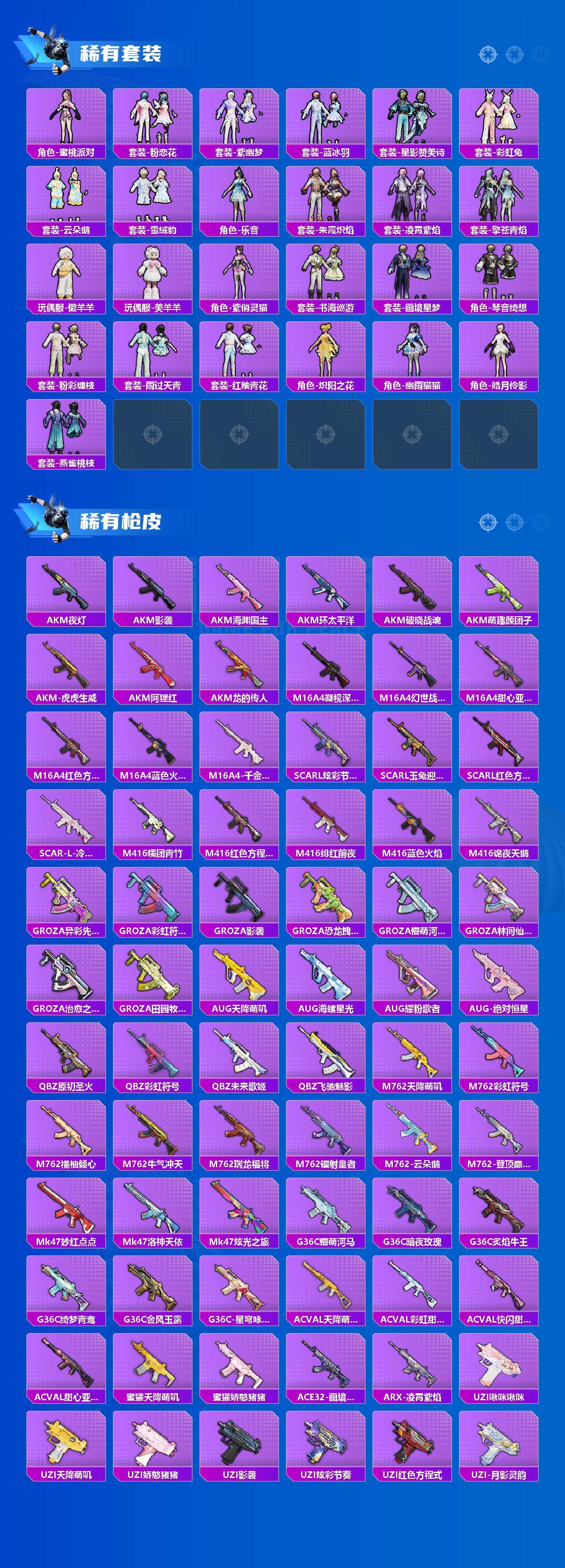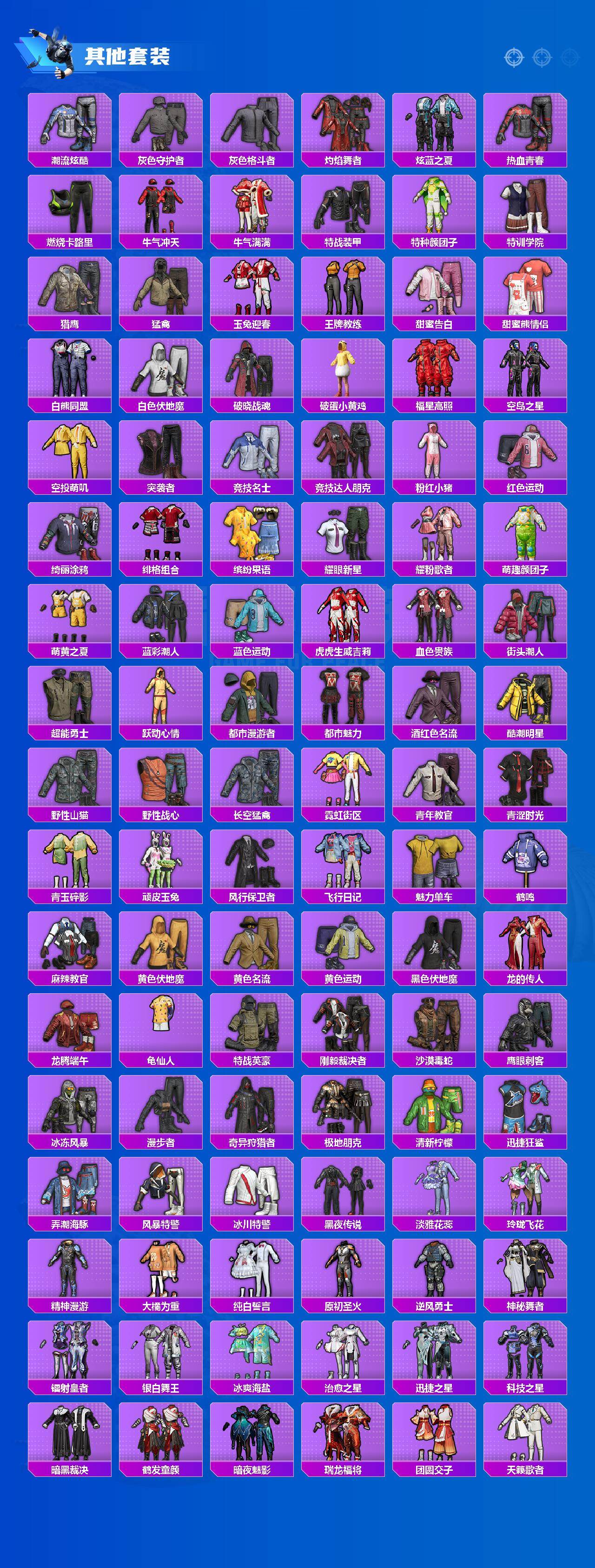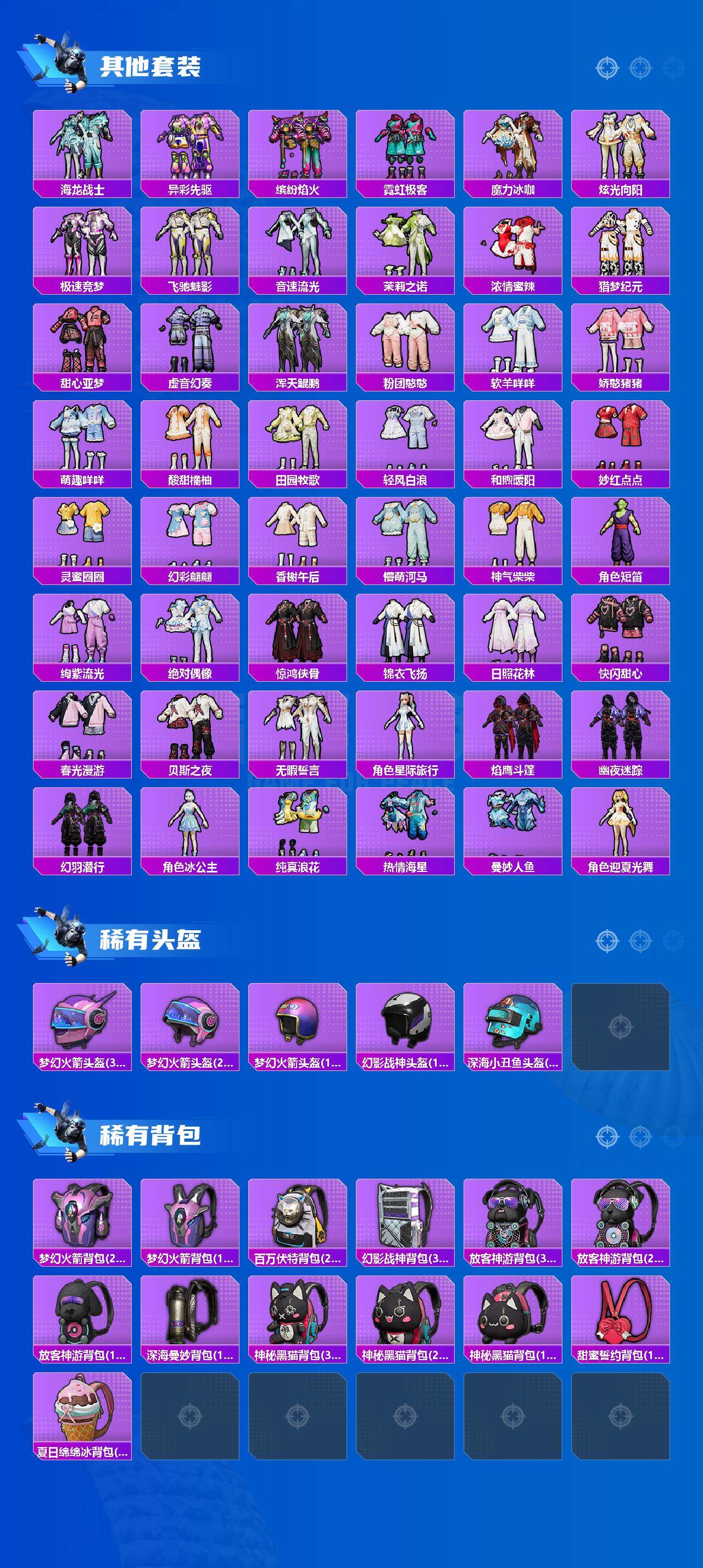 【粉色套装】:角色-绝对恒星,粉装-梦幻火箭,粉装-冰霜白皇,粉装-山涧鹿灵,粉装-蓝莓炮弹,粉装-橘柚倾心,粉装-寒光使者,粉装-第五大道,