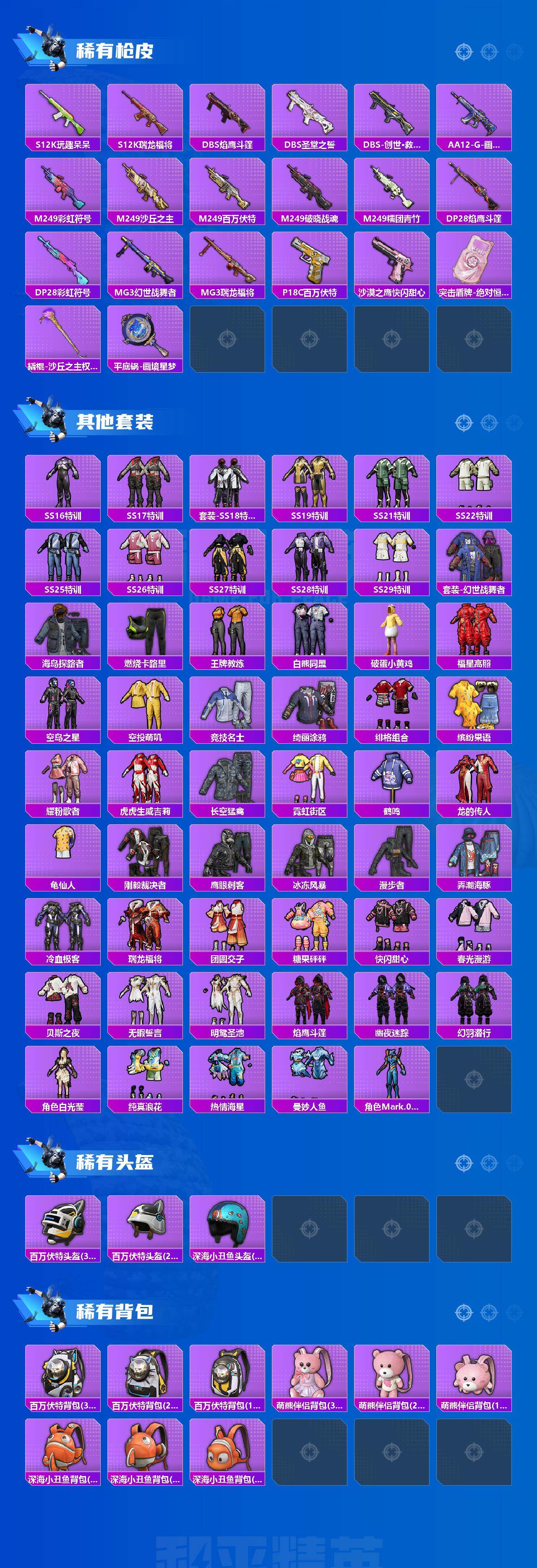 PX_2554829--1神装-4粉装-5特效枪-0载具-3粉色飞行器-50561热力值-9王牌印记-89套装-132枪皮