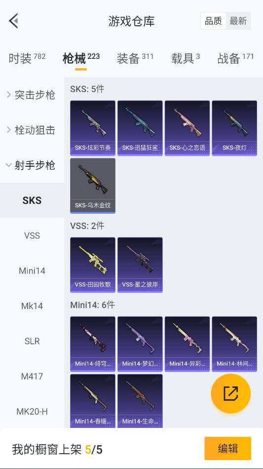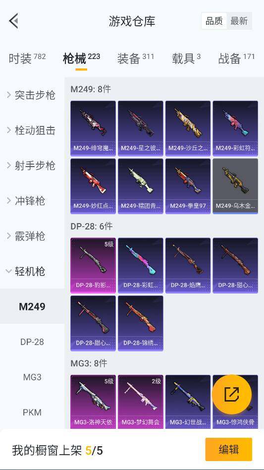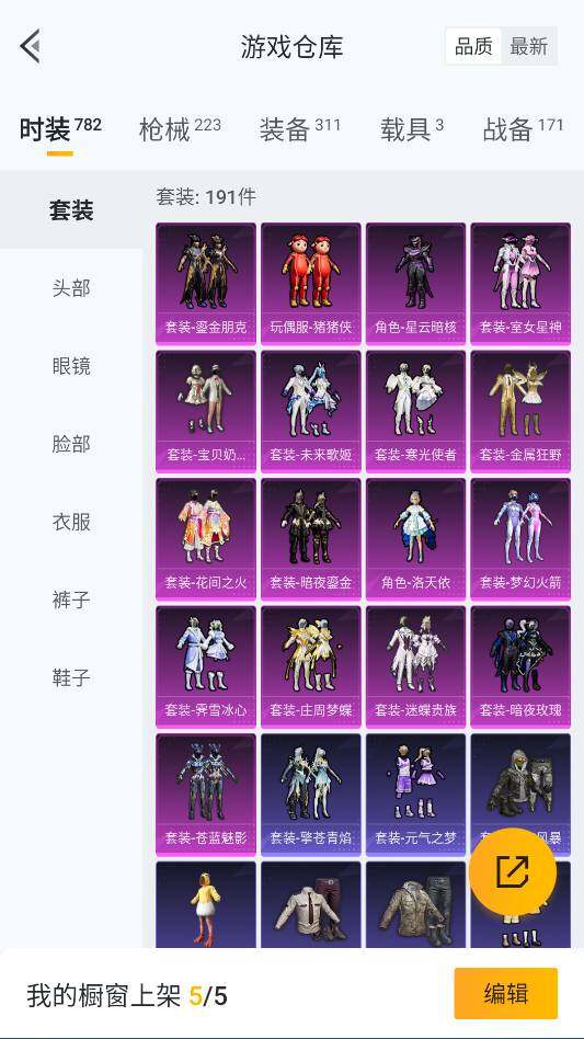 PX_2531655-时装数:,782,载具数:,3,枪械数:,223,战备数:,171,热门装扮:,奇异狩猎者,梦幻火箭(新101),呆萌铁蟹,宝贝奶油派,浪漫波比,梦魇先生,金属狂野,鹰眼刺客,苍蓝魅影,花间之火,迷蝶贵族,暗夜玫瑰,洛天依,庄周梦蝶,寒光使者,霁雪冰心,激萌罗小黑,奇迹天团,蔷薇魔法师,暗夜鎏金,未来歌姬,室女星神,星云暗核,猪猪侠,鎏金朋克,载具:,玛莎拉蒂Ghibli(粉),合金龙骨(绿),空客H135-蔚蓝之翼,玛莎拉蒂MC20(星石白),稀有枪皮:,七级AKM-梦之光华,七级M416-心之恋语,五级SCAR-L-纯梦嫁纱,五级MG3-洛神天依,五级DP-28-豹影疾电,四级MK20-H-海螺星光,四级Vector-环太平洋,四级Kar98K-巳巳如意,三级M24-镜域双华,二级MG3-梦幻舞会,一级Kar98K-未来歌姬,一级SPAS-12-音爆索尼克,一级AKM-星际浪客