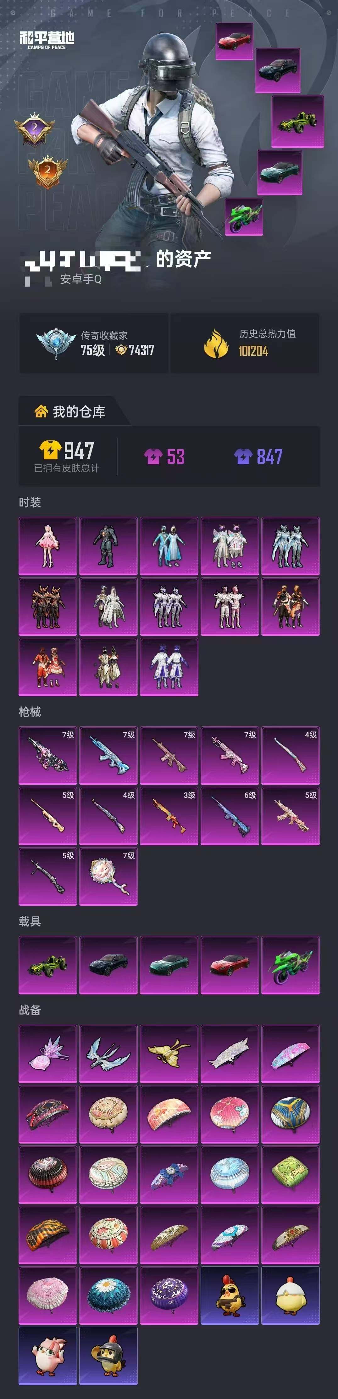 PX_2551966-【钱包无法注销,不影响账号安全和游戏正常】时装数:,607,载具数:,5,枪械数:,240,战备数:,172,热门装扮:,奇异狩猎者,深海小丑鱼,梦魇先生,鹰眼刺客,锦绣火鲤,冰霜白皇,新星烈龙,扶摇飞仙,雪国幻梦,山涧鹿灵,烈焰拳霸,海渊国主,紫电风暴,赤焰黑爵,冷魅冰骑,复仇流浪者,浪客战士,银碳小老虎,暗夜魅影,樱桃泡泡,载具:,双人摩托-双刃魅影(绿),阿斯顿·马丁DBS(红),阿斯顿·马丁DBS(绿),阿斯顿·马丁DBX(蓝),合金龙骨(绿),稀有枪皮:,M416-心之恋语(七级),AUG-罪夜之冕(七级),M762-甜蜜誓约(七级),M762-冷魅冰骑(七级),AKS-74U-星穹咏叹调(五级),Kar98K-伏魔团(四级),Kar98K-巳巳如意(四级),AWM-橘柚倾心(五级),Mini14-荧光虫舞(六级),Mk14-福马献瑞(三级),DP-28-豹影疾电(五级),平底锅-林间仙鹿(七级)