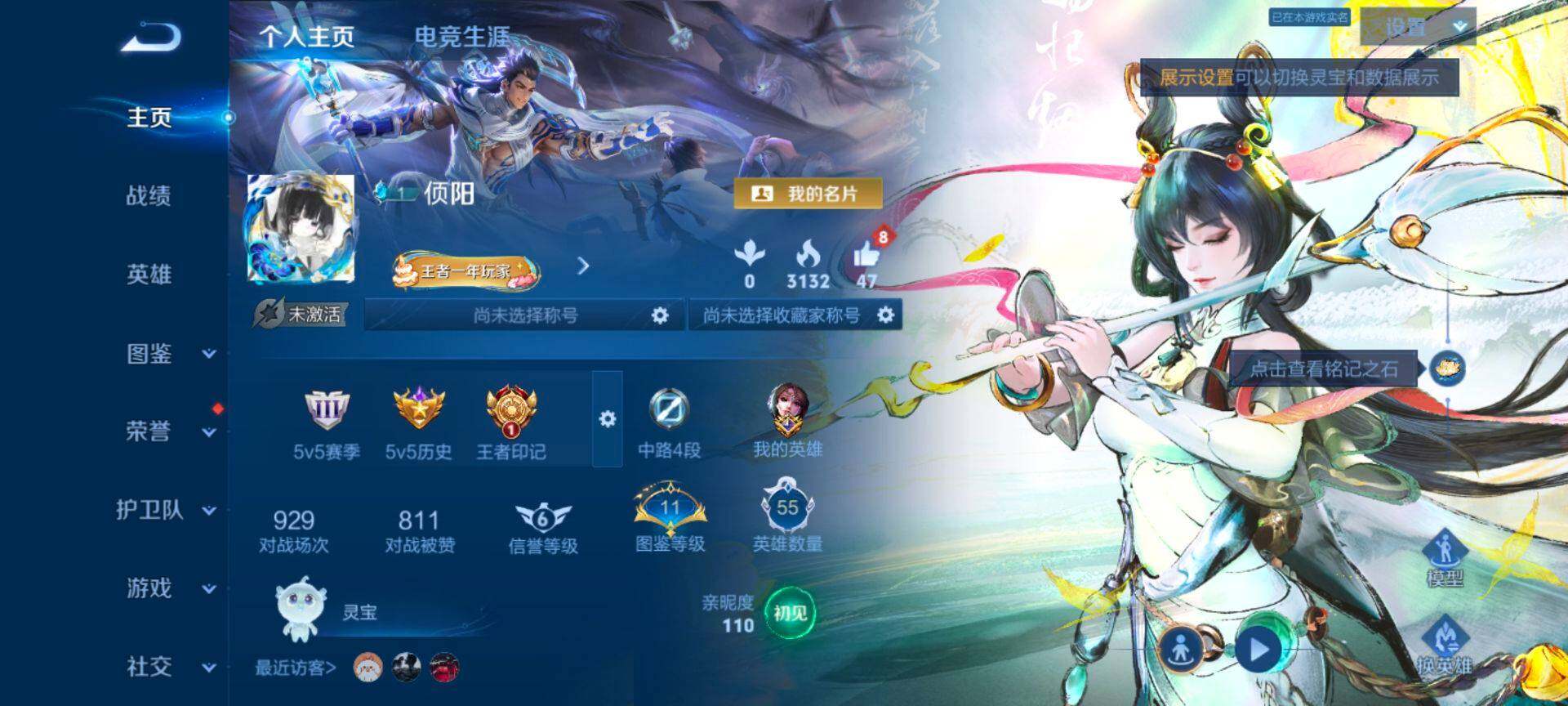 W10022【安卓区V8】可二次实名,英雄104,皮肤161,典藏:李白鸣剑.曳