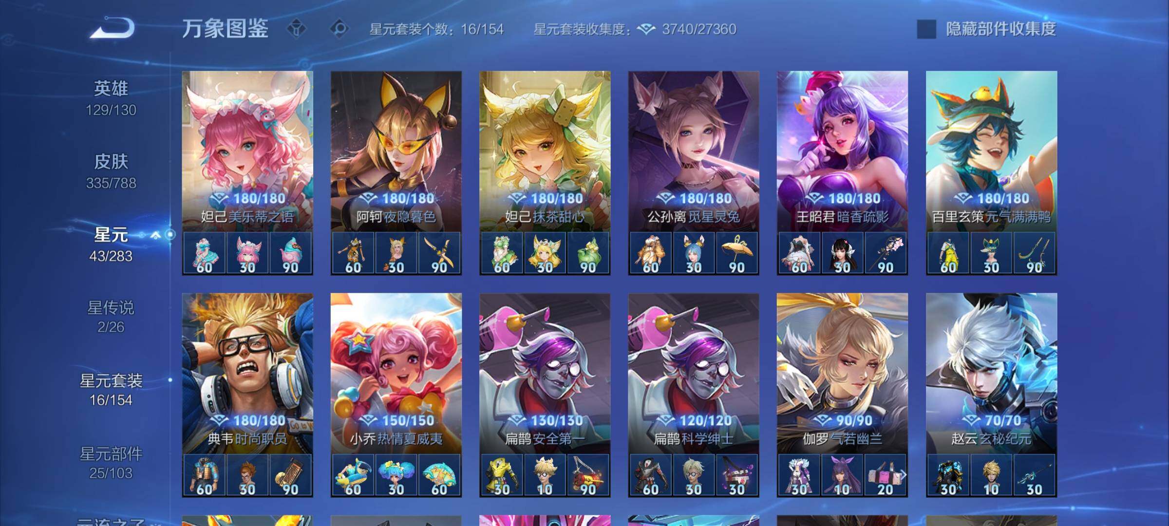 【其他皮肤】:影百相守梦,兰陵王雾影缉谜,鲁班七号班班快跑,虞姬溯影追猎,蚩奼极光幻客,曹操逐霄之志,艾琳鹤鸣心笺,孙权径山谋武,亚瑟荣光之誓,哪吒罗小黑战记,莱西奥踏浪烽翎,庄周锦麟游梦,甄姬逆浪荇歌,白起死霸装,姬小满小满鸭,露娜命运加冕,阿古朵布丁狗之约,张良灵野札记,苏烈春野闲踪,钟馗虚灵犬护,戈娅玫蓝誓约,明世隐景韶洛都,姜子牙星梦巡礼,西施雪境奇遇,影魅影绮裳,典韦铁骨偃魂,太乙真人谧流熔炉,苍苍林狼骑,亚瑟动物派对,东皇太一噬灭天穹,孙悟空神迹守卫,周瑜熔金海岸,姜子牙天穹之誓,刘邦剑破天穹,沈梦溪龙舞盛年,廉颇功夫炙烤,鬼谷子天穹祈灯,兰陵王幻夜行动,张良古海寻踪,李元芳妄想特派,姬小满零食大作战,鲁班大师探海日志,莱西奥西部游侠,太乙真人劲辣红锅,裴擒虎擒涛扼浪,赵怀真太极少年,白起乐园追猎者,牛魔牛运亨通,猪八戒潮玩探月行,海月幻泉雾影,嫦娥暖冬兔眠,桑启海盐诗旅,李元芳云中旅人,蒙恬蔚蓝守将,蒙犽胡桃狂想曲,沈梦溪大漠名商,王昭君午后时光,刘禅唤灵魔甲,兰陵王金庭之子,刘邦虎啸剑宗,程咬金无双福将,达摩沙漠行僧,典韦铁甲之心,苏烈千军破阵,鲁班大师乓乓大师,墨子神迹守卫,钟馗驱傩正仪,张良缤纷绘卷,程咬金演武夺筹,露娜瓷语鉴心,杨戬次元傲视,刘禅秘密基地,狄仁杰万华元夜,鬼谷子原初探秘者,廉颇无尽征程,猪八戒西部大镖客,老夫子醍醐杖,盾山圆桌骑士,刘邦夺宝奇兵,明世隐疑决卦,鲁班七号黑桃队长,哪吒次元突破,弈星混沌棋,沈梦溪星空之诺,周瑜赤莲之焰,夏侯惇朔风刀,姜子牙炽热元素使,沈梦溪鲨炮海盗猫,孙膑归虚梦演,盾山御銮,吕布野性能量,小乔丁香结,牛魔御旌,庄周奇妙博物学,明世隐虹云星官,米莱狄御霄,项羽科学大爆炸,大乔守护之力,苏烈坚韧之力,鬼谷子幻乐之宴,李白敏锐之力,诸葛亮掌控之力,典韦穷奇,孙尚香沉稳之力,牛魔制霸全明星,老夫子功夫老勺,狂铁命运角斗场,王昭君幻想奇妙夜,宫本武藏霸王丸,钟无艳海滩丽影,墨子进击墨子号,关羽龙腾万里,刘备汉昭烈帝,刘备纽约教父,狄仁杰阴阳师,后羿阿尔法小队,宫本武藏万象初新,刘备万事如意,甄姬花好人间,张飞五福同心,花木兰兔女郎,达摩拳王,亚瑟死亡骑士,典韦黄金武士,妲己少女阿狸,姜子牙时尚教父,安琪拉玩偶对对碰,宫本武藏未来纪元,扁鹊救世之瞳,扁鹊化身博士,武则天东方不败,牛魔西部大镖客,白起白色死神,艾琳女武神,赵云忍炎影,赵云白执事,达摩大发明家,露娜哥特玫瑰,韩信街头霸王,韩信教廷特使,项羽海滩派对,桑启画中游,暃碧珀绯影,金蝉前尘,云缨赤焰之缨,司空震启蛰,澜孤猎,阿古朵熊喵少女,蒙恬秩序猎龙将,镜冰刃幻境,蒙犽归虚梦演,鲁班大师归虚梦演,西施归虚梦演,马超幸存者,曜归虚梦演,云中君荷鲁斯之眼,瑶森,盘古创世神祝,上官婉儿修竹墨客,李信灼热之刃,沈梦溪棒球奇才,伽罗花见巫女,盾山极冰防御线,司马懿魇语军师,孙策海之征途,元歌午夜歌剧院,弈星踏雪寻梅,裴擒虎街头旋风,杨玉环霓裳曲,公孙离花间舞,女娲尼罗河女神,梦奇美梦成真,苏烈爱与和平,百里玄策威尼斯狂欢,百里守约绝影神枪,铠龙域领主,干将莫邪第七人偶,东皇太一东海龙王,大乔伊势巫女,黄忠芝加哥教父,诸葛亮星航指挥官,苍维京掠夺者,马可波罗激情绿茵,雅典娜战争女神,夏侯惇战争骑士,虞姬加勒比小姐,刘邦圣殿之光,李元芳特种部队,李白范海辛,兰陵王隐刃,刘禅英喵野望,后羿精灵王,周瑜海军大将,孙悟空西部大镖客,小乔万圣前夜,张良一千零一夜,曹操死神来了,王昭君精灵公主,花木兰剑舞者,貂蝉异域舞娘,钟无艳生化警戒,项羽帝国元帅,高渐离金属狂潮,鲁班七号木偶奇遇记,鲁班七号福禄兄弟