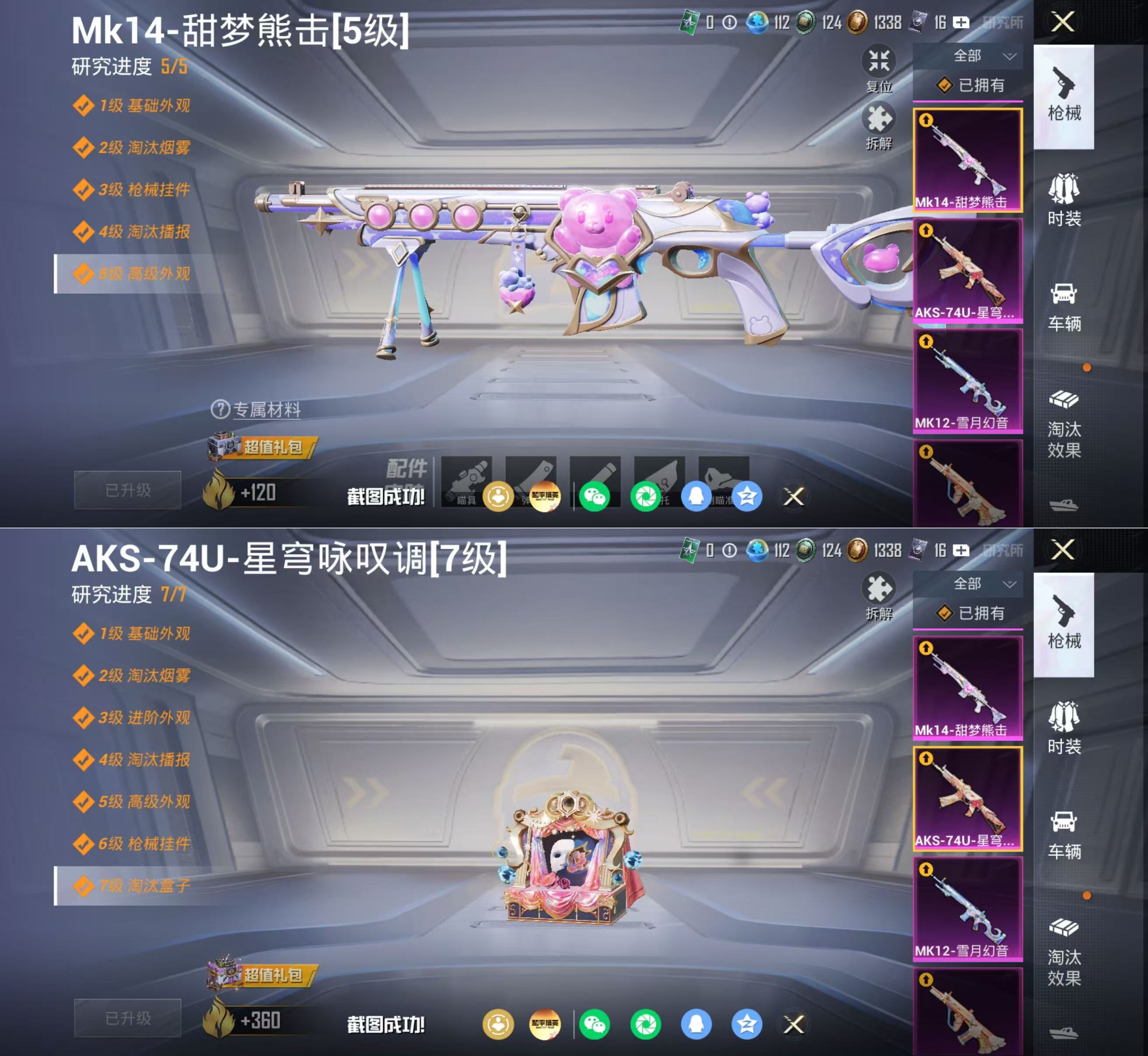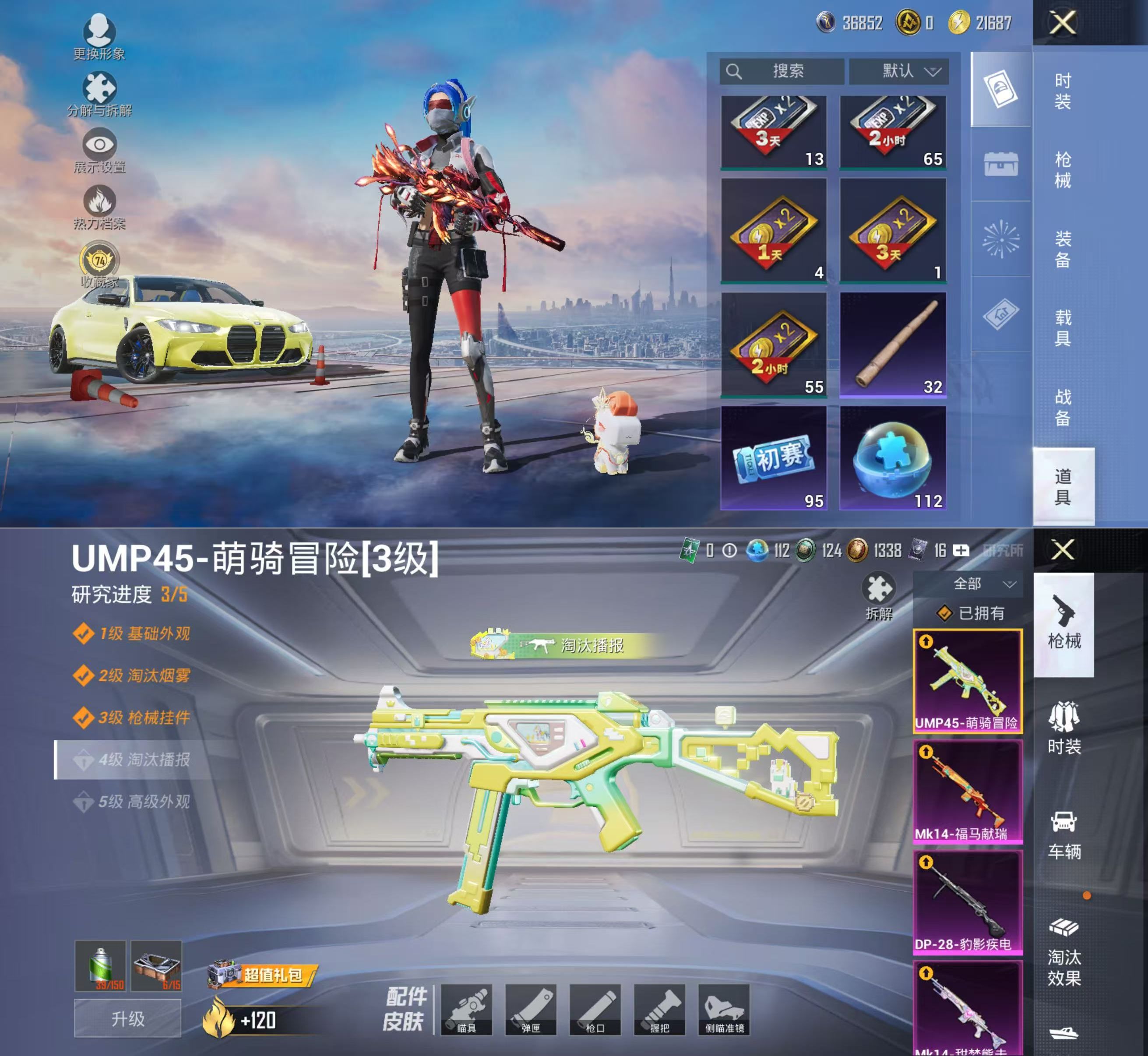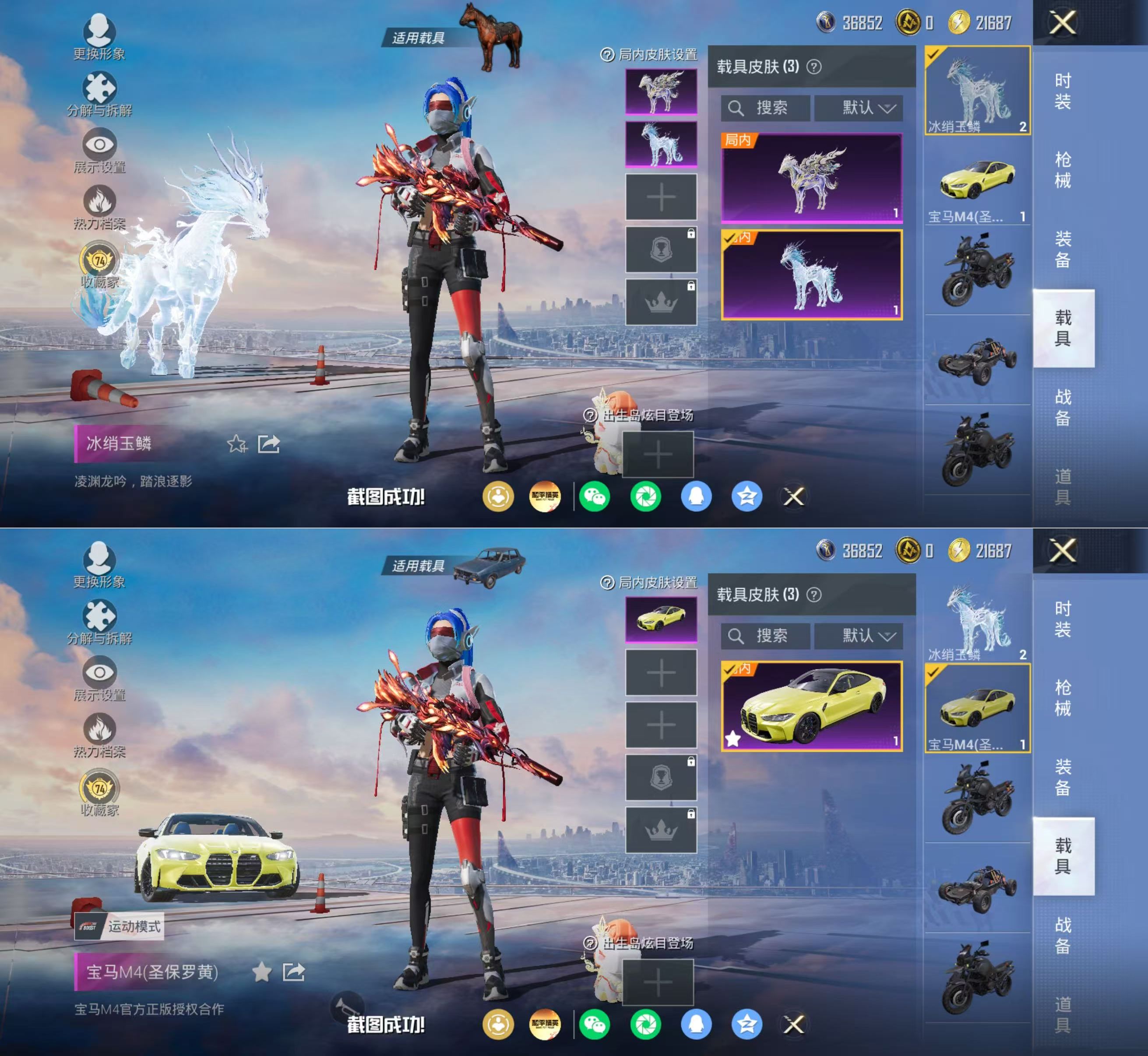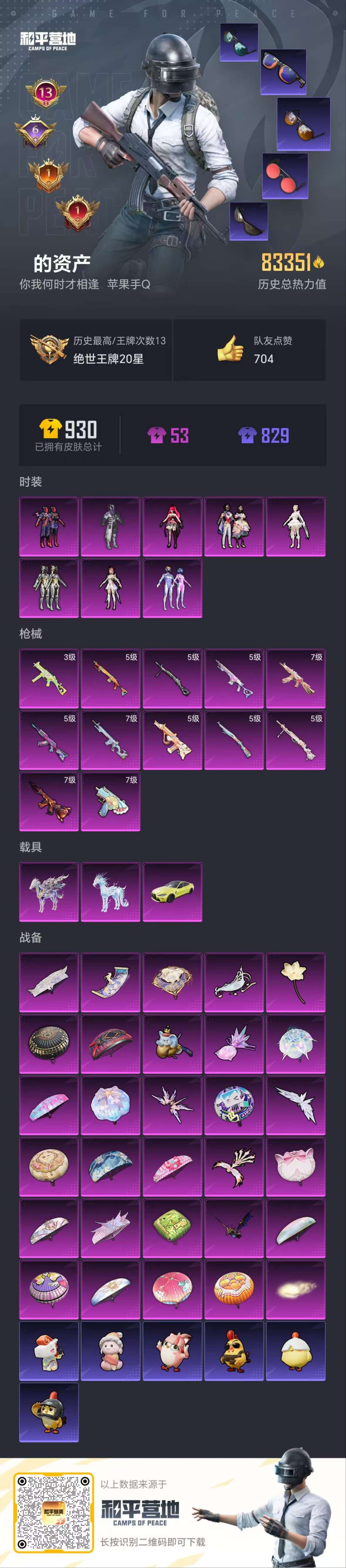 PX_2555297-载具-8粉装-12特效枪,木乃伊,梦幻火箭,都市,暗夜之虎,金鞋,JDG追光战队服,小丑鱼,红眼罩,忍者信条,粉熊背包一套】苹果手Q-3载具-8粉装-12特效枪-161套装-253枪皮-13王牌印记-不朽星钻Ⅲ-83351热力值【3载具】凌风神骏,冰绡玉鳞,宝马M4(圣保罗黄)【8粉装】梦幻火箭,星之彼岸,绚金战神,角色-绯穹魔姬,角色-圣堂之誓,星穹咏叹调,角色-千金淑猫,幻影战神【1