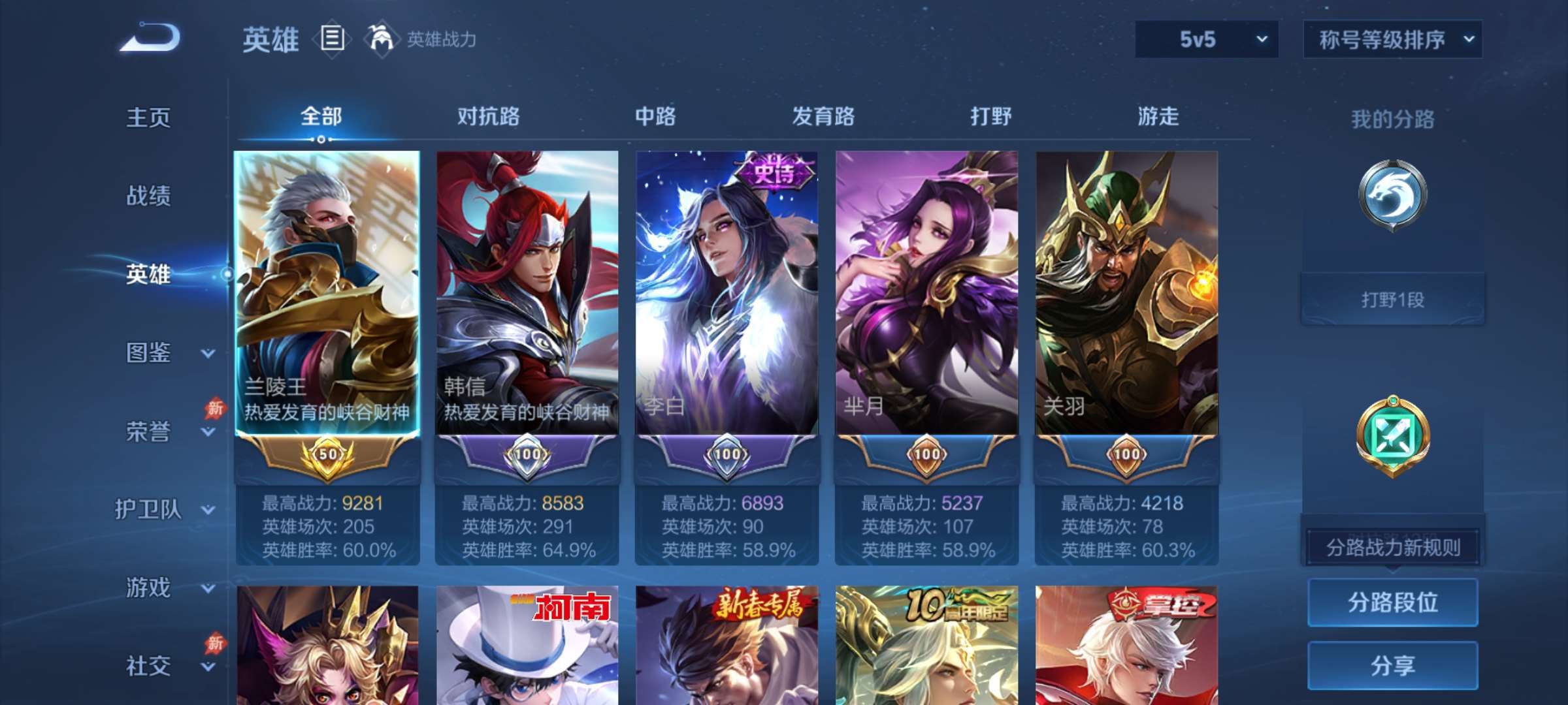 W10022【安卓区V8】可二次实名,英雄104,皮肤161,典藏:李白鸣剑.曳