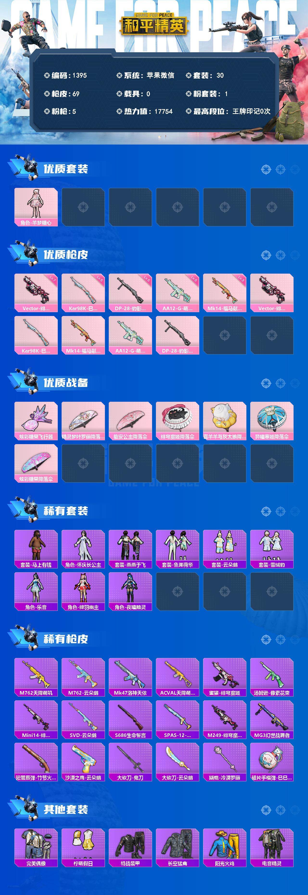 PX_2555939-【羊梦糖心Vector-绯穹魔姬(七级),AA12-G-萌骑幻想(五级)】苹果,微信-1粉装-5特效枪-0载具-1粉色飞行器-17754热力值-2王牌印记-30套装-69枪皮