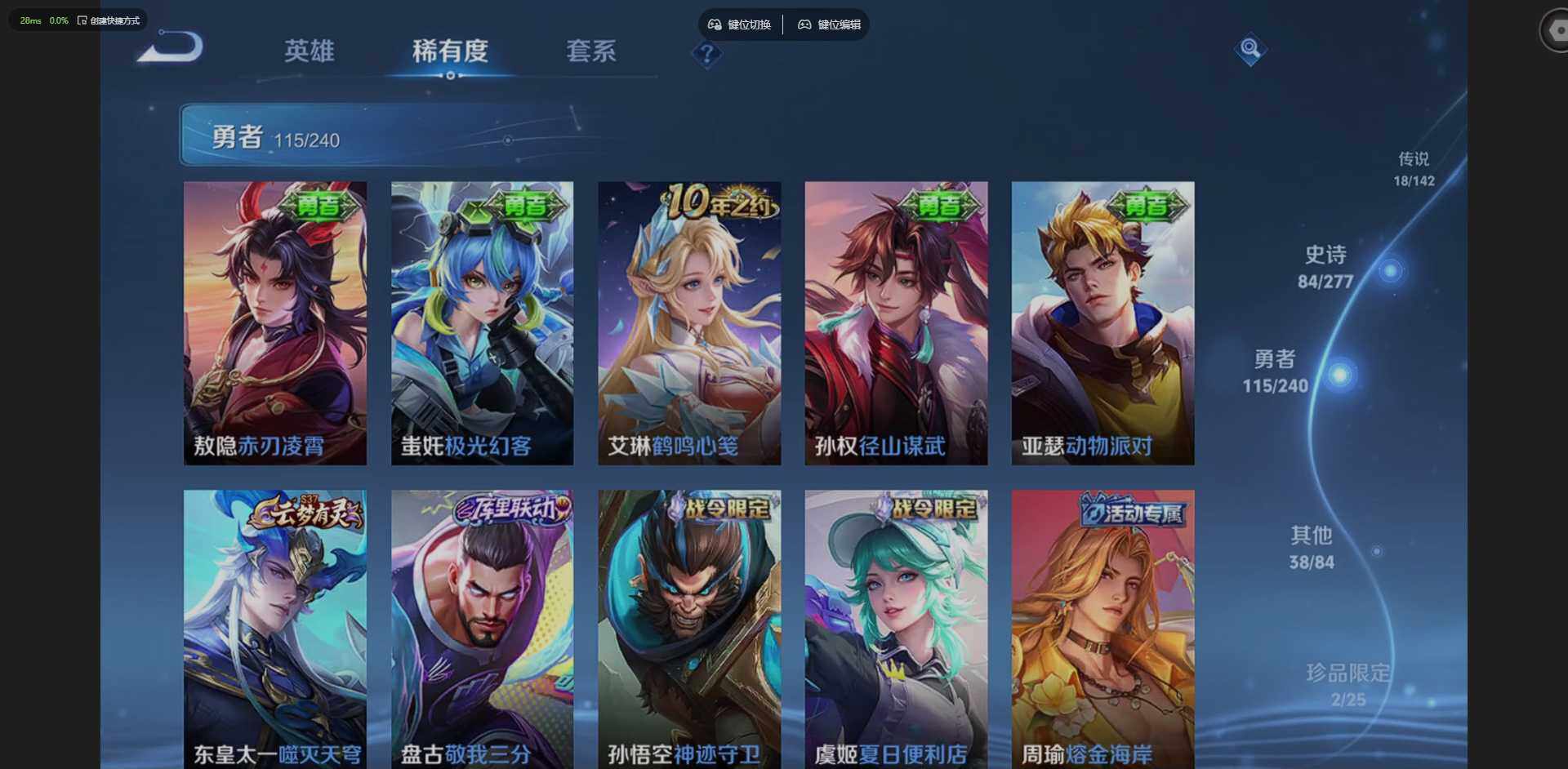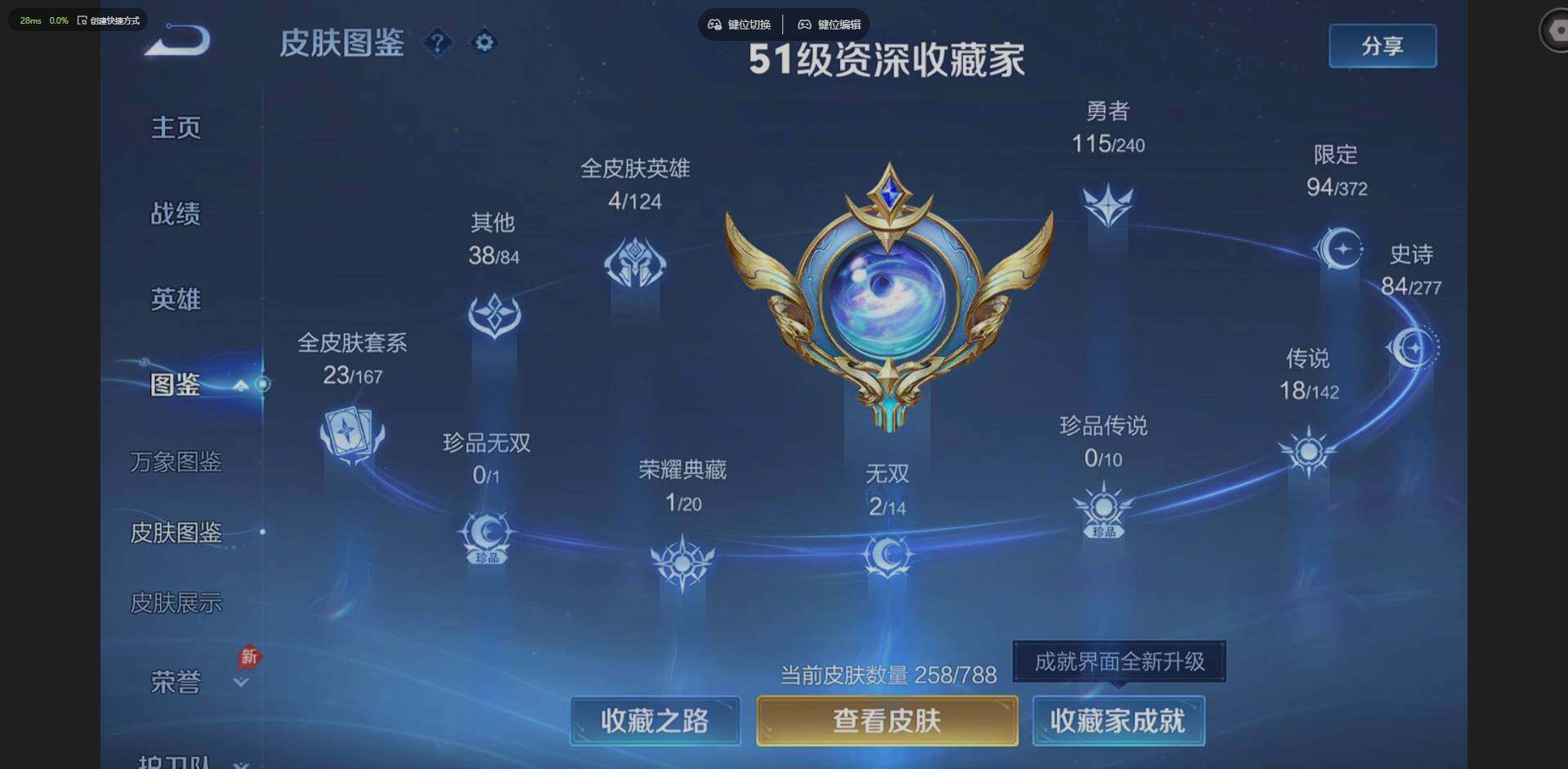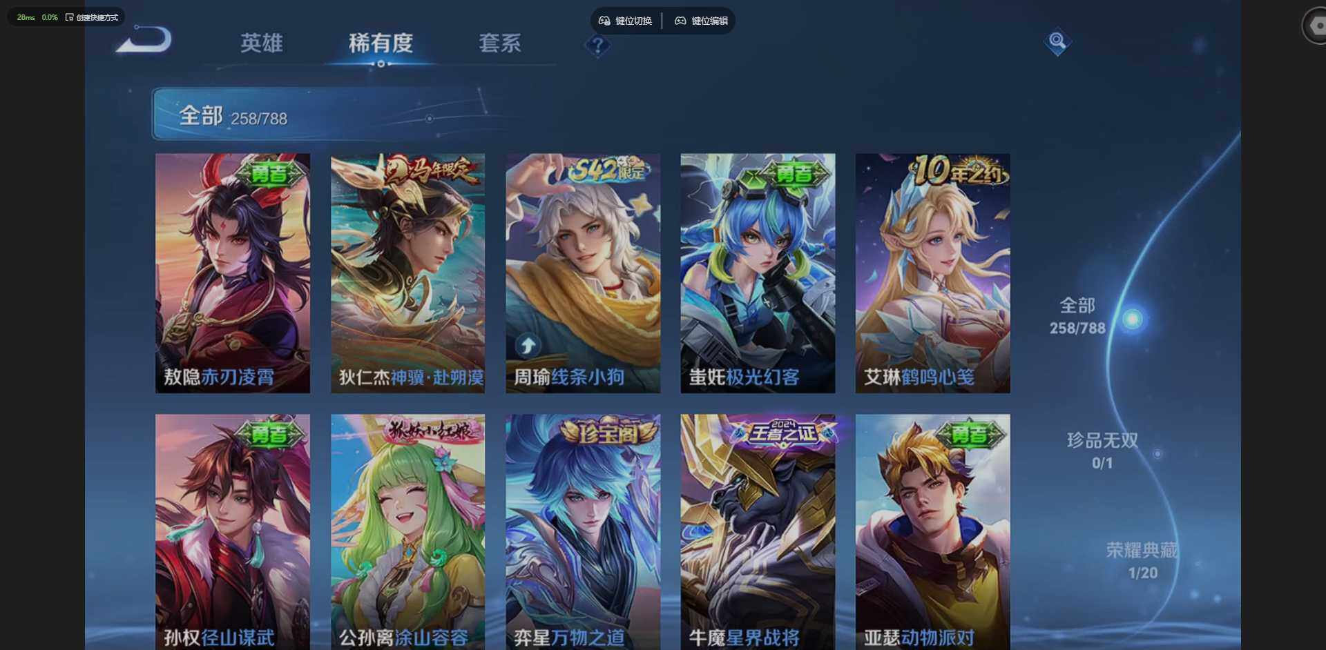 PX_2556306-苹果Q-V8-永恒钻石V段位-129英雄-258皮肤-1典藏皮肤-2无双-18传说-83史诗