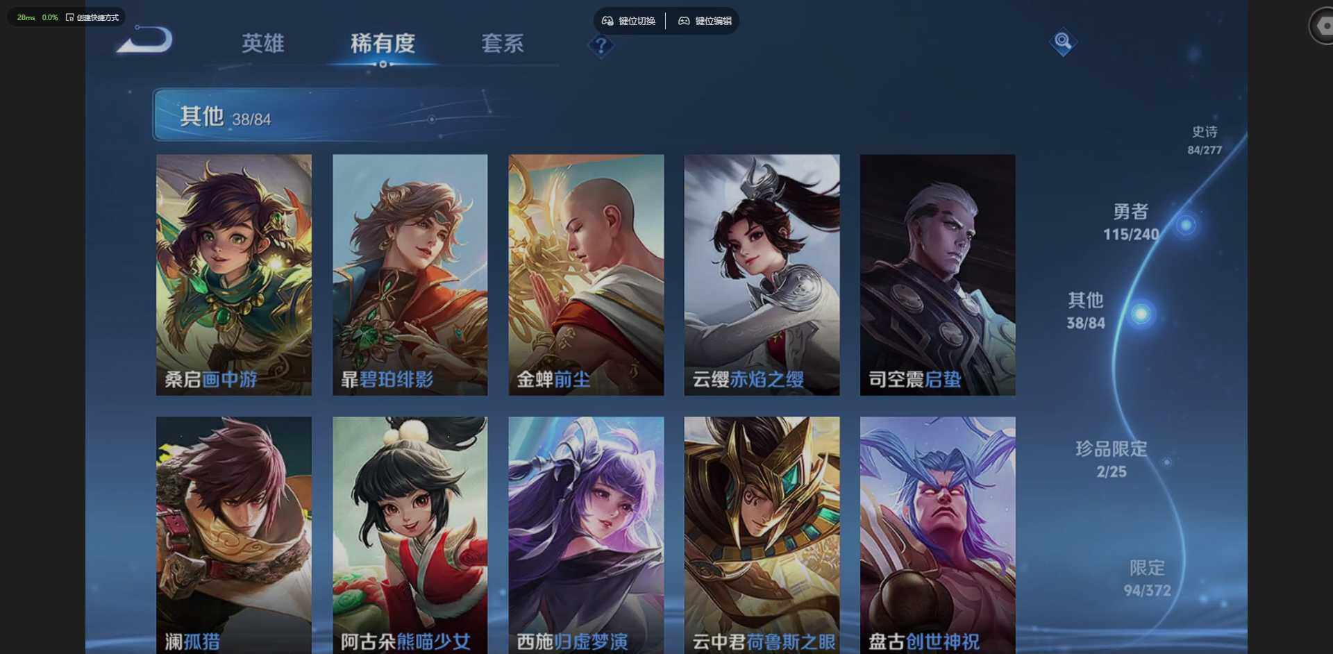 【其他皮肤】:蚩奼极光幻客,艾琳鹤鸣心笺,孙权径山谋武,亚瑟动物派对,东皇太一噬灭天穹,盘古敬我三分,孙悟空神迹守卫,虞姬夏日便利店,周瑜熔金海岸,姜子牙天穹之誓,貂蝉长夏之忆,刘备异域游侠,大司命暗都幽影,项羽苍威无极,盘古经纬探寻者,刘邦剑破天穹,扁鹊无尽旅途,李元芳蔬乡物语,钟无艳春野之旅,沈梦溪龙舞盛年,亚瑟鸿运当头,廉颇功夫炙烤,朵莉亚金色潮汐,嫦娥漠中幻影,海诺时空谍影,妲己灵卜魔法,鬼谷子天穹祈灯,后羿完美运算,曹操决胜大满贯,兰陵王幻夜行动,亚连破局者,海月王牌新星,钟无艳聚星闪耀,张良古海寻踪,艾琳流音漫舞,鲁班大师探海日志,太乙真人劲辣红锅,裴擒虎擒涛扼浪,赵怀真太极少年,白起乐园追猎者,牛魔牛运亨通,猪八戒潮玩探月行,嫦娥暖冬兔眠,桑启海盐诗旅,戈娅危途狂花,李元芳云中旅人,沈梦溪大漠名商,刘禅唤灵魔甲,兰陵王金庭之子,程咬金无双福将,达摩沙漠行僧,典韦铁甲之心,苏烈千军破阵,鲁班大师乓乓大师,墨子神迹守卫,钟馗驱傩正仪,盘古重装意志,张良缤纷绘卷,程咬金演武夺筹,露娜瓷语鉴心,杨戬次元傲视,刘禅秘密基地,亚瑟潮玩骑士王,狄仁杰万华元夜,鬼谷子原初探秘者,廉颇无尽征程,狂铁特工战影,猪八戒西部大镖客,老夫子醍醐杖,盾山圆桌骑士,明世隐疑决卦,哪吒次元突破,弈星混沌棋,姜子牙炽热元素使,沈梦溪鲨炮海盗猫,孙膑归虚梦演,吕布野性能量,小乔丁香结,大乔守护之力,苏烈坚韧之力,鬼谷子幻乐之宴,李白敏锐之力,诸葛亮掌控之力,孙尚香沉稳之力,老夫子功夫老勺,狂铁命运角斗场,王昭君幻想奇妙夜,钟无艳海滩丽影,关羽龙腾万里,刘备汉昭烈帝,高渐离死亡摇滚,狄仁杰阴阳师,后羿阿尔法小队,宫本武藏万象初新,刘备万事如意,甄姬花好人间,张飞五福同心,花木兰兔女郎,达摩拳王,亚瑟死亡骑士,典韦黄金武士,姜子牙时尚教父,孙膑天使之翼,安琪拉玩偶对对碰,扁鹊救世之瞳,扁鹊化身博士,牛魔西部大镖客,白起白色死神,赵云忍炎影,达摩大发明家,露娜哥特玫瑰,韩信街头霸王,韩信教廷特使,项羽海滩派对,桑启画中游,暃碧珀绯影,金蝉前尘,云缨赤焰之缨,司空震启蛰,澜孤猎,阿古朵熊喵少女,西施归虚梦演,云中君荷鲁斯之眼,盘古创世神祝,李信灼热之刃,伽罗花见巫女,司马懿魇语军师,元歌午夜歌剧院,米莱狄精准探案法,弈星踏雪寻梅,裴擒虎街头旋风,杨玉环霓裳曲,公孙离花间舞,明世隐占星师,女娲尼罗河女神,百里守约绝影神枪,干将莫邪第七人偶,大乔伊势巫女,黄忠芝加哥教父,太乙真人圆桌骑士,杨戬埃及法老,苍维京掠夺者,雅典娜战争女神,李白范海辛,周瑜海军大将,张良一千零一夜,狄仁杰锦衣卫,老夫子潮流仙人,花木兰剑舞者,貂蝉异域舞娘,钟无艳生化警戒,鲁班七号福禄兄弟
