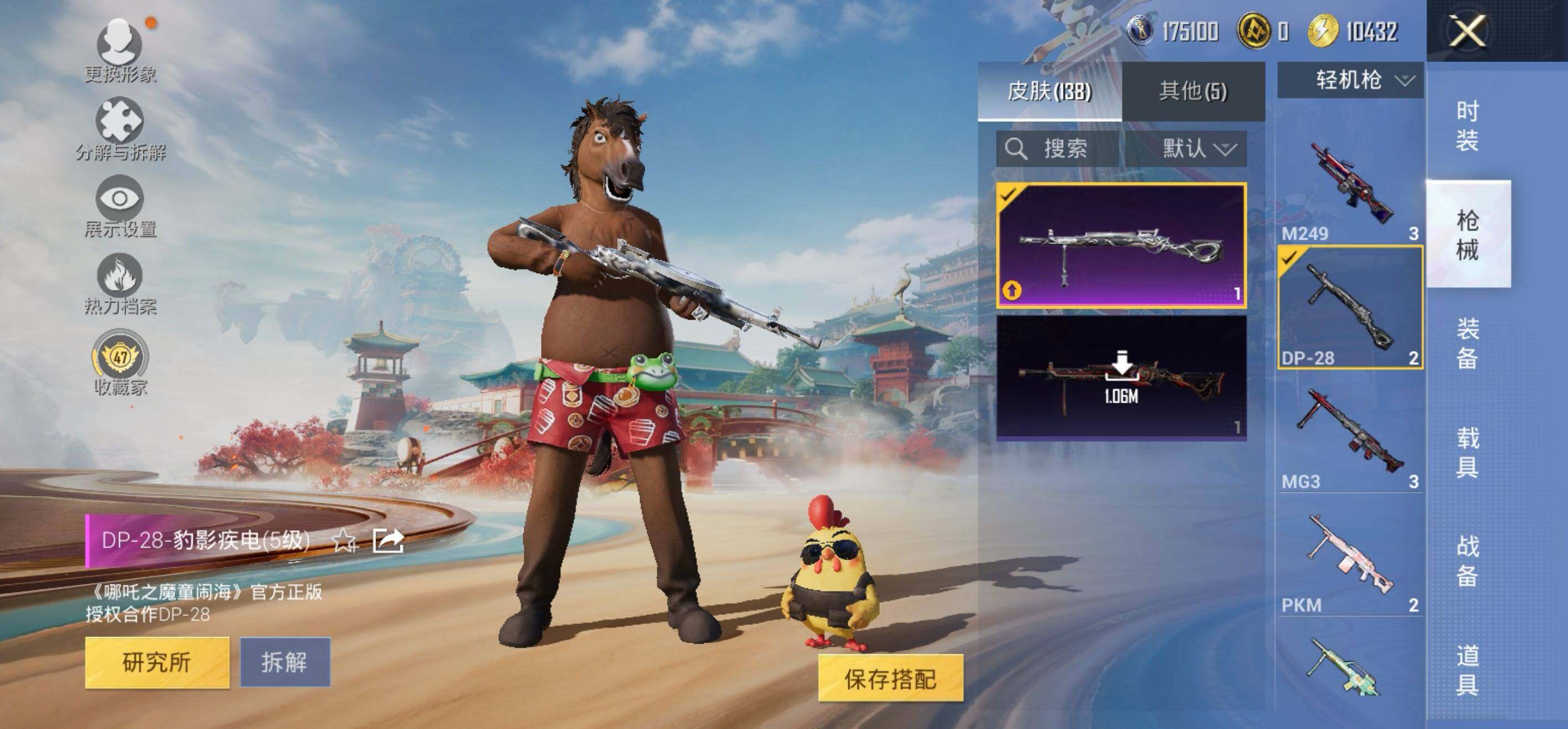 【粉色枪皮等级】:UMP45-萌骑冒险(五级),Kar98K-巳巳如意(五级),Mk14-福马献瑞(五级),DP-28-豹影疾电(五级)