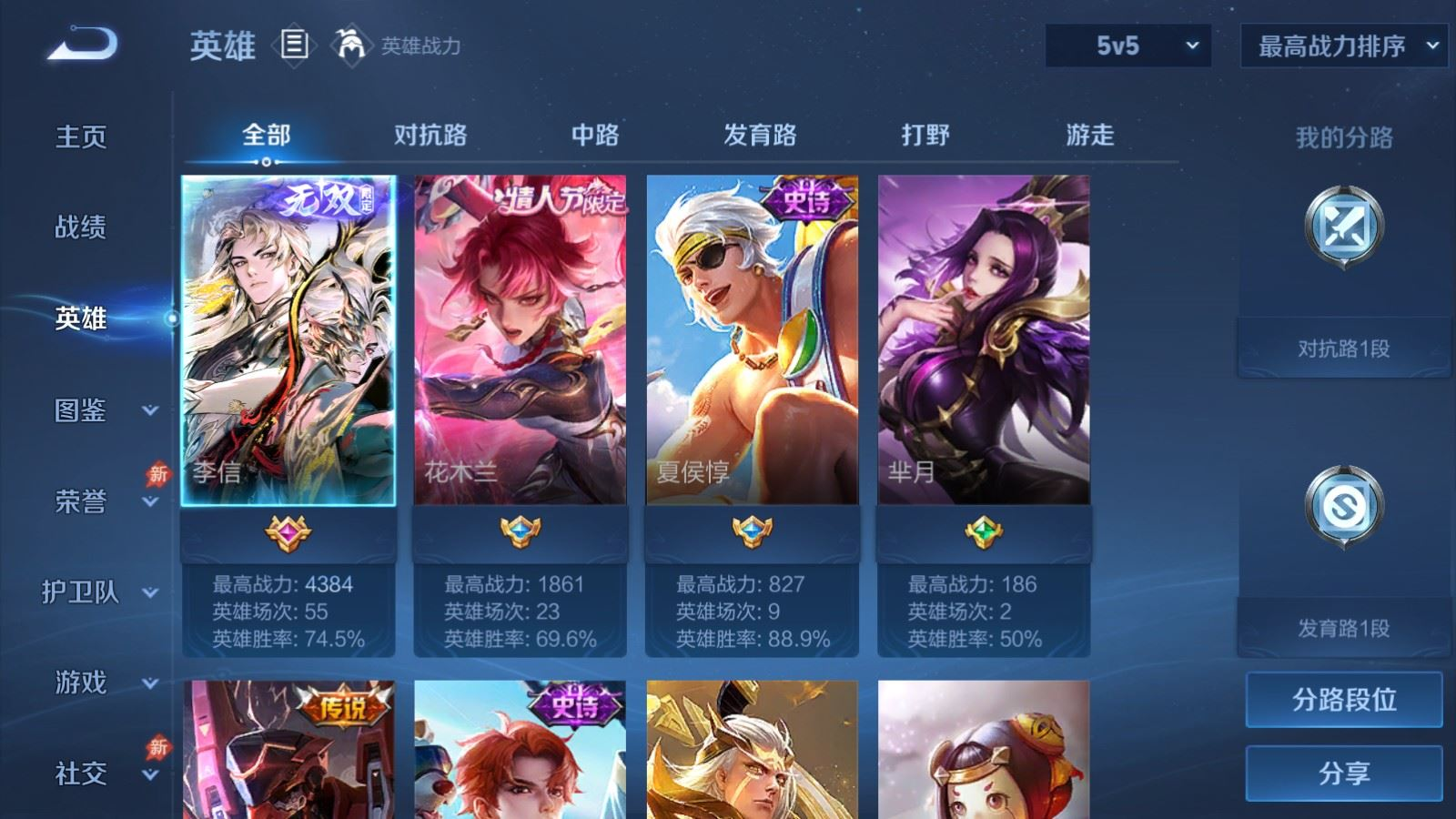 W10022【安卓区V8】可二次实名,英雄104,皮肤161,典藏:李白鸣剑.曳