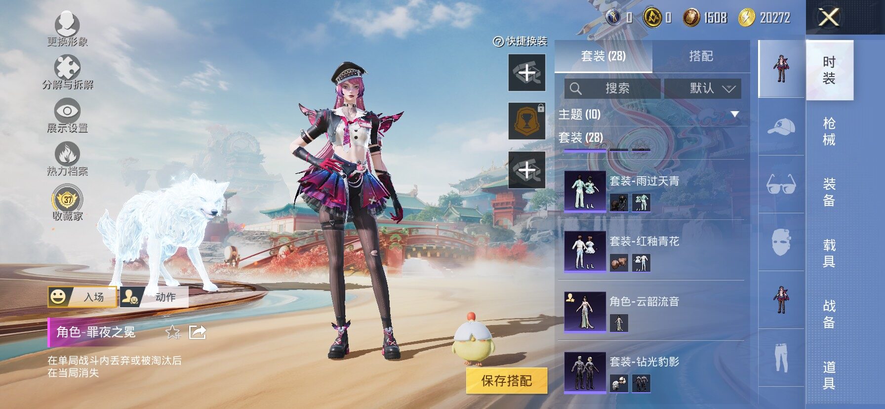 【粉色枪皮等级】:UMP45-霜月狼主(三级UMP45-霜月狼主),AUG-罪夜之冕(五级AUG-罪夜之冕),AKS-74U-森灵之息(五级AKS-74U-森灵之息),Mk14-福马献瑞(五级Mk14-福马献瑞),破片手榴弹-美味星星糖(三级)