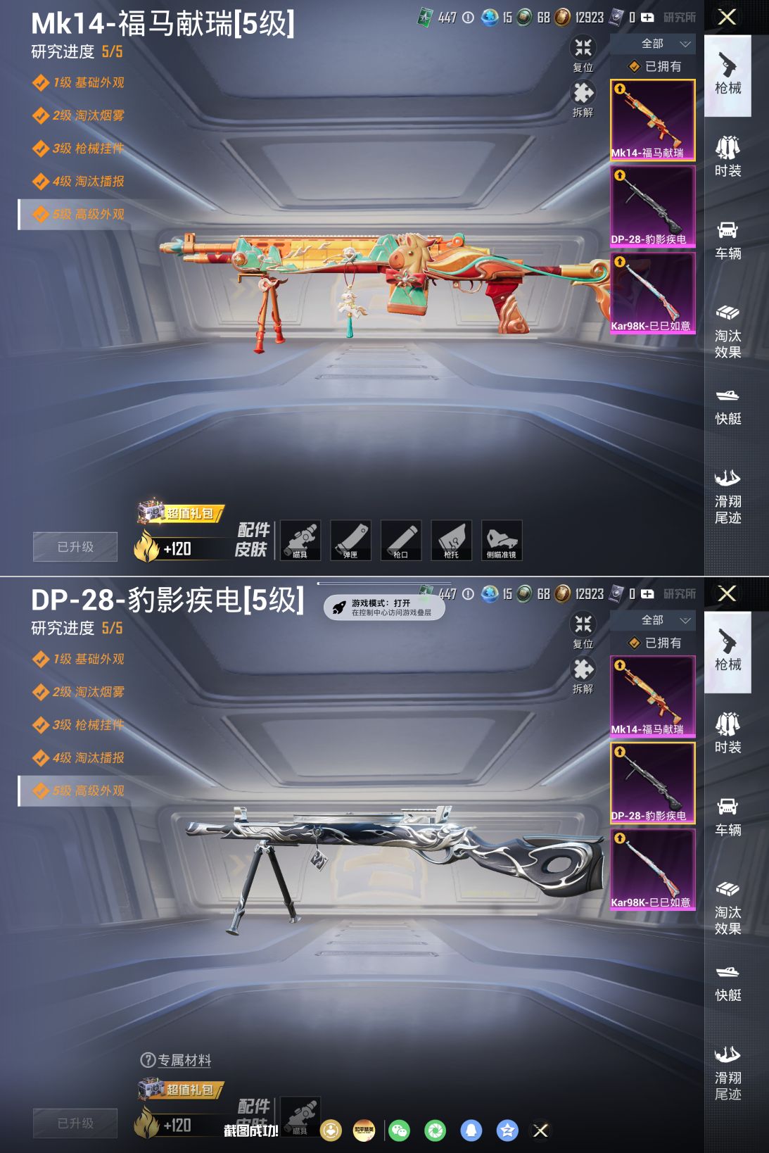 PX_2556871-粉装-3特效枪】无二次苹果手Q-2粉装-3特效枪-121套装-155枪皮-1王牌印记-坚韧铂金Ⅰ-43234热力值【2粉装】第五大道,角色-千金淑猫【3特效枪】DP-28-豹影疾电[5级],Kar98K-巳巳如意[5级],Mk14-福马献瑞[5级]【1稀有】M24-奇异狩猎者【8飞行器】顶峰精英尾迹,狂鲨锋刃飞行器,粉色滑翔尾迹,光之冒险尾迹,异域银装飞行器,空岛之星尾迹,鸡智如我飞行器