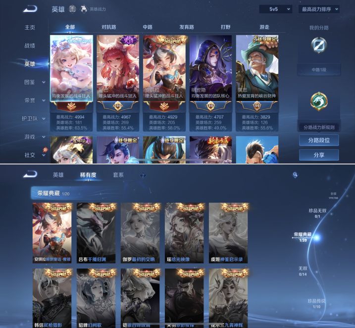 W10022【安卓区V8】可二次实名,英雄104,皮肤161,典藏:李白鸣剑.曳
