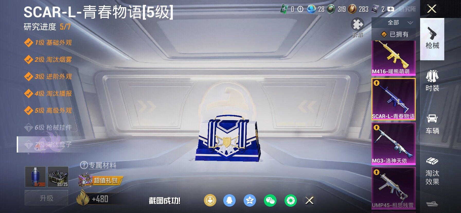 【29特效枪】,M416-五爪金龙,(3级),SCAR-L-金蛇镇世,(1级),SCAR-L-锦绣绵绵,(5级),M416-墨龙九天,(3级),M416-电玩时刻,(5级),AKM-炫紫旋律,(1级),AKM-白勺歌姬,(7级),AKM-绿萝繁花,(5级),Kar98K-巳巳如意,(5级),M762-青锋波束,(5级),DP-28-豹影疾电,(5级),AUG-暖羊咩咩,(5级),AUG-星梦奇缘,(3级),ARX-无垠阁,(4级),蜜獾-异瞳寒姬,(4级),UMP45-量子极限,(5级),Mk14-甜梦熊击,(5级),AMR-鸢尾晶梦,(2级),GROZA-镜光银凌,(4级),GROZA-巴啦啦小魔仙,(7级),UMP45-相思残雪,(7级),M416-暖熊萌萌,(6级),M417-第五大道,(4级),汤姆逊-冰川粉黛,(7级),MG3-洛神天依,(3级),AKS-74U-森灵之息,(5级),ACE32-萌骑漫游,(2级),SCAR-L-青春物语,(5级),破片手榴弹-粉粉猫爪,(6级),