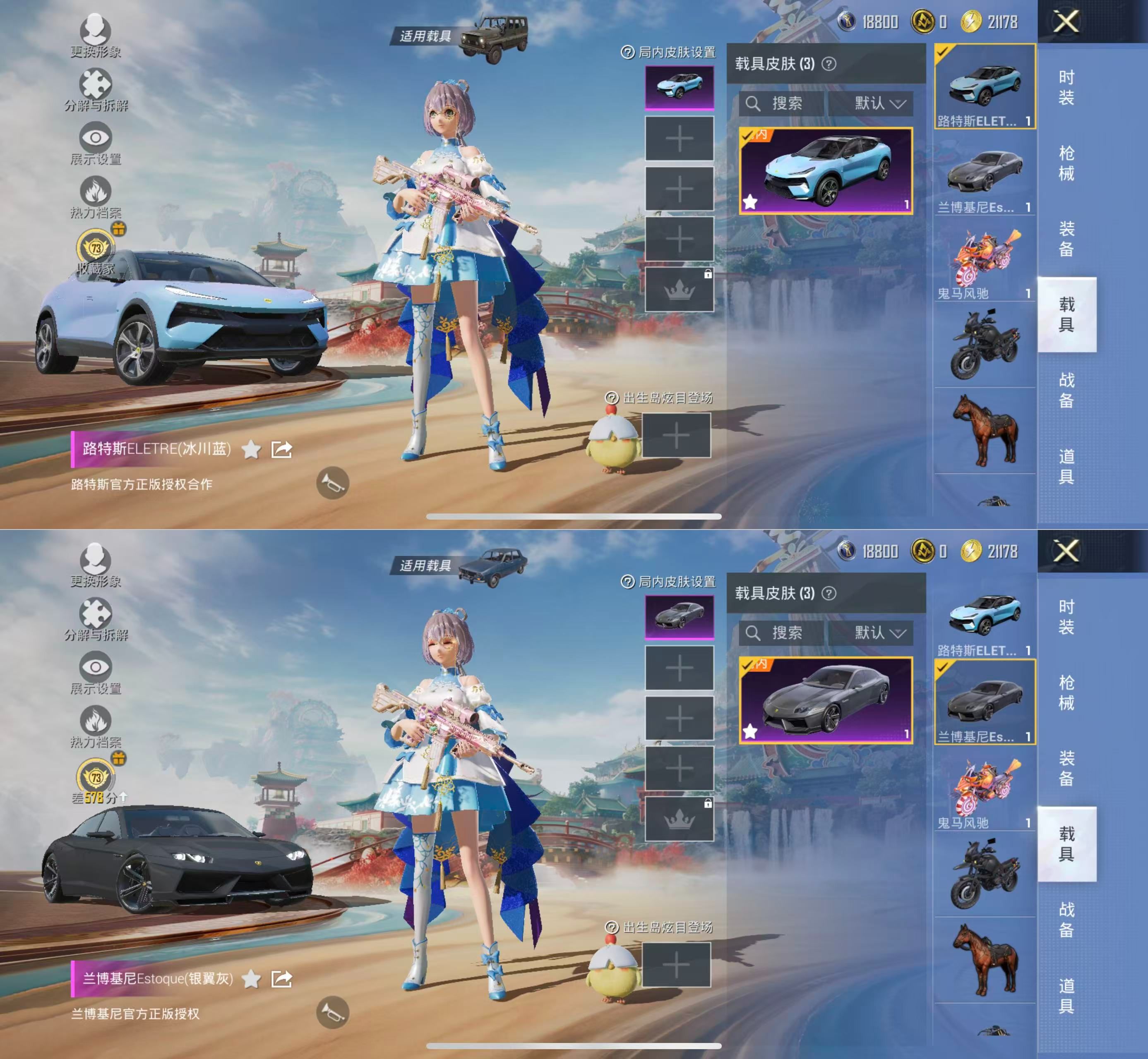 PX_2557236-6粉装-8特效枪,梦幻火箭,洛天依,小丑鱼,风花雪月[7级]复仇流浪者】苹果手Q-4载具-6粉装-8特效枪-237套装-297枪皮-19王牌印记-超级王牌3星-97553热力值【4载具】蔚蓝之翼,兰博基尼Estoque(银翼灰),路特斯ELETRE(冰川蓝),鬼马风驰【6粉装】角色-洛天依,梦幻火箭,炫光之旅,吟月归客,筑梦精灵,角色-复仇流浪者【8特效枪】MG3-洛神天依[7级],Ka