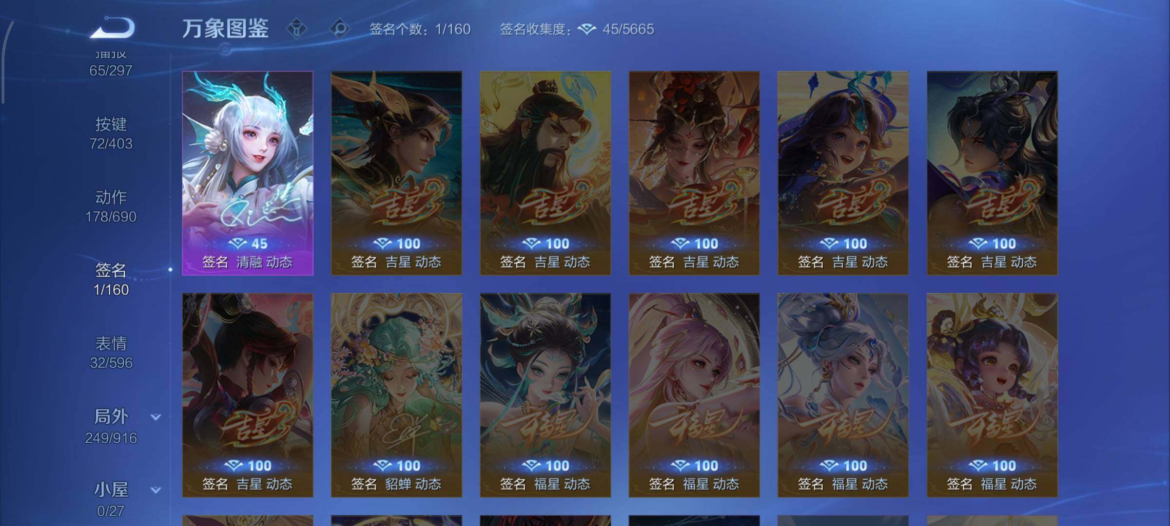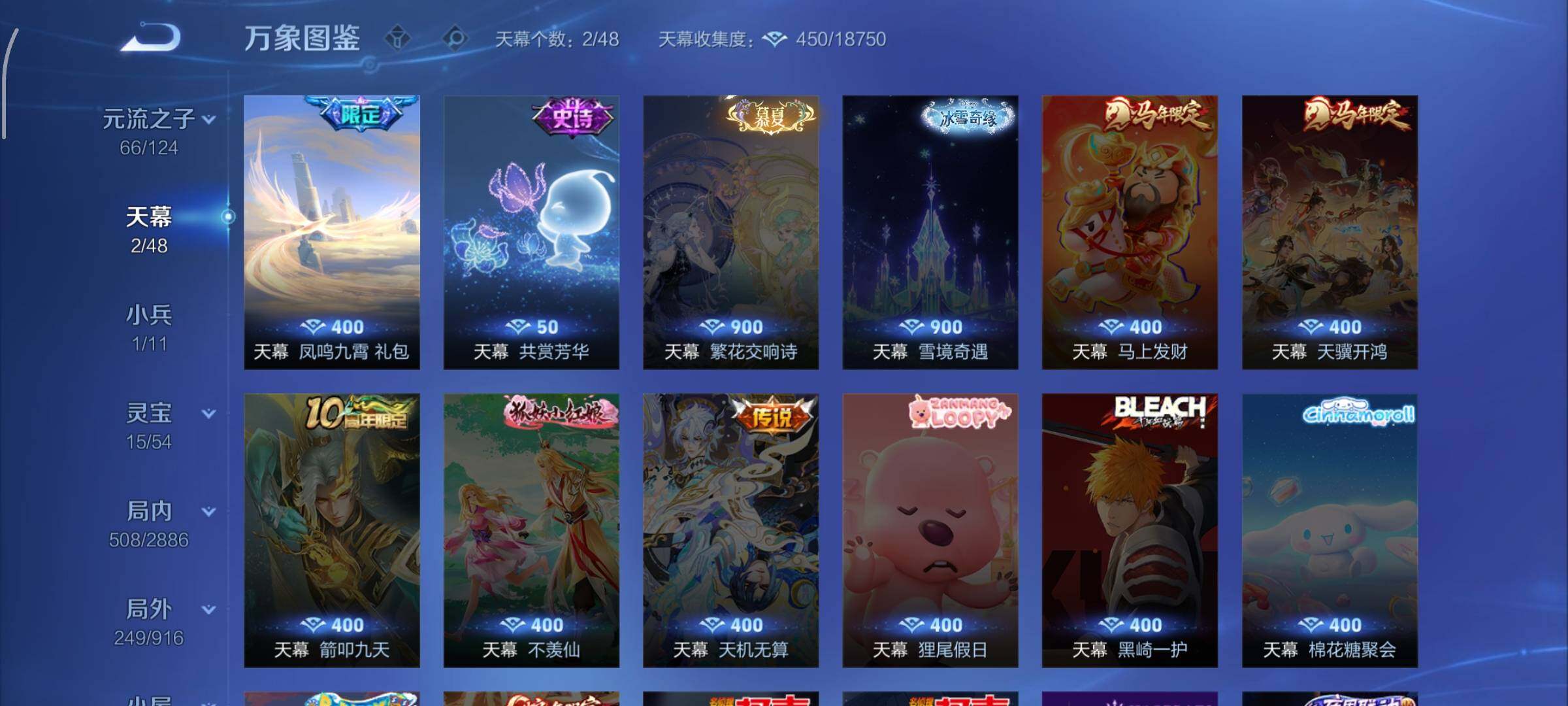 【珍品传说】:宫本武藏黑崎一护,暃朽木白哉,安琪拉酷洛米之心,瑶大耳狗之梦,张飞兔狲蓬尾,嫦娥器灵落星盏