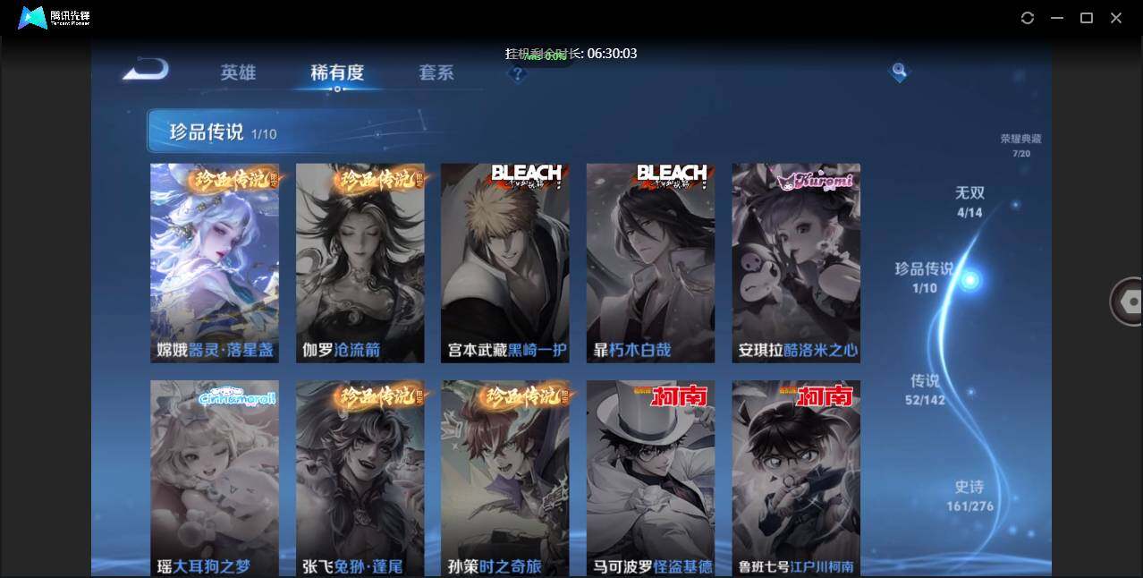 W10022【安卓区V8】可二次实名,英雄104,皮肤161,典藏:李白鸣剑.曳