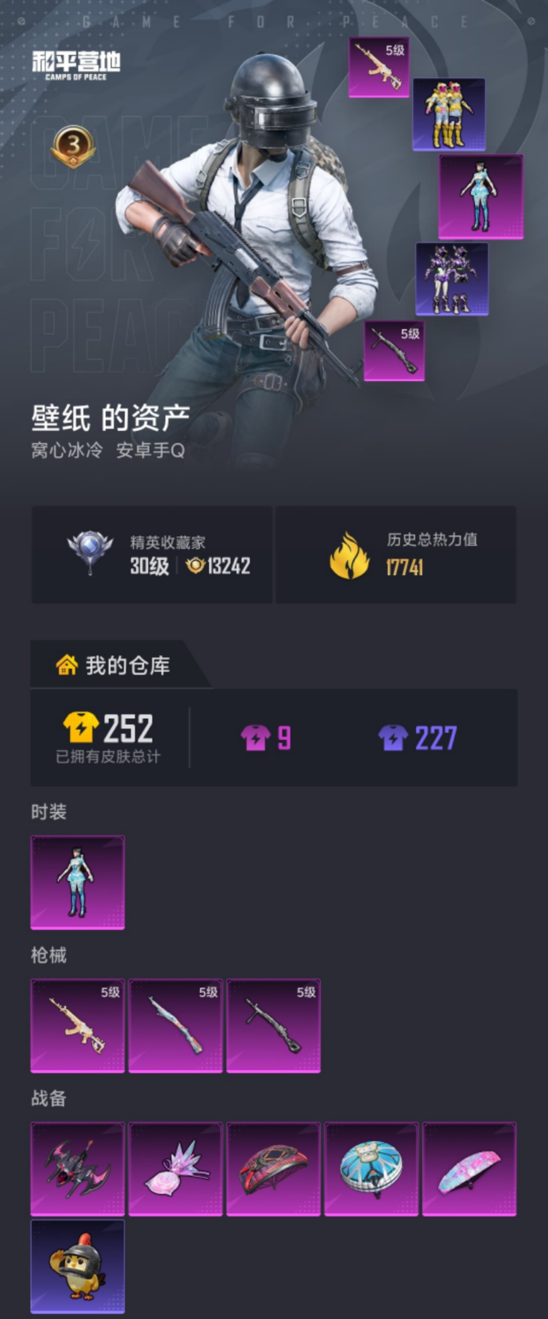 PX_2559375-可二次【3特效枪1粉装,秒换绑不用等】,安卓Q区-17741热力值-52套装-85枪皮,【1粉装】,角色-异瞳寒姬【3特效枪】,ACE32-萌骑漫游(5级),Kar98K-巳巳如意(5级),DP-28-豹影疾电(5级)【92热门】,白色伏地魔,SCAR-L-玉兔迎春,M762-天降萌叽,M762-彩虹符号,SKS-糯团青竹,DBS-彩虹符号,MG3-幻世战舞者,AKM-星之彼岸,M416-蓝色火焰,破蛋小黄鸡,特训学院,青年教官,魅力单车,猎鹰,蓝色运动,竞技达人朋克,黄色运动,黄色伏地魔,红色运动,黑色伏地魔,海岛探路者,春日漫步,S1897-糯团青竹,P90-紫矿核心,GROZA-紫矿核心,顶瓜瓜,GROZA-福马献瑞,恋语绒绒,SS34特训,蜜獾-鸡智如我,AWM-天降萌叽,大橘大利,莫辛纳甘-鸢尾珑雾,PKM-啾咪啾咪,SS33特训,SS32特训,巳巳如意,游乐,MG3-霓彩脉冲,狂鲨锋刃,SS36特训,大砍刀-像素花束,MG3-火熔核心,异域银装,战术大师,蜜獾-启元战纹,迅捷龙虾,短管霰弹-星穹咏叹调,狙击之神,破片手榴弹-海盐豹豹,UMP45-海盐豹豹,ARX-像素花束,Mk14-紫晶流影,Mk14-薄荷星砂,AUG-紫晶流影,AMR-鸡智如我,SS38特训,破片手榴弹-巳巳如意,AKM-涂鸦街区,AKS-74U-鸡智如我,平底锅-精灵梦叶罗丽,烟雾弹-冰氧夏日,平底锅-属我最6,SS35特训,薄荷星砂,元气之梦,街头风暴,S12K-霓彩脉冲,AKM-霓彩脉冲,AUG-异域银装,十字弩-异域银装,雪国风尚,破片手榴弹-拽到爆炸,十字弩-异瞳寒姬,Famas-霓彩脉冲,SLR-霓彩脉冲,铝热弹-炫彩糖果,M762-登顶巅峰,UZI-炫彩糖果,AUG-冰晶雪宝,MK20-H-狂鲨锋刃,SPAS-12-狂鲨锋刃,P90-巳巳如意,SCAR-L-海盐豹豹,M249-冰晶雪宝,萌鸡速递,SS37特训,炫彩糖果,白糯汤圆,Mk14-阳光菠萝,阳光菠萝,汤姆逊-像素花束【2飞行器】,星之彼岸飞行器,炫彩糖果飞行器【7背包】,异域银装背包(3级),巳巳如意背包(3级),幻彩电音背包(3级),薄荷星砂背包(3级),萌鸡速递背包(3级),炫彩糖果背包(3级),狂鲨锋刃背包(3级),营地ID:1011204743,