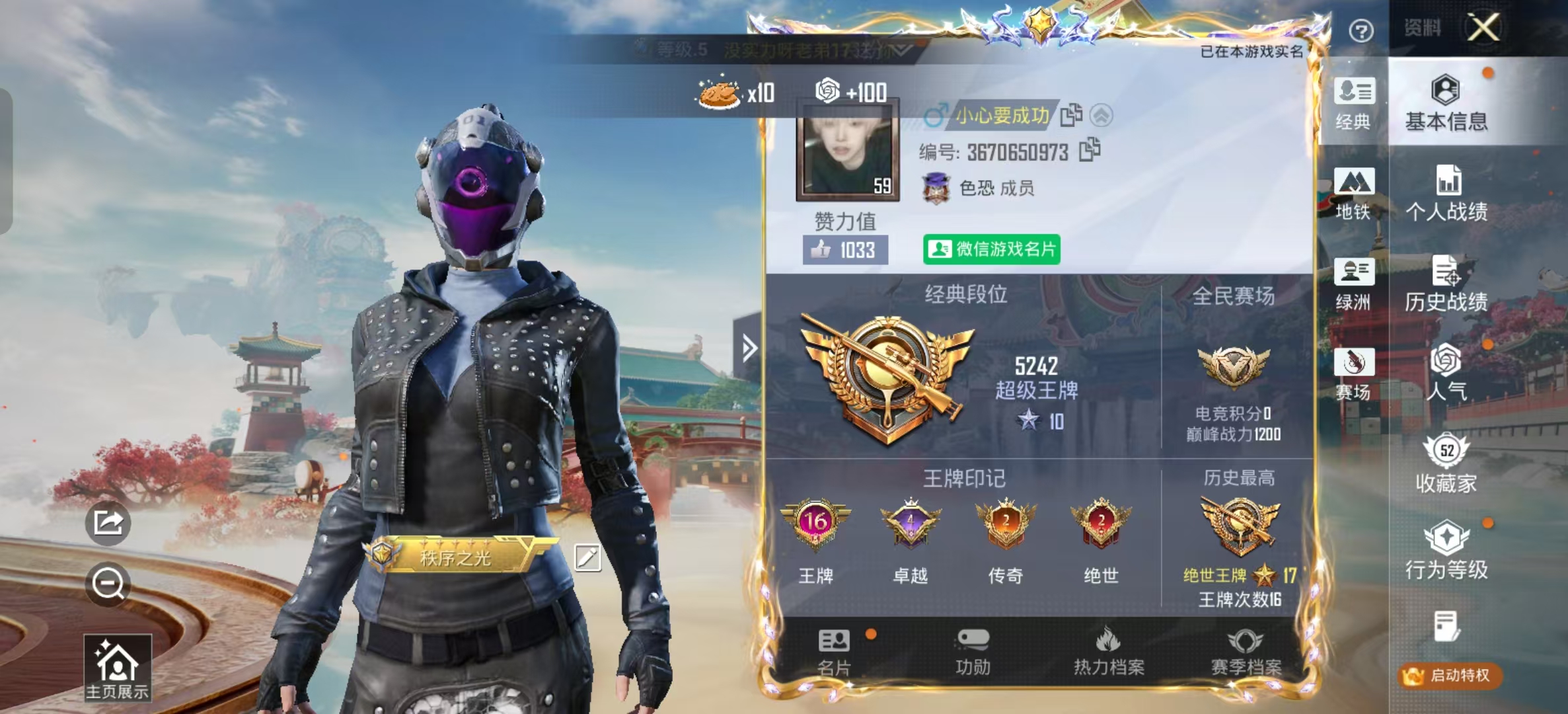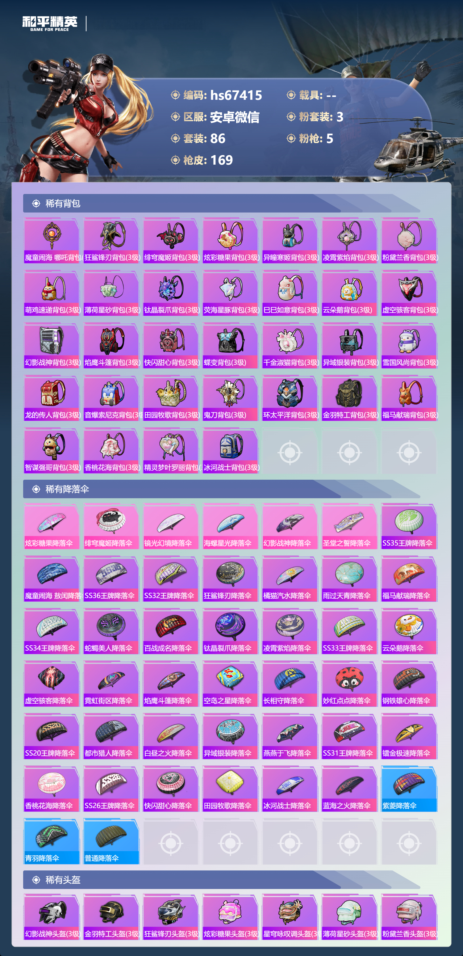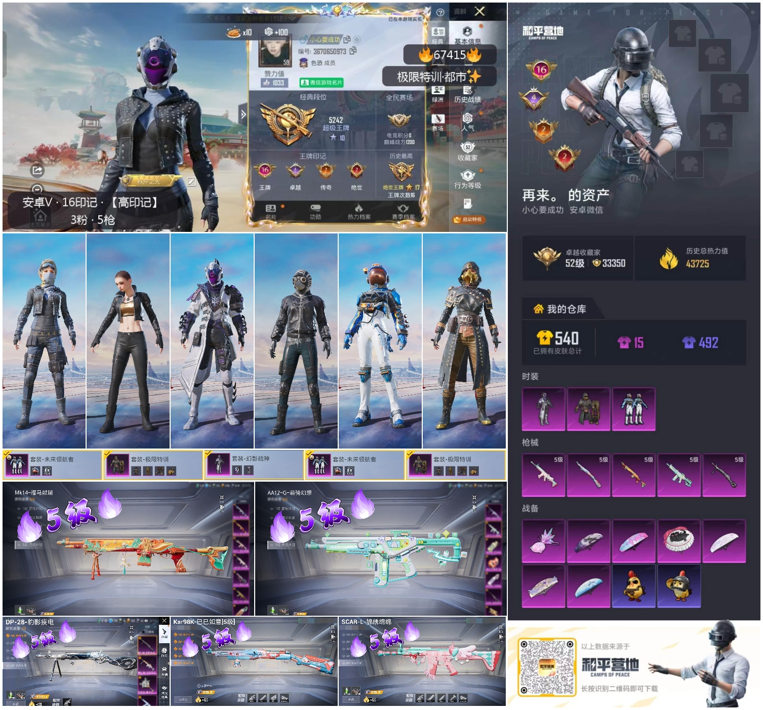 PX_2550102-,安卓微信-16王牌印记-3粉装-5特效枪-43725热力值-86套装-169枪皮-4卓越印记-2传奇印记